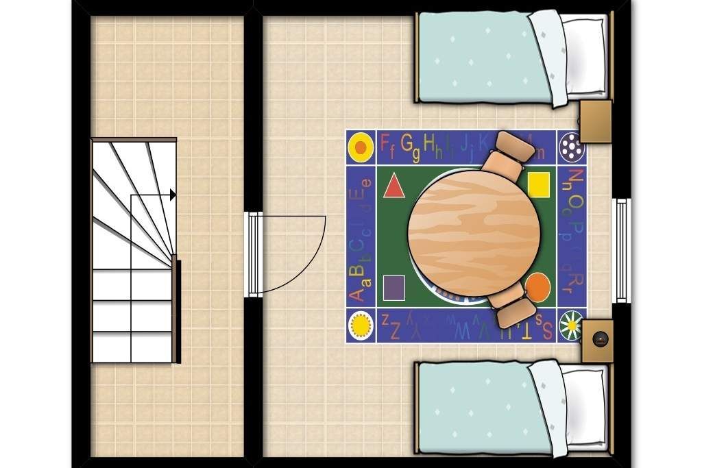 Ins Dachgeschoss als 3. Ebene gelangen Sie wieder über die Treppe vom Flur aus. Auf dieser Etage befindet sich das Gäste-/ Kinderzimmer mit 2 Einzelbetten. Auch dieses Zimmer bietet einen Flatscreen-TV, zudem einen Schreibtisch und auch eine kleine Sitzecke. Auf der Kleiderstange können einige Kleidungsstücke aufgehängt werden.