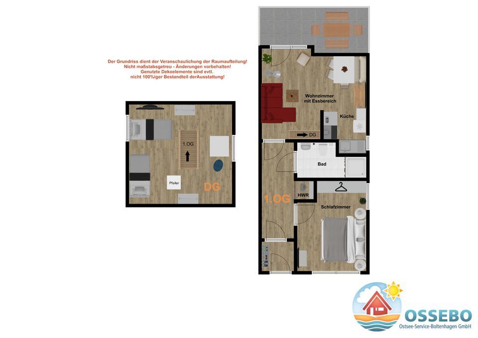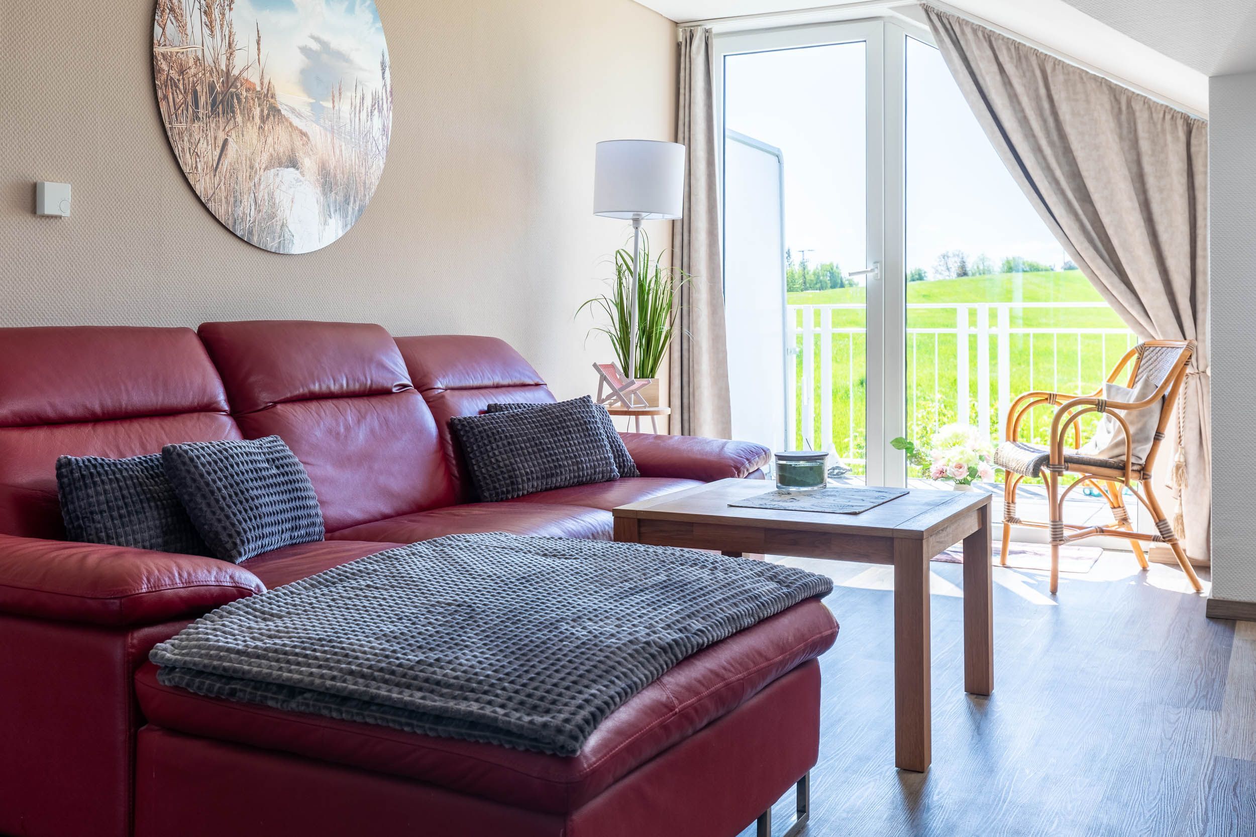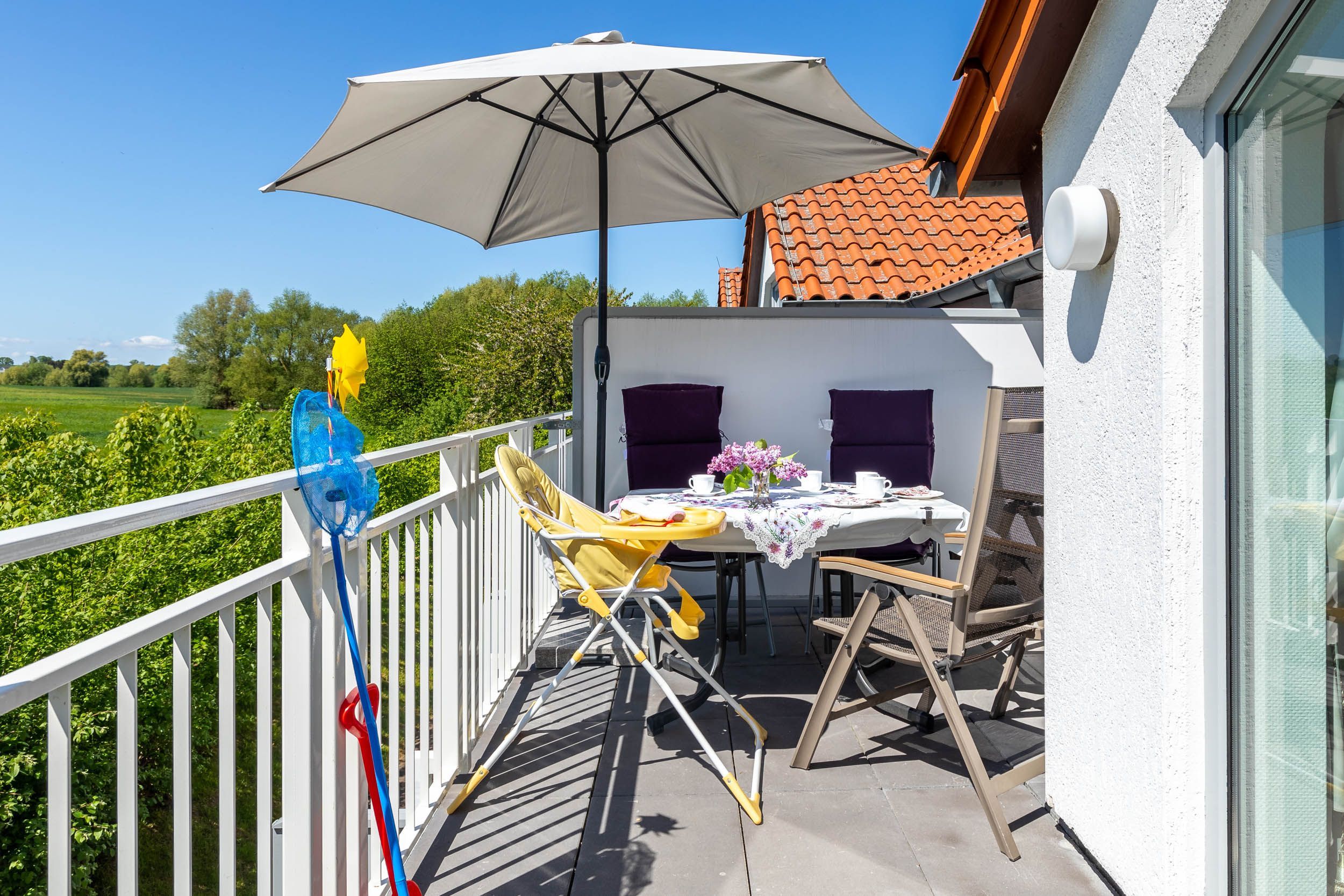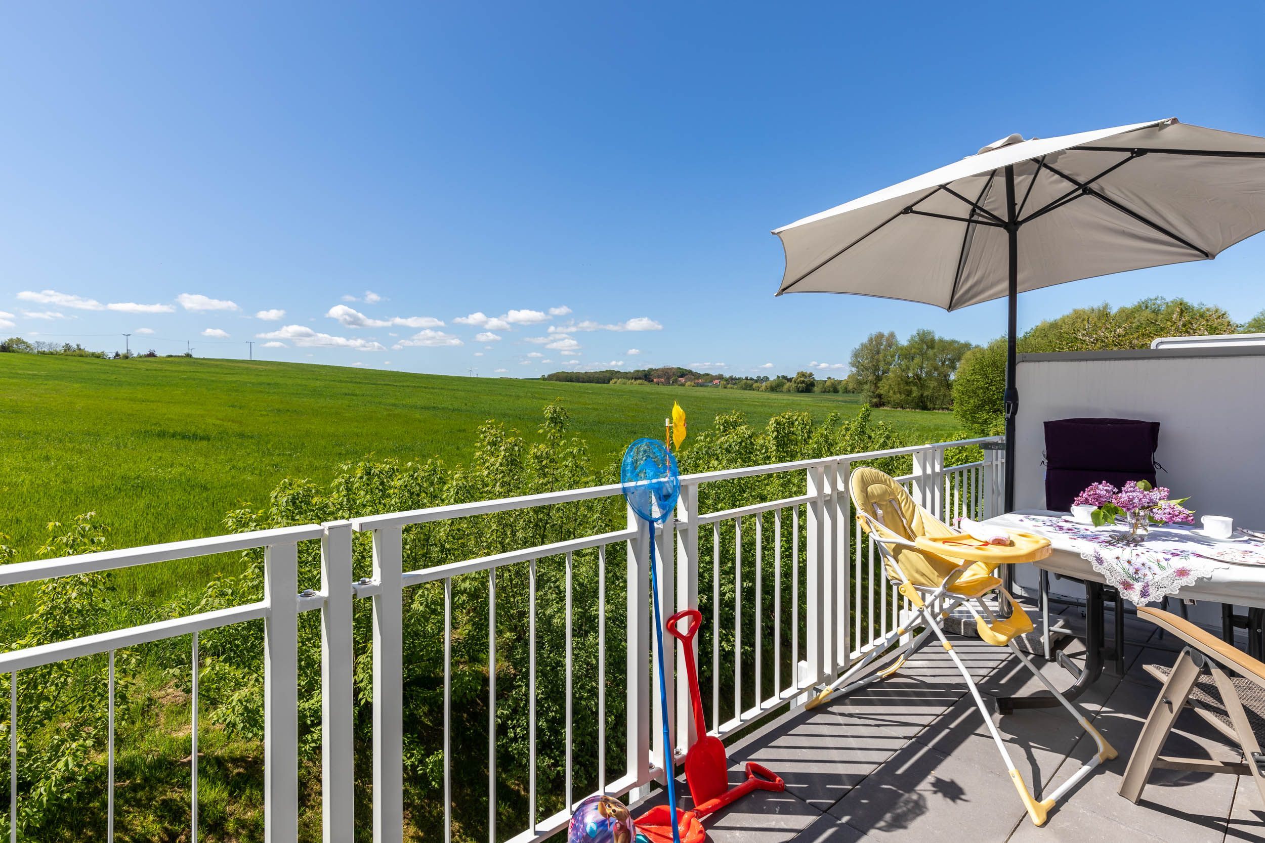 In dieser Nichtraucher-Wohnung stehen für unsere kleinsten Gäste ein Hochstuhl und ein Reisebettchen kostenfrei zur Nutzung bereit. Die Wohnung hat einen eigenen Eingang über den Laubengang mit herrlicher Aussicht zur Ostsee.
