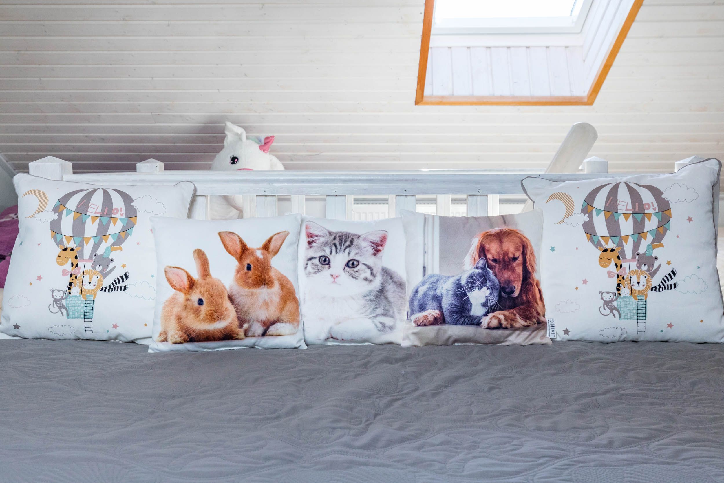 Das Schlafzimmer ist mit einem Doppelbett und einem geräumigen Kleiderschrank ausgestattet. Außerdem ist ausreichend Platz für das Babybett. Vom Wohnbereich aus gelangen Sie über eine Raumspartreppe ins offene Dachgeschoss. Dieser Bereich ist eher für größere Kinder geeignet. Hier stehen 3 Einzelbetten und ein Sofa bereit. Ein eigener Flatscreen-TV an der Wand sorgt auch auf dieser Etage für Unterhaltung.