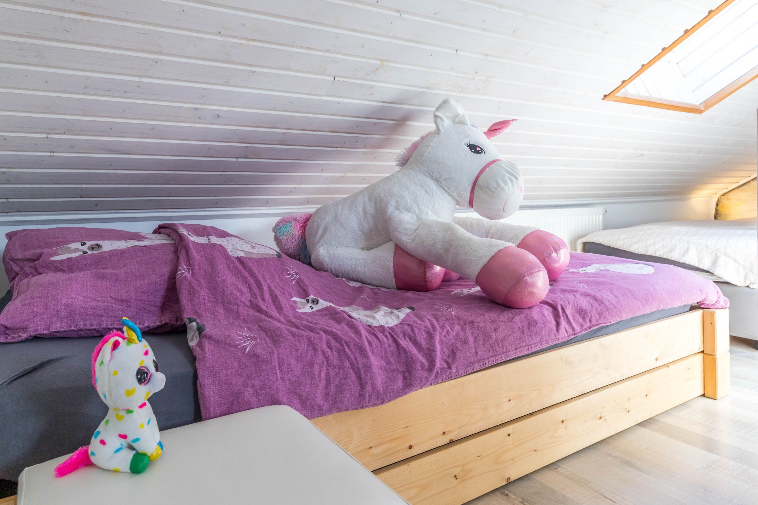 Die familienfreundliche 3-Zimmer-Wohnung im 1.OG erstreckt sich mit rund 70qm Wohnfläche über 2 Ebenen und bietet eine Ausstattung für max. 2 Erwachsene + 3 Kinder.