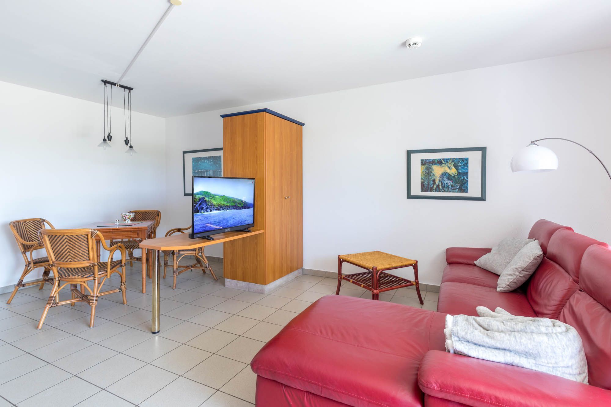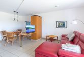 Im Wohnzimmer finden Sie eine modernes Ecksofa. Ein Flatscreen-TV sorgt hier für Ihre Unterhaltung. In der kleinen offenen Wohnküche finden Sie u.a. Herd, Backofen, Geschirrspüler und etwas separat dann eine Kühl-Gefrierkombi. Ihre Mahlzeiten können Sie bequem alle zusammen an der Essecke einnehmen. Das Schlafzimmer bietet neben einem bequemen Doppelbett auch eine zusätzliche Schlafcouch (z.B. für das mitreisende Kind).