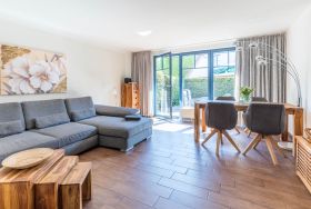 Eine moderne und strandnahe Erdgeschosswohnung mit WLAN & Terrasse für 4 Gäste.