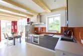 Der Essbereich und die offene, vollständig ausgestattete Küche im Erdgeschoss bieten ausreichend Platz für alle Gäste. Ein weiteres Highlight ist hier der vorhandene zweite TV im Essbereich.