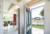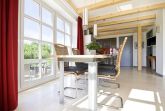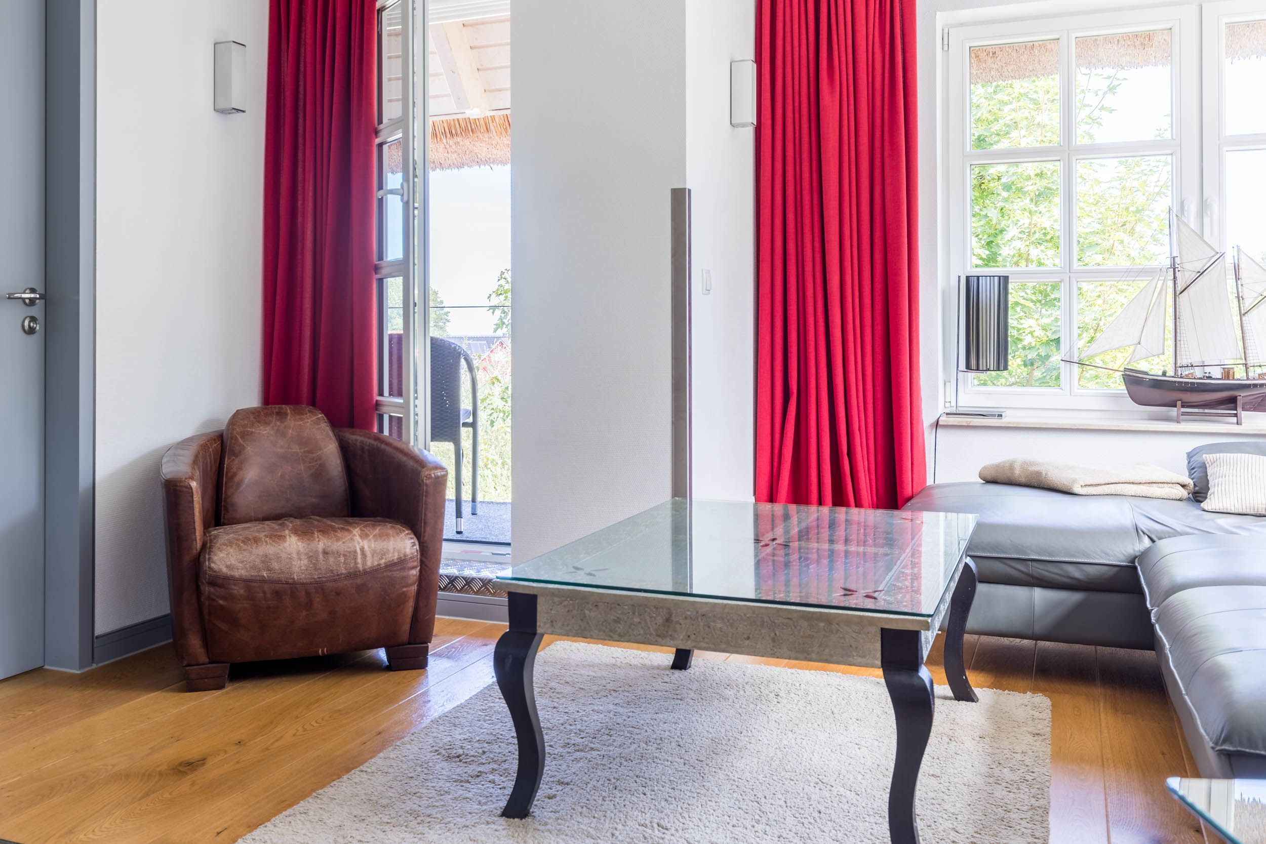 Das Besondere bieten ist das zentrale Thema der außergewöhnlichen und schönen Reet-Doppelhauses. Hier wird Tradition mit modernem Design verbunden. Dies wird schon auf den ersten Blick offenbar durch die größtenteils bodentiefen Sprossen-Fenster und die vielen Details am Dach und der Hausform und setzt sich im Inneren in den Räumlichkeiten fort.