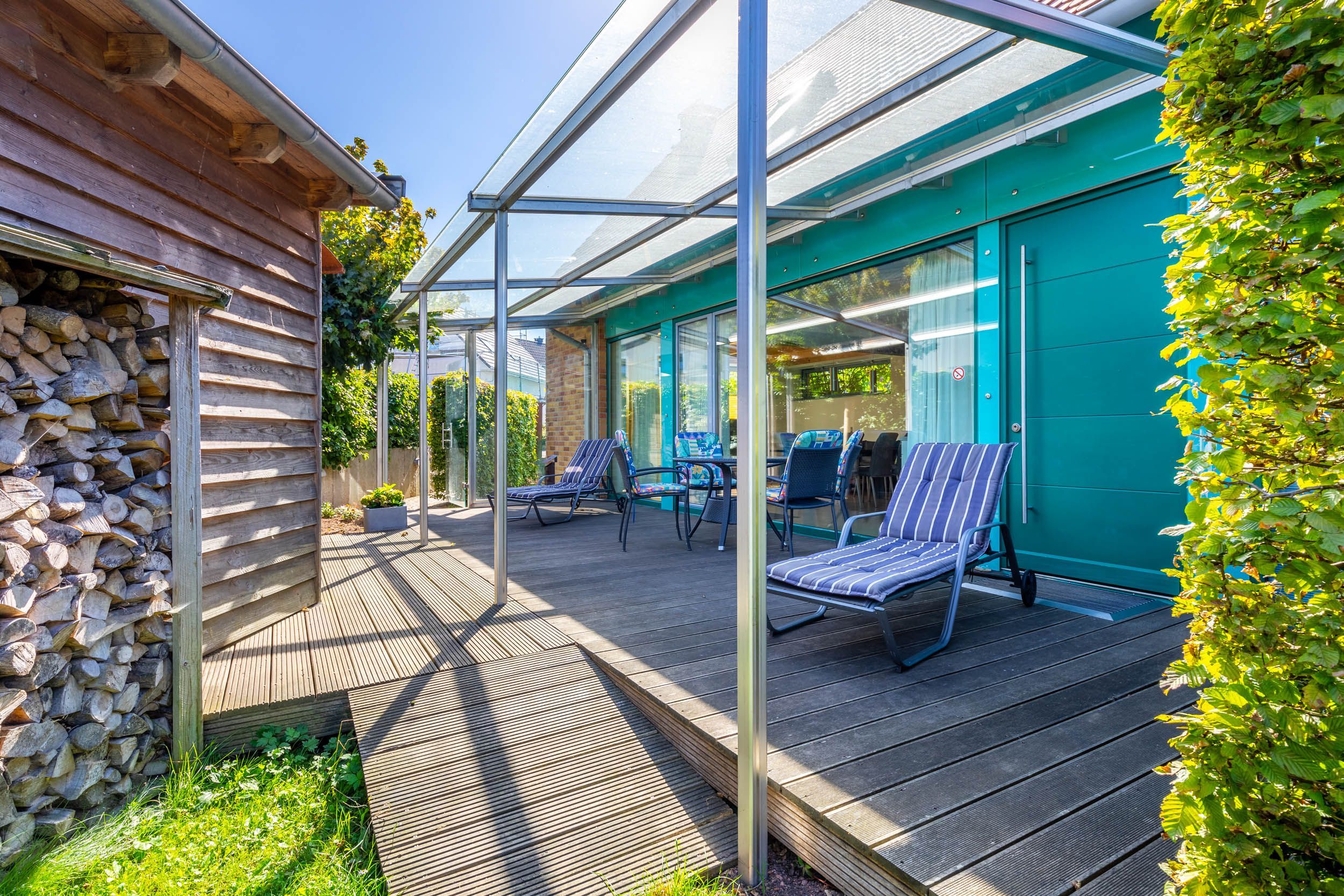 Fahrräder, Bollerwagen usw. können Sie gern auf dem Grundstück abstellen. Das Grundstück hinter dem Haus ist vor Einblicken von der Straße aus geschützt. Ein Abstellhäuschen ist hier leider nicht vorhanden.