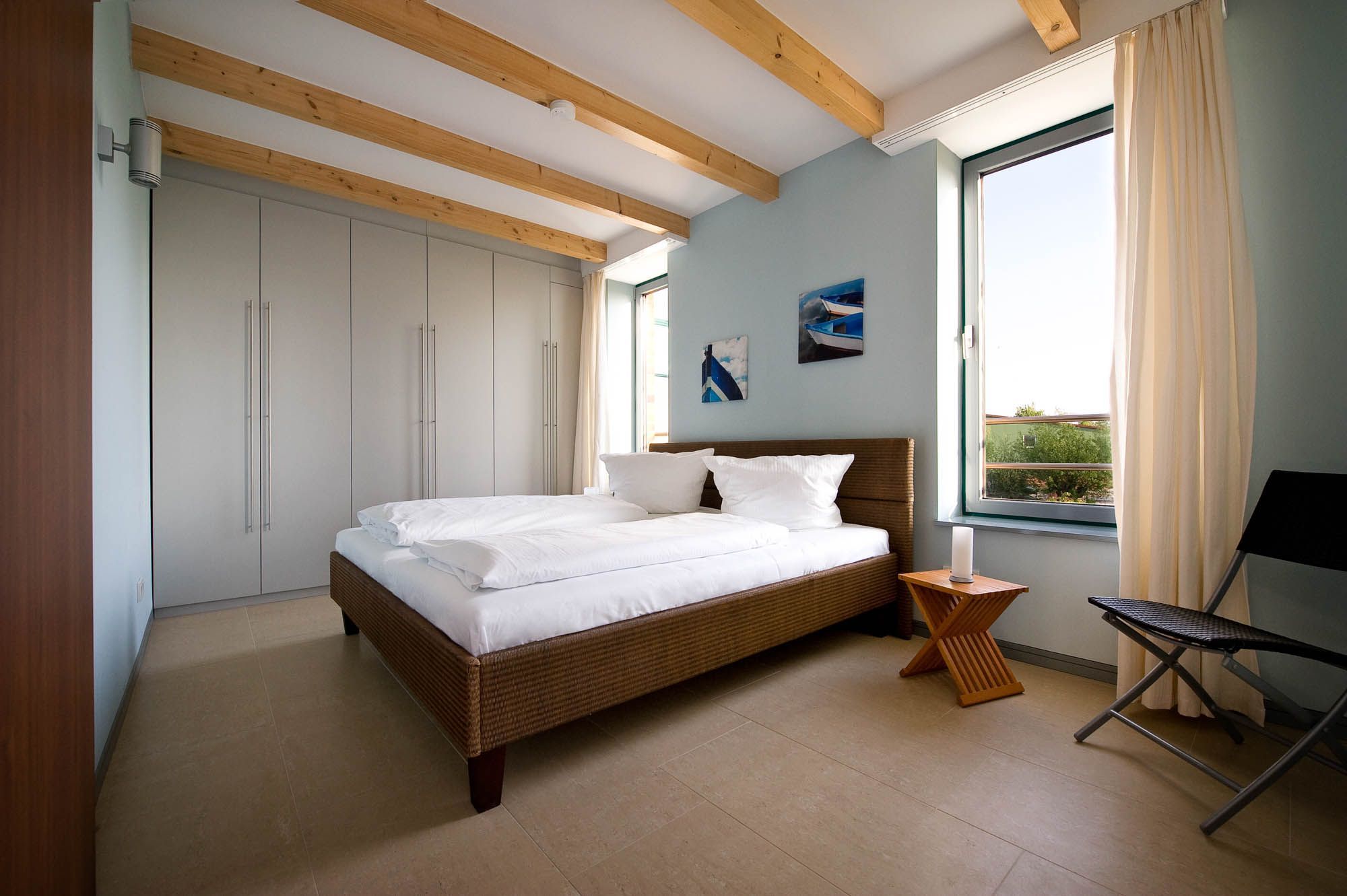 Das zweite Schlafzimmer befindet sich auf diesem Geschoss und bietet ein weiteres komfortables Doppelbett und einen Kleiderschrank.