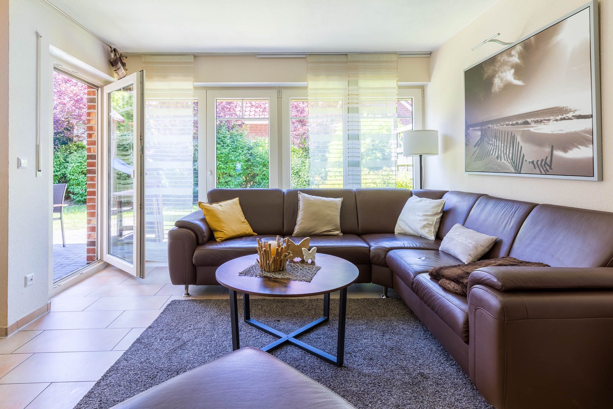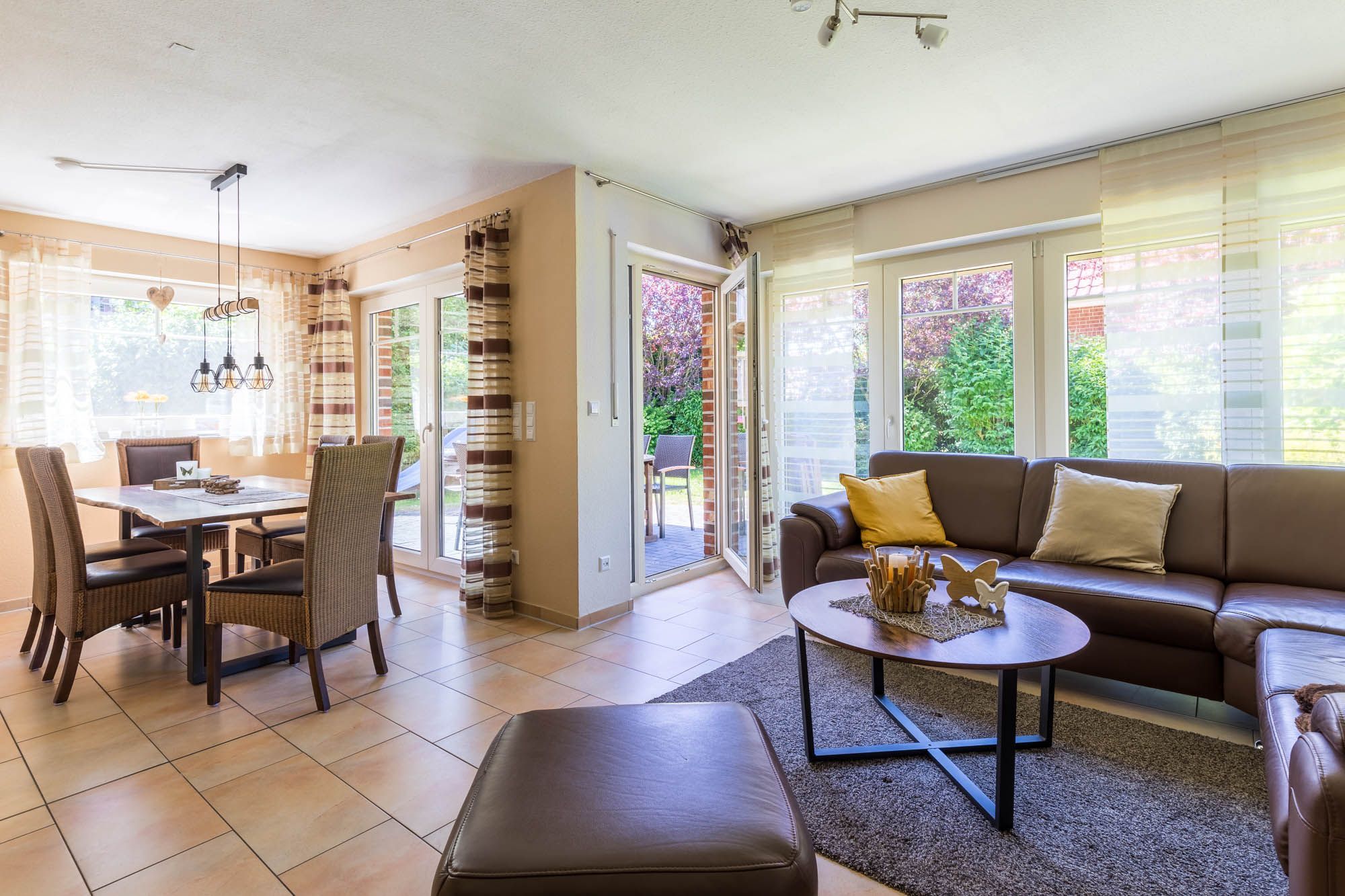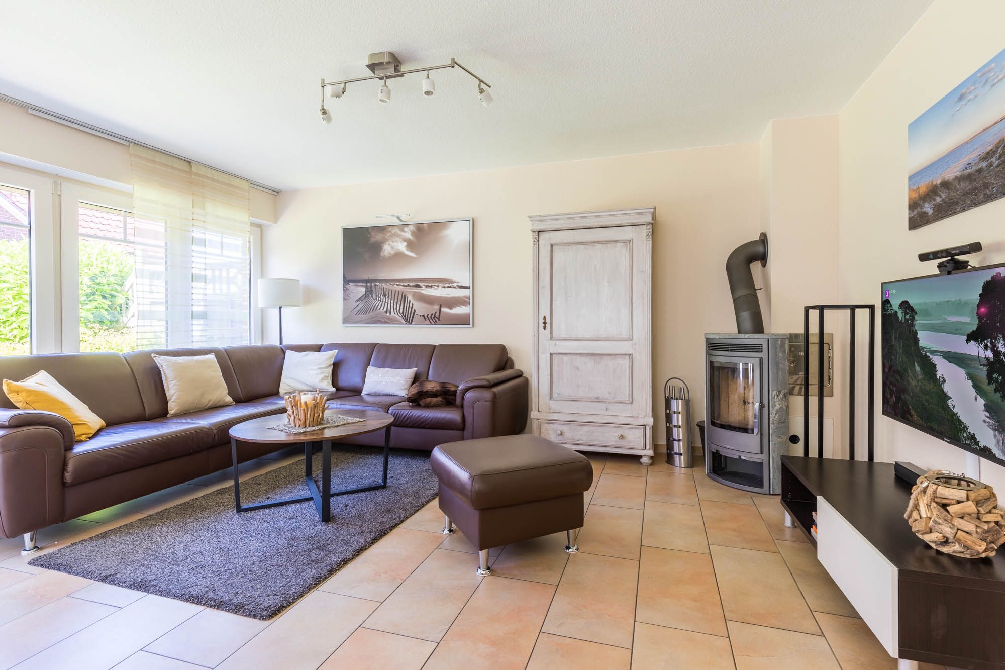Das behagliche Wohnzimmer lädt zu ruhigen und entspannten Stunden zu Hause ein. An kälteren Tagen sorgt hier neben der Fußbodenheizung auch ein Kamin für wohlige Wärme. Durch Flatscreen-TV, CD-Player, DVD-Player oder auch der Playstation kommt auch an regnerischen Tagen keine Langeweile auf.