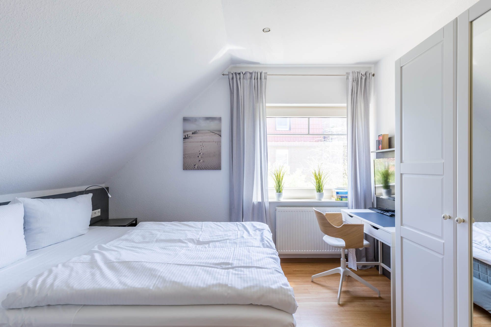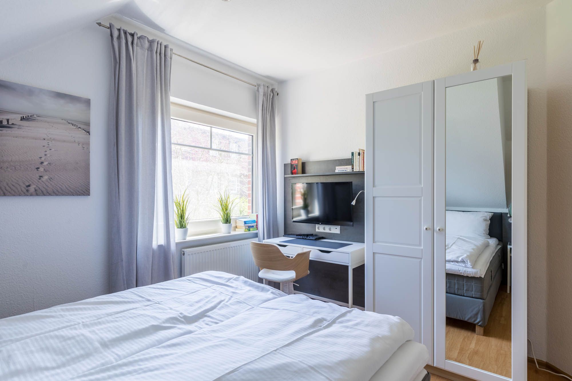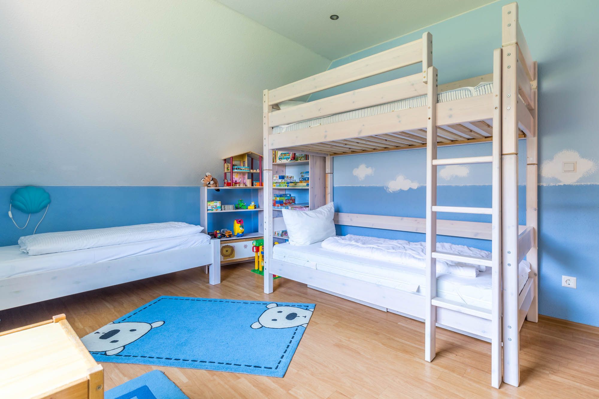 Ein Highlight des Ferienhauses ist für Kinder definitiv das liebevoll eingerichtete Gäste-/ Kinderzimmer: es beinhaltet ein Etagenbett und ein Einzelbett. Langeweile kommt hier nicht auf, denn der Raum bietet mit einer eigenen Spielecke den Kleinen genügend Platz zum Spielen. In allen drei Schlafräumen befindet sich außerdem ein Kleiderschrank für Ihre Garderobe.