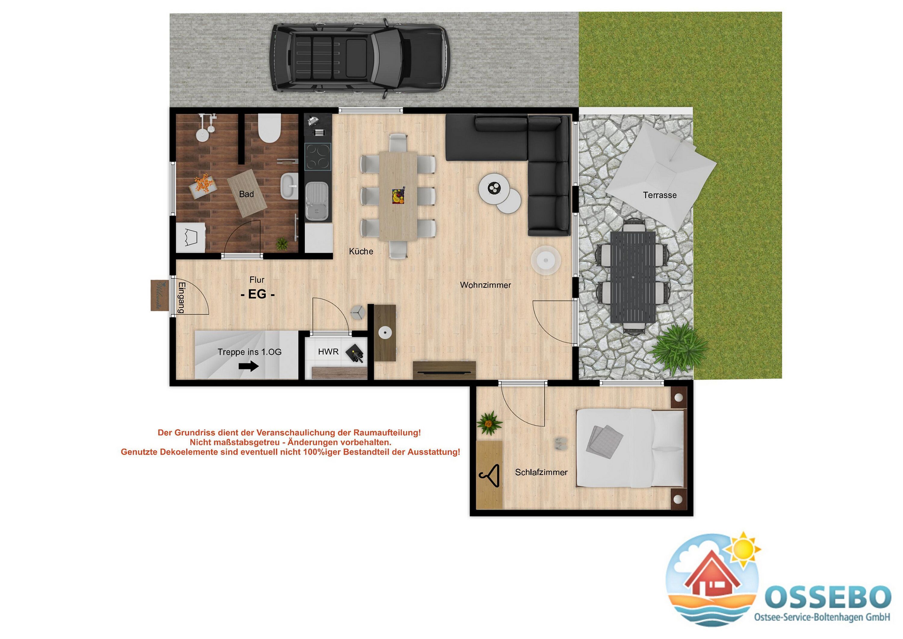 Der angrenzende Garten mit West-Terrasse und Gartenmöbeln ist nicht nur für Familien ein Paradies und macht Ihren Ostseeurlaub perfekt.