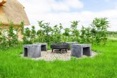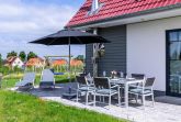 An die großzügige möblierte Eckterrasse grenzt ein gepflegtes Grundstück mit viel Grün drumherum.