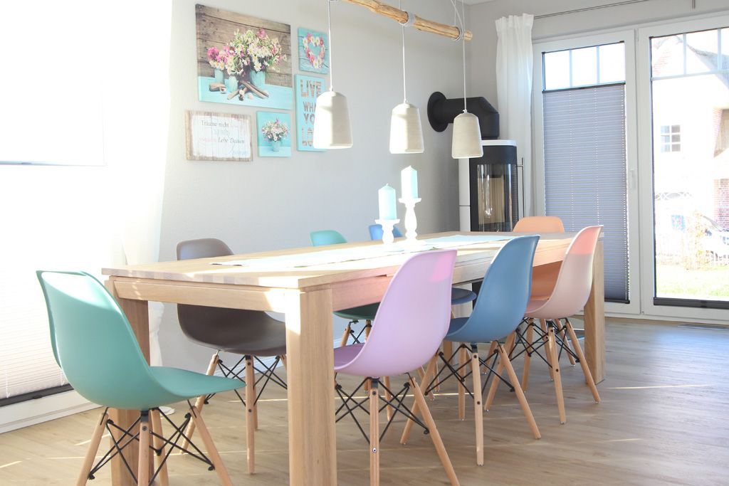 Den Mittelpunkt bilden im Erdgeschoss der große Familienesstisch mit passenden Stühlen sowie das große Ecksofa im offenen Wohnzimmer. Hier können alle zusammen essen, schnacken oder entspannen. Die offene Küche lädt ebenfalls zum geselligen Zusammensein & Kochen ein. Für die Kaffeetrinker unter unseren Gästen haben wir eine Nespresso-Kapselmaschine bereitgestellt.