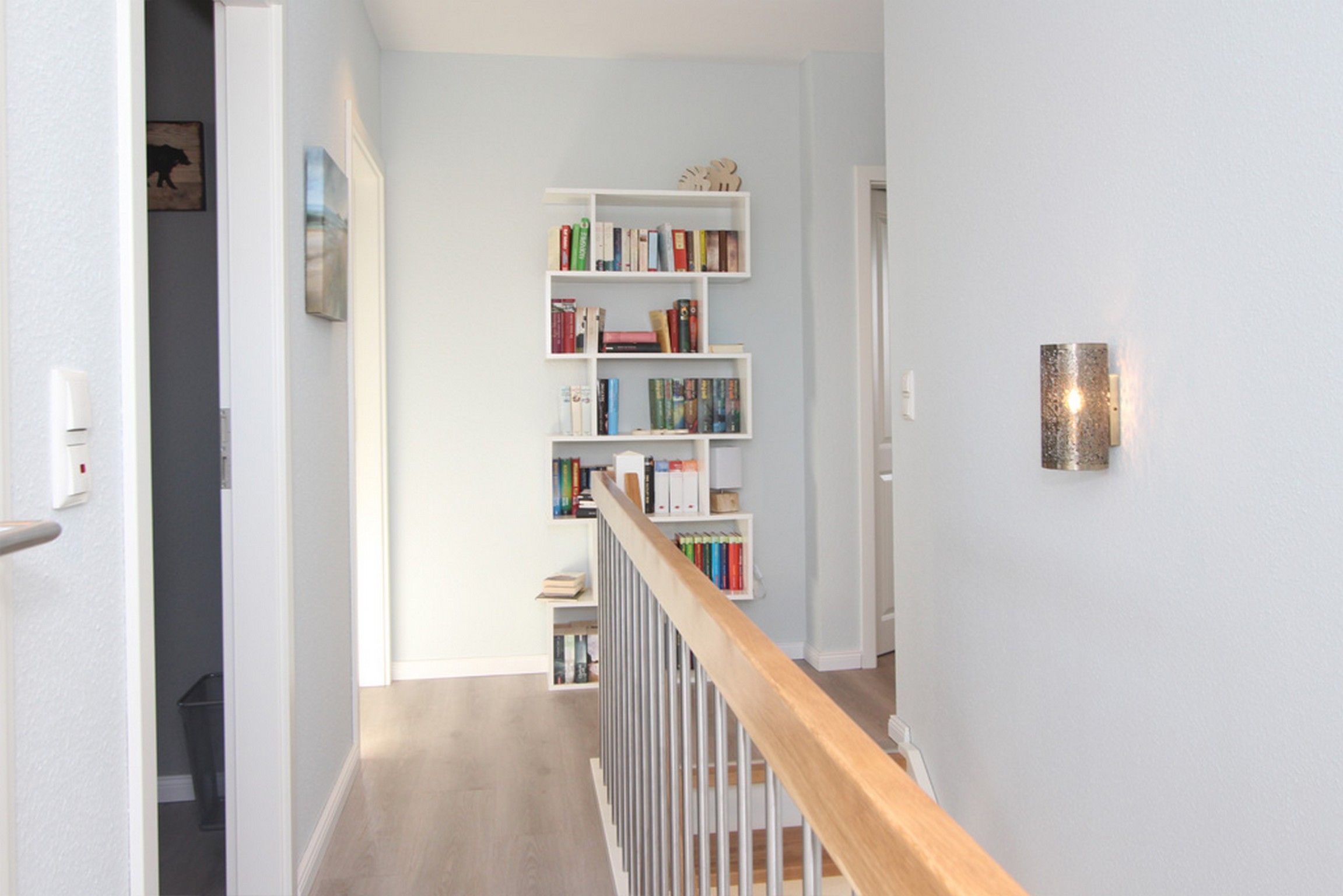 Über die helle Holztreppe erreichen Sie das ebenfalls großzügige 1. Obergeschoss. Hier befinden sich die drei weiteren Schlafzimmer: