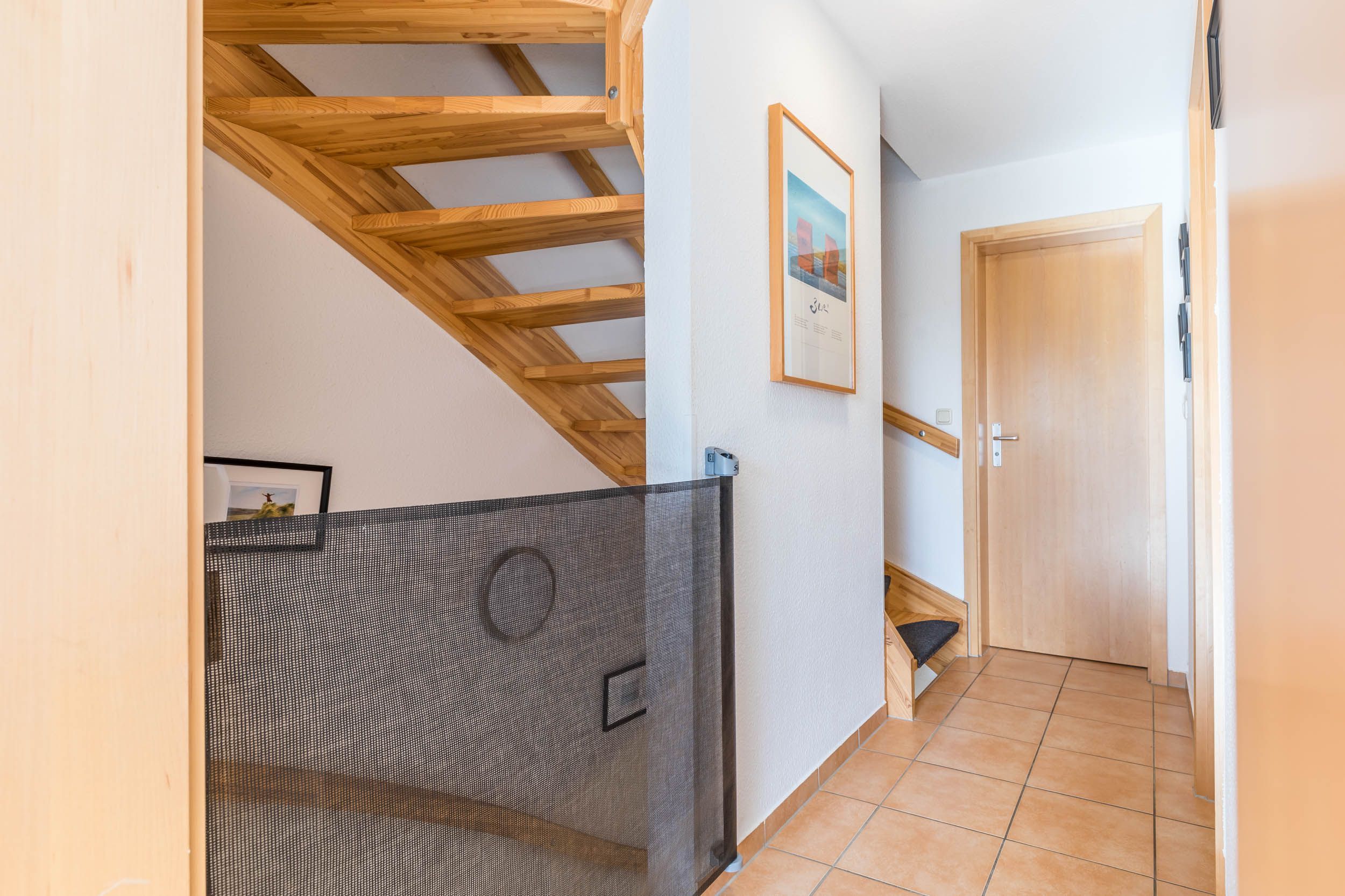 Eine Treppe im offenen Wohn- und Küchenbereich führt Sie in die nächste Etage.