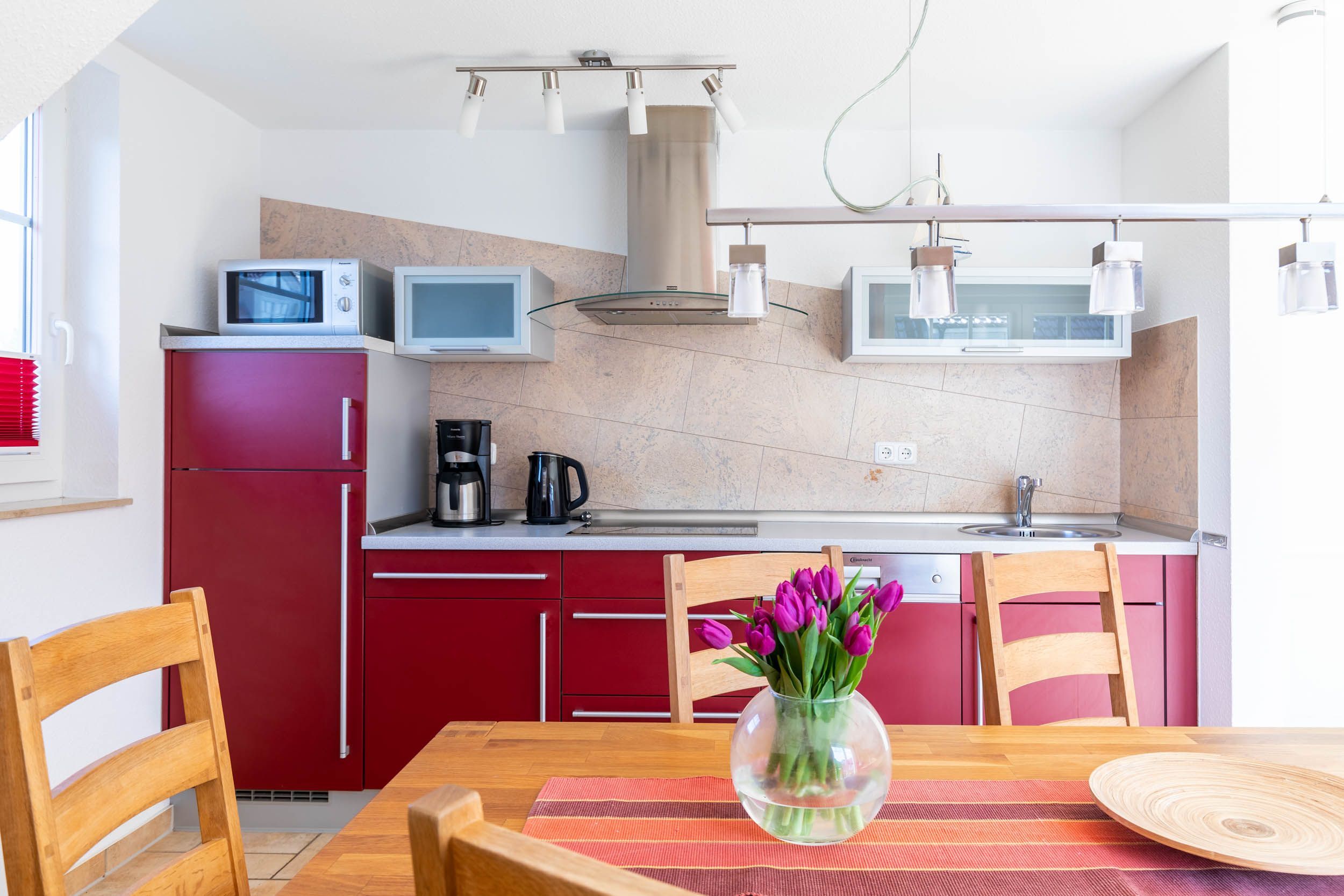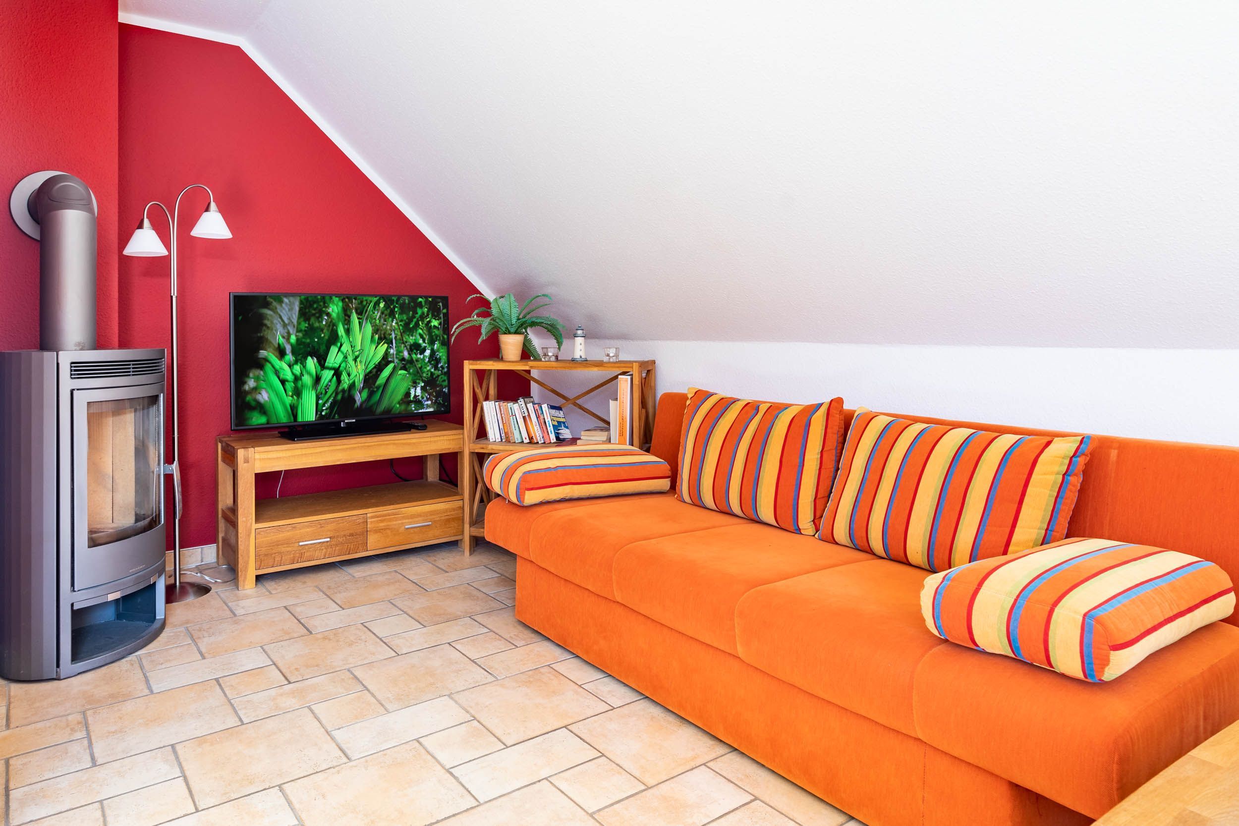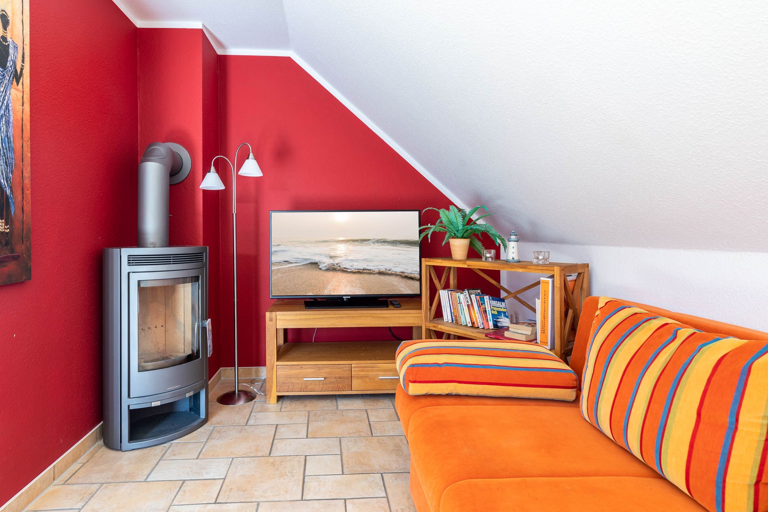 Im Erdgeschoss finden Sie den Wohnbereich mit SAT-TV, DVD-Player, Stereoanlage, zwei Sofas mit Schlaffunktionen für insgesamt zwei Personen, Kamin und offener Küchenzeile mit vielen E-Geräten wie Cerankochfeld, Mikrowelle, ein kleiner Minibackofen, Geschirrspüler, Kühlschrank mit Gefrierfach uvm.