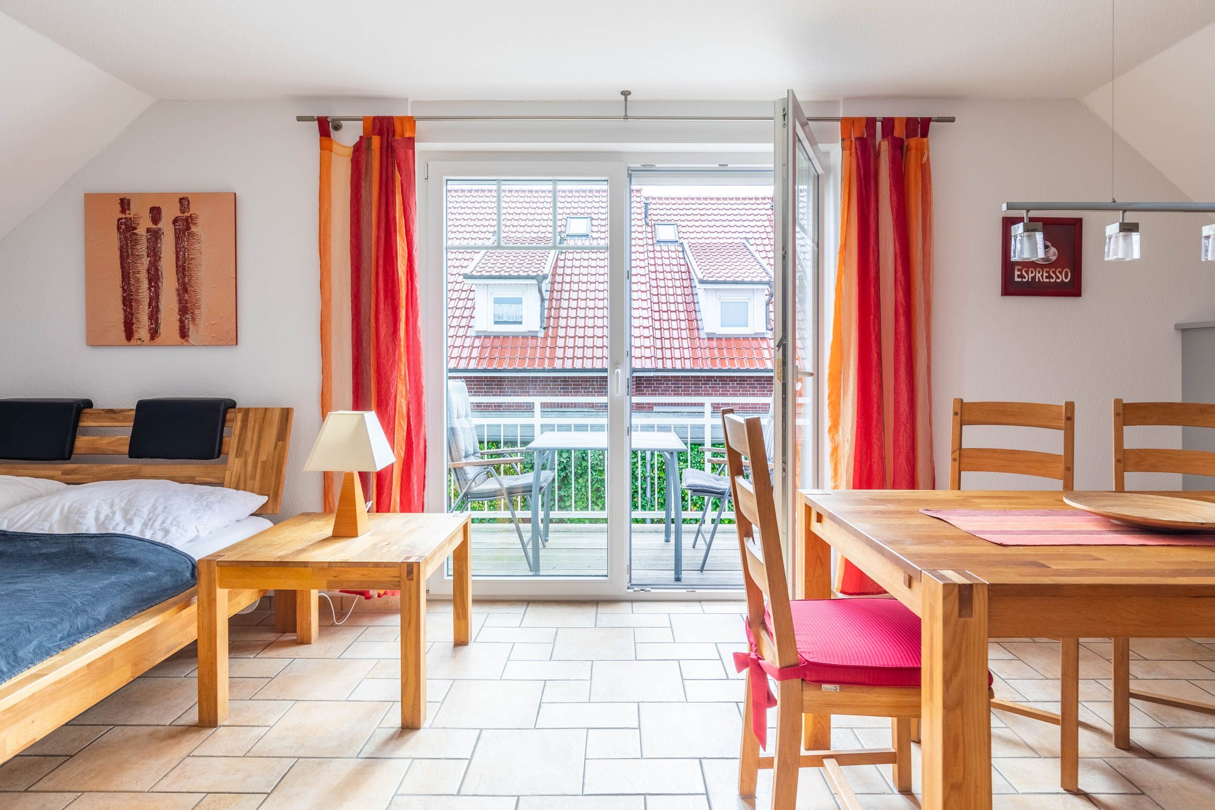 Auf dem kleinen möblierten Balkon können Sie die frische Ostseeluft genießen.