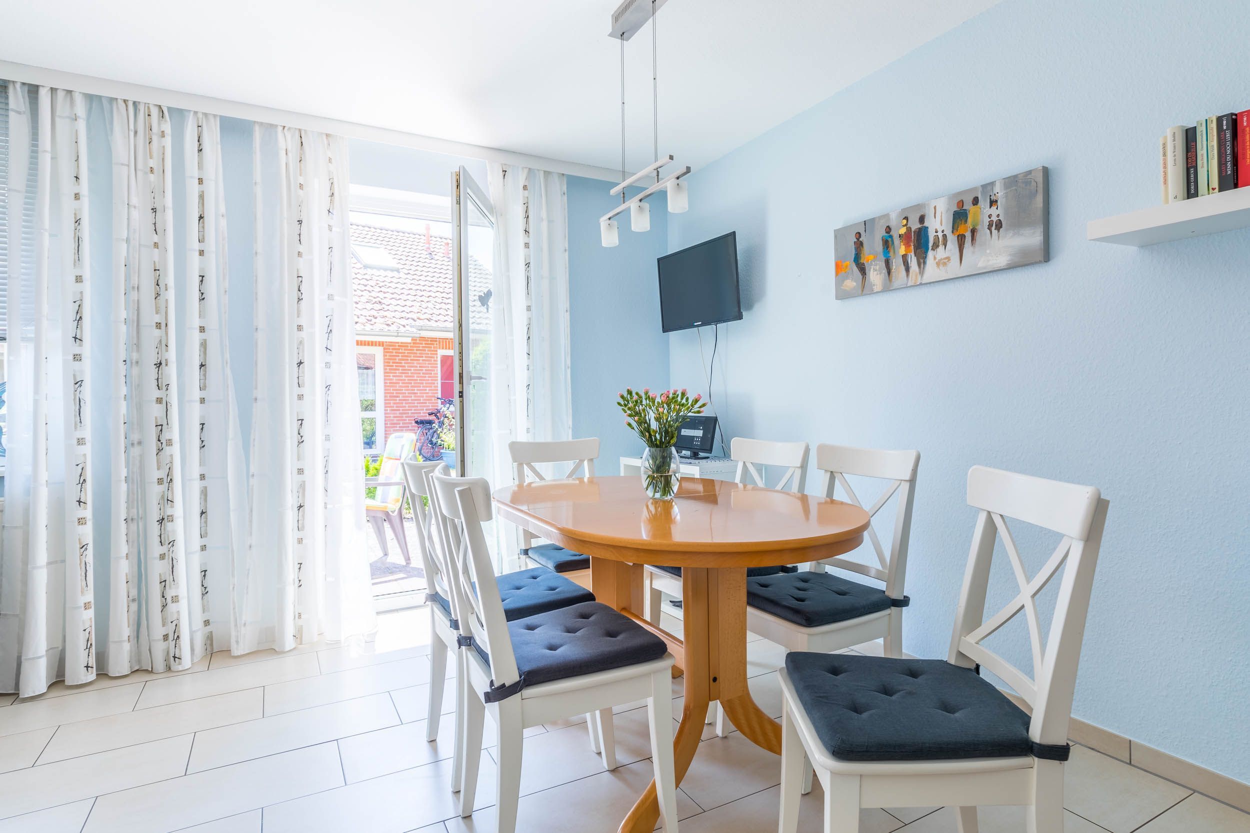 Das familienfreundliche Reihen-Ferienhaus verfügt über rund 60qm Wohnfläche. Die drei Zimmer verteilen sich über zwei Ebenen und bieten eine Ausstattung für fünf Gäste + Kleinkind.