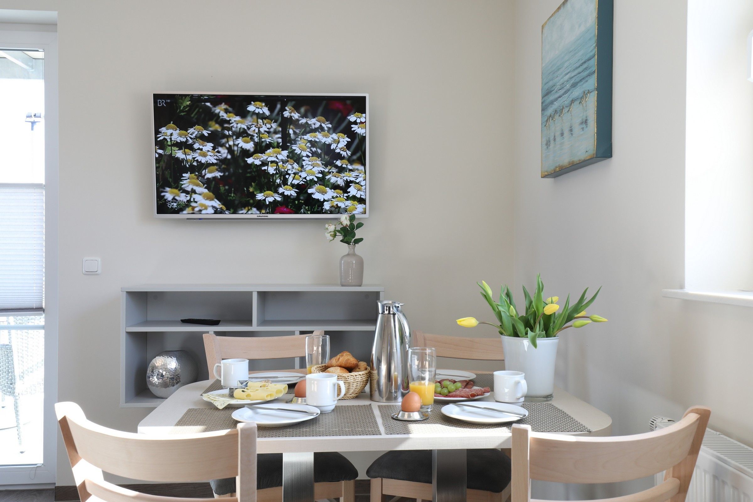 Zur gut ausgestatteten offenen Wohnküche gehört natürlich auch ein schöner, separater Essbereich, wo alle Gäste ihren Platz finden.