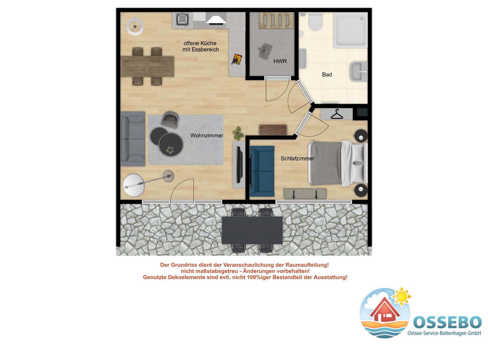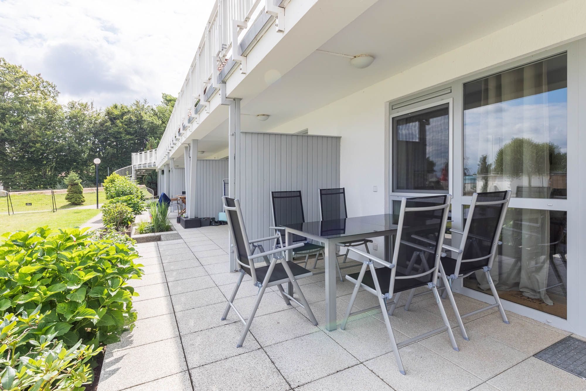 Die möblierte Terrasse liegt in Richtung Norden, wo Sie die Morgensonne & die Ostseeluft genießen können.