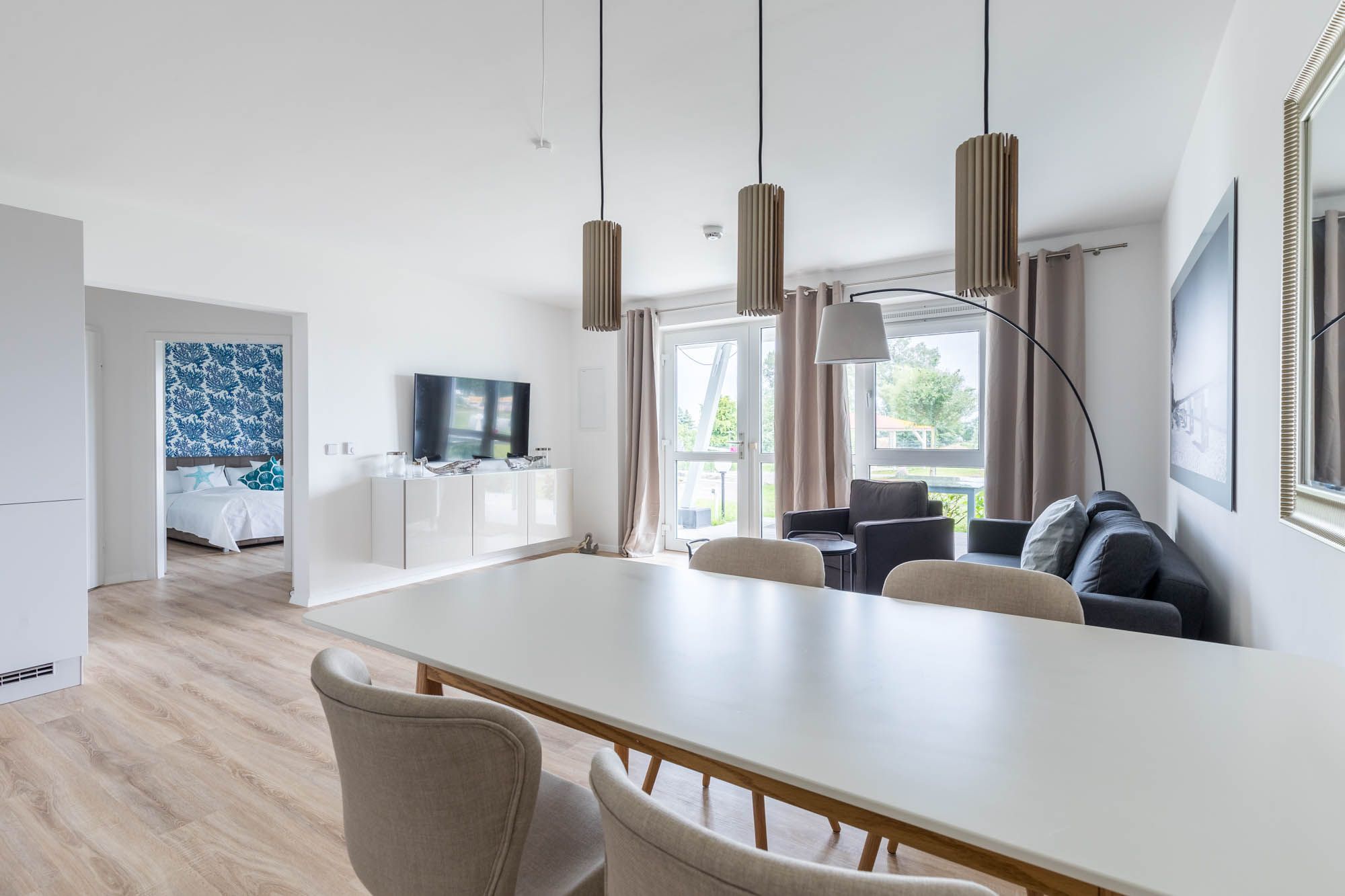Die hell gestaltete und moderne 2-Zimmer-Ferienwohnung im Erdgeschoss bietet auf großzügigen 65qm Wohnfläche Platz für 4 Gäste.