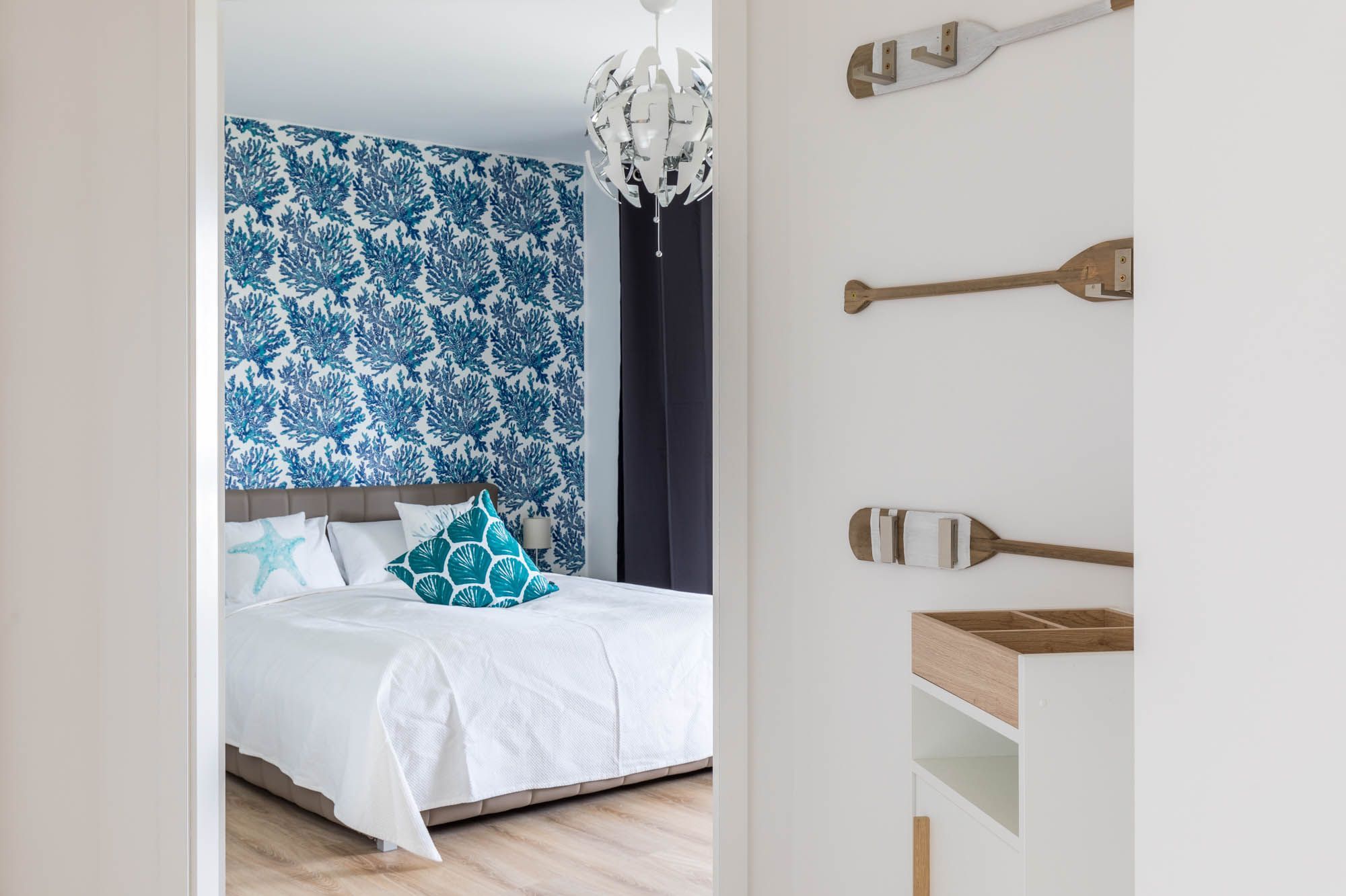 Das separate Schlafzimmer ist mit einem komfortablen, modernen Doppelbett (160x200cm) und einem zusätzlichen Schlafsofa (140x200) für 2 weitere Personen ausgestattet. Dort befindet sich auch ein Kleiderschrank und ein TV.
