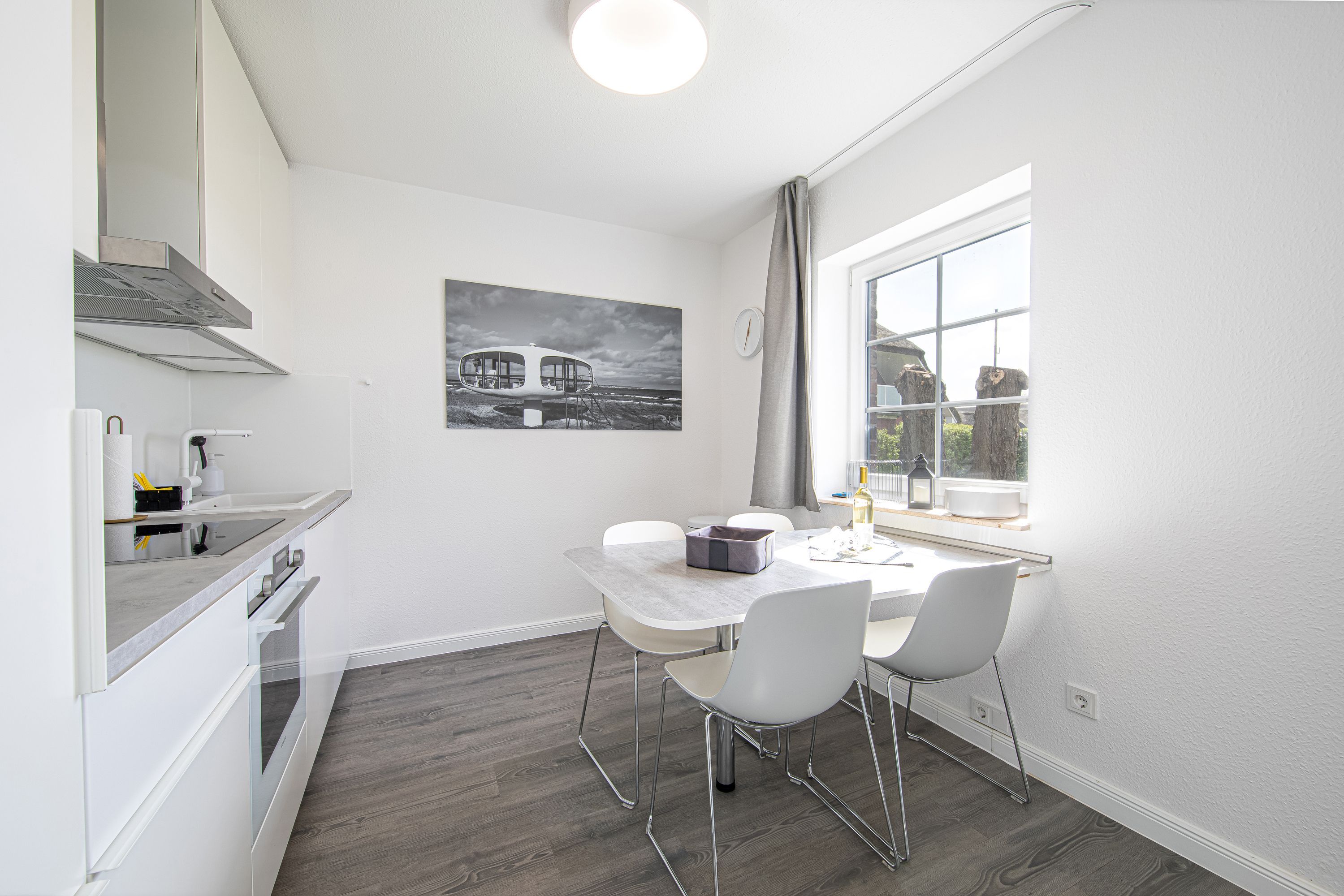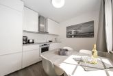 In der angrenzenden, offenen Küche, deren exklusive und komplette Ausstattung Funktionalität und Komfort in vollkommener Weise verbindet, können Sie vom Esstisch aus den traumhaften Blick auf den Selliner See genießen.