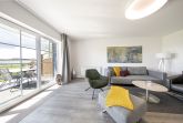 Im großzügigen, lichtdurchfluteten Wohnzimmer laden Designer-Möbel und moderne Unterhaltungstechnik zum Relaxen und Wohlfühlen ein.