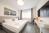 Die 2 Schlafzimmer sind liebevoll mit jeweils zwei Betten (flexibel als Doppelbett oder Einzelbetten a 0,90 x 2,00m nutzbar), Kleiderschrank, Nachttischen und Leselampen eingerichtet. Im größeren der beiden Schlafzimmer steht zusätzlich ein weiterer Smart-TV sowie ein kleiner Schreibtisch zur Verfügung.