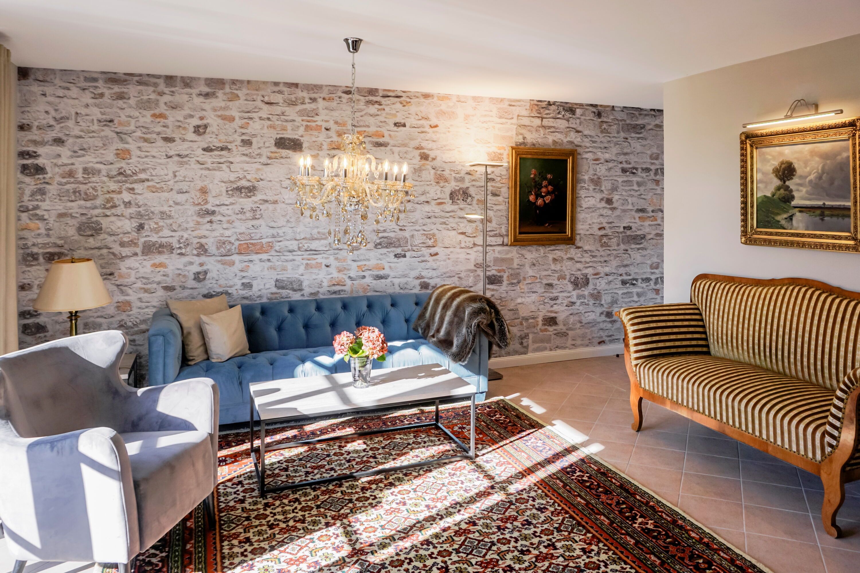 Die hochwertige Möblierung im gehobenen Landhausstil verleiht dem Appartement eine einladende, warme Atmosphäre.