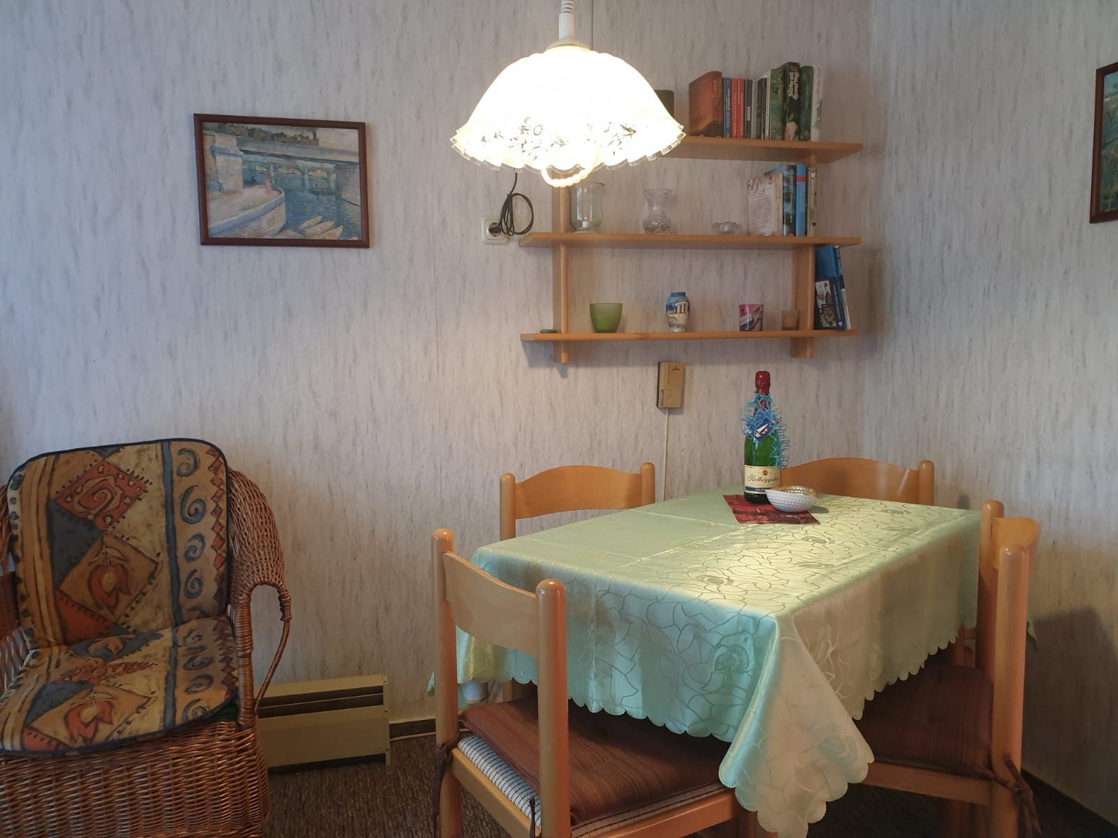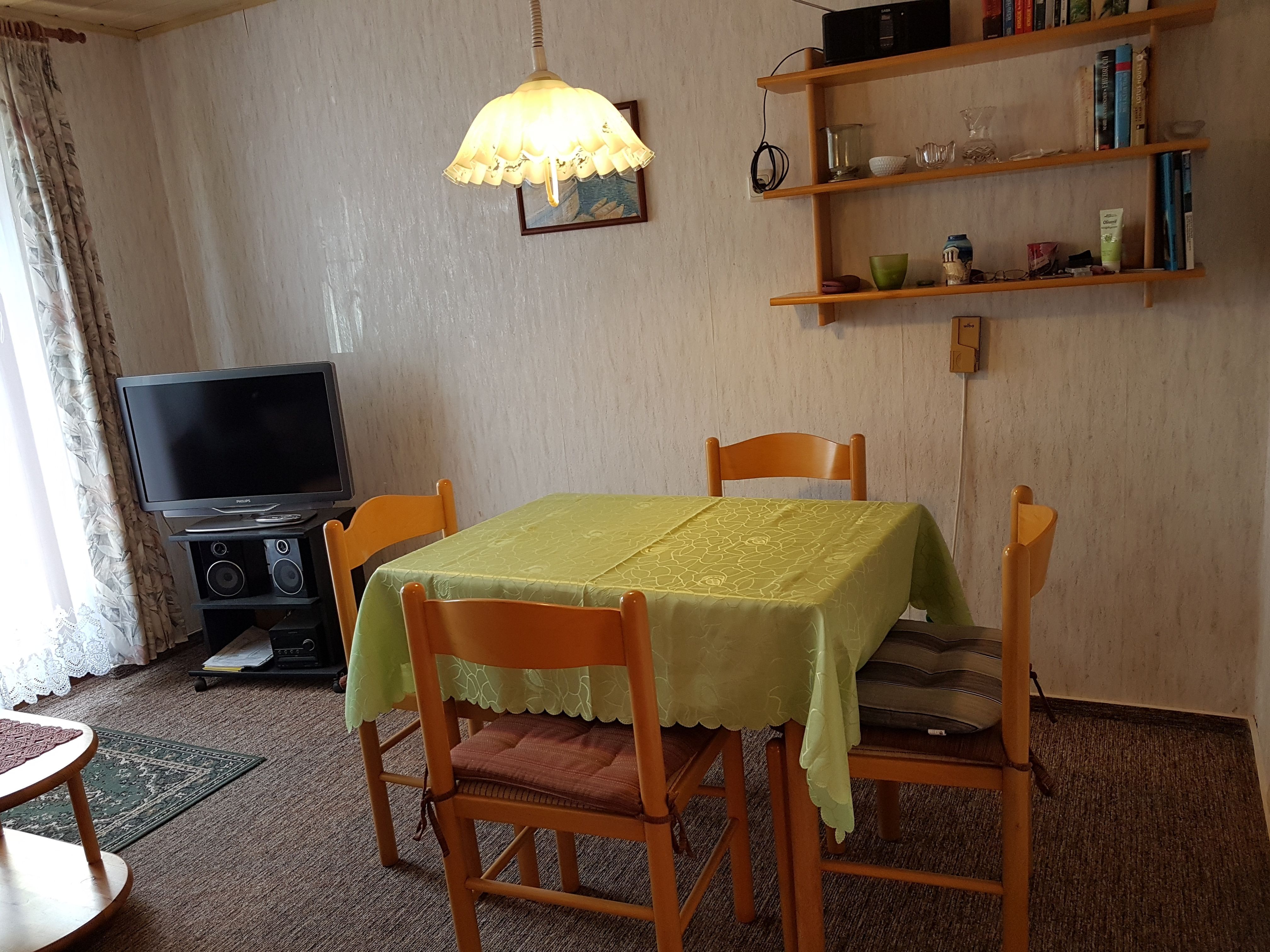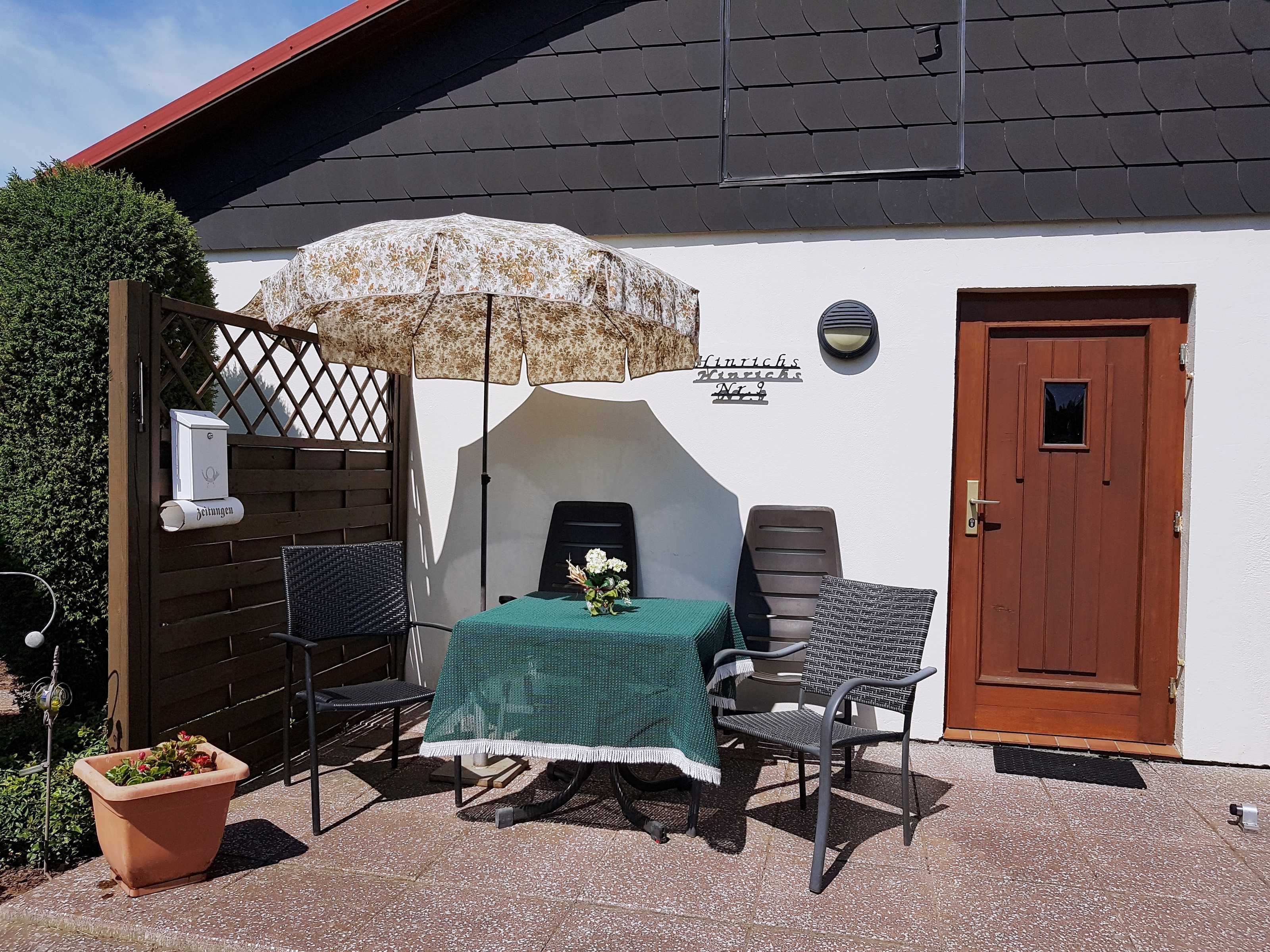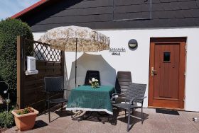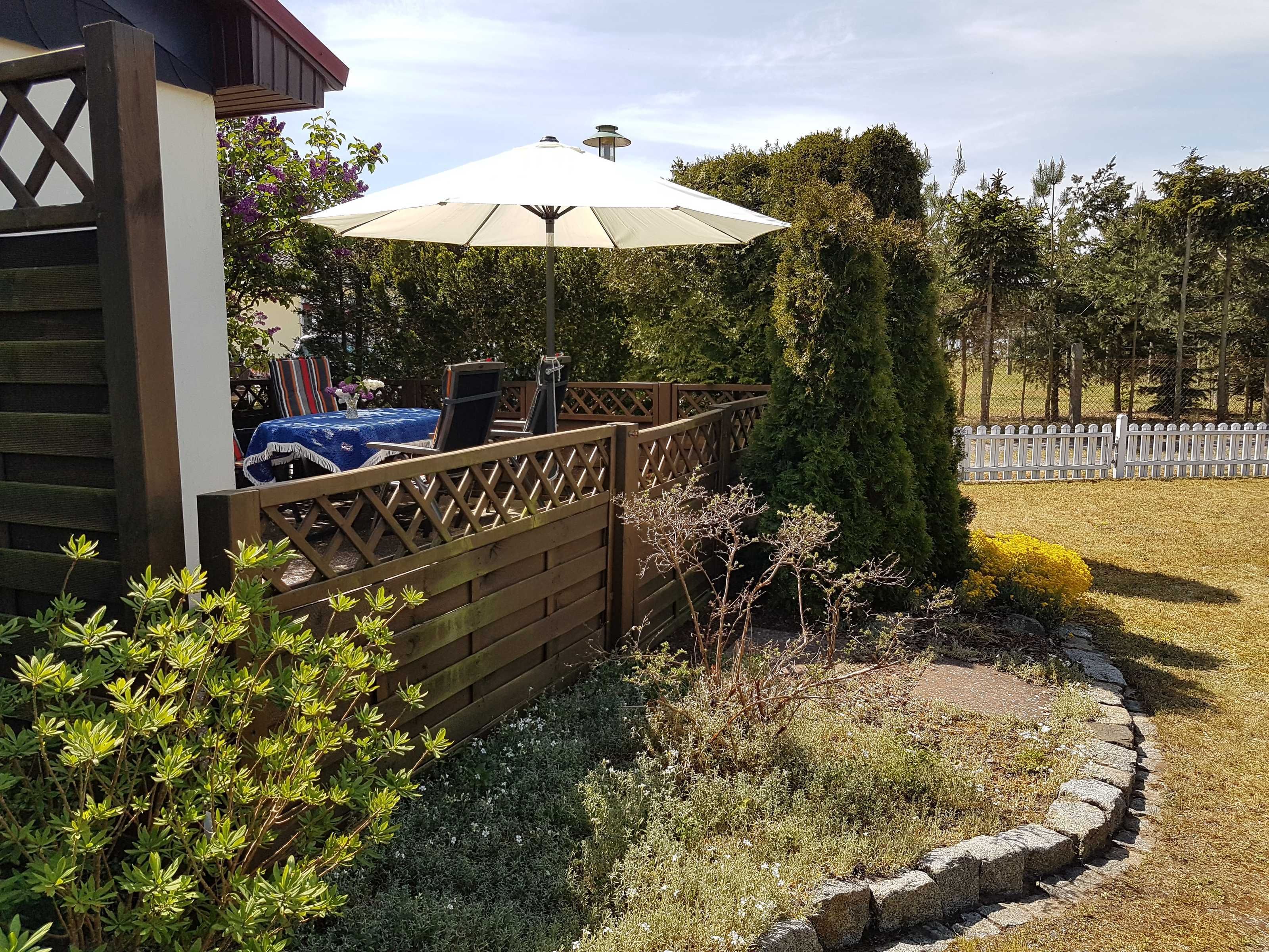 Ferienhaus für 2-4 Personen mit 2 Schlafräumen, einem Wohnraum, Bad mit DU/WC sowie einer kleinen Küche (Pantryküche) mit Mikrowelle einem Garten mit Terrasse und Grillmöglichkeit sowie eine Sonnenliege.
