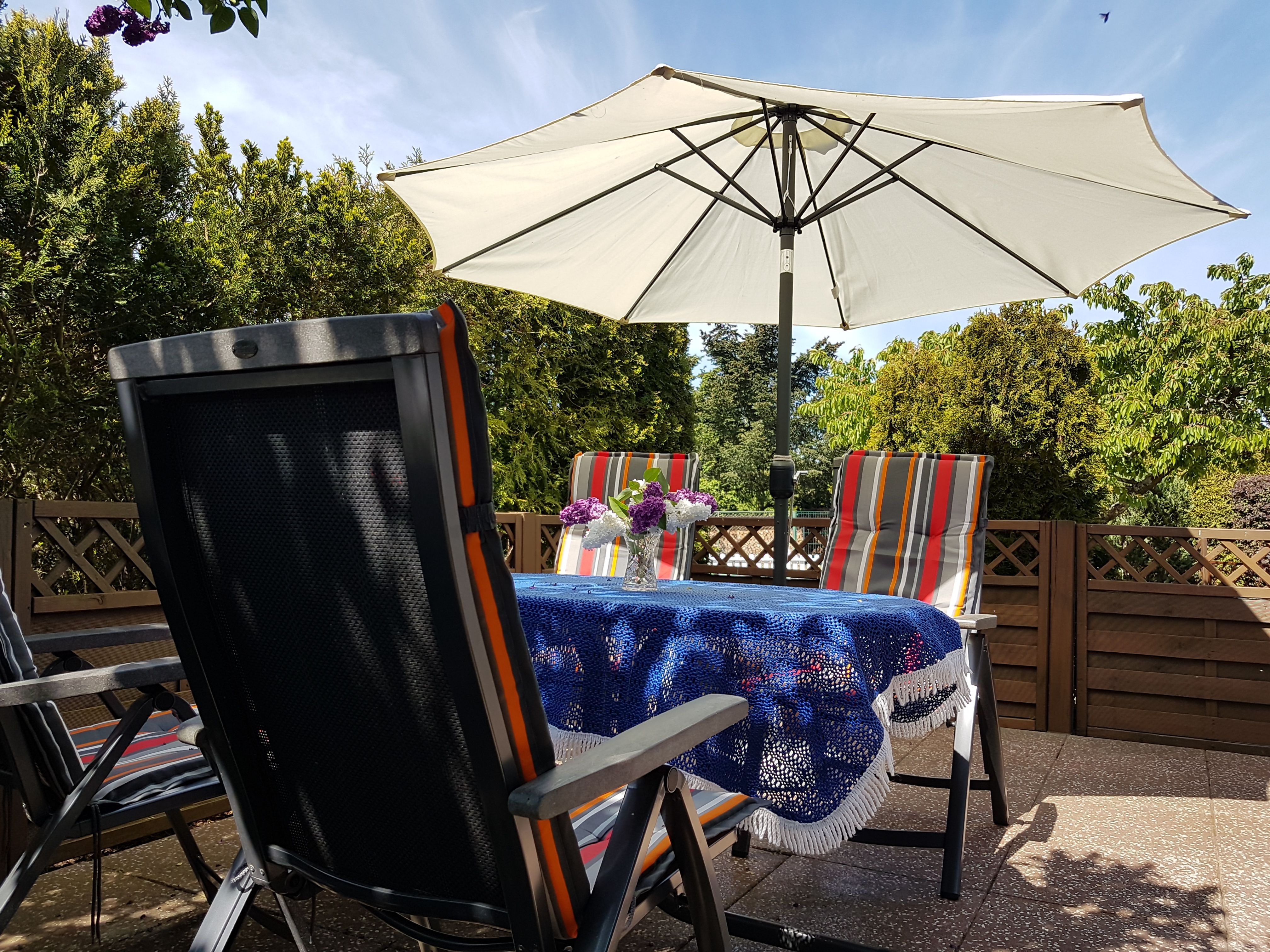 Auf dem Grundstück befindet sich ein abschließbarer Schuppen zum Abstellen von Fahrrädern, Bollerwagen usw.