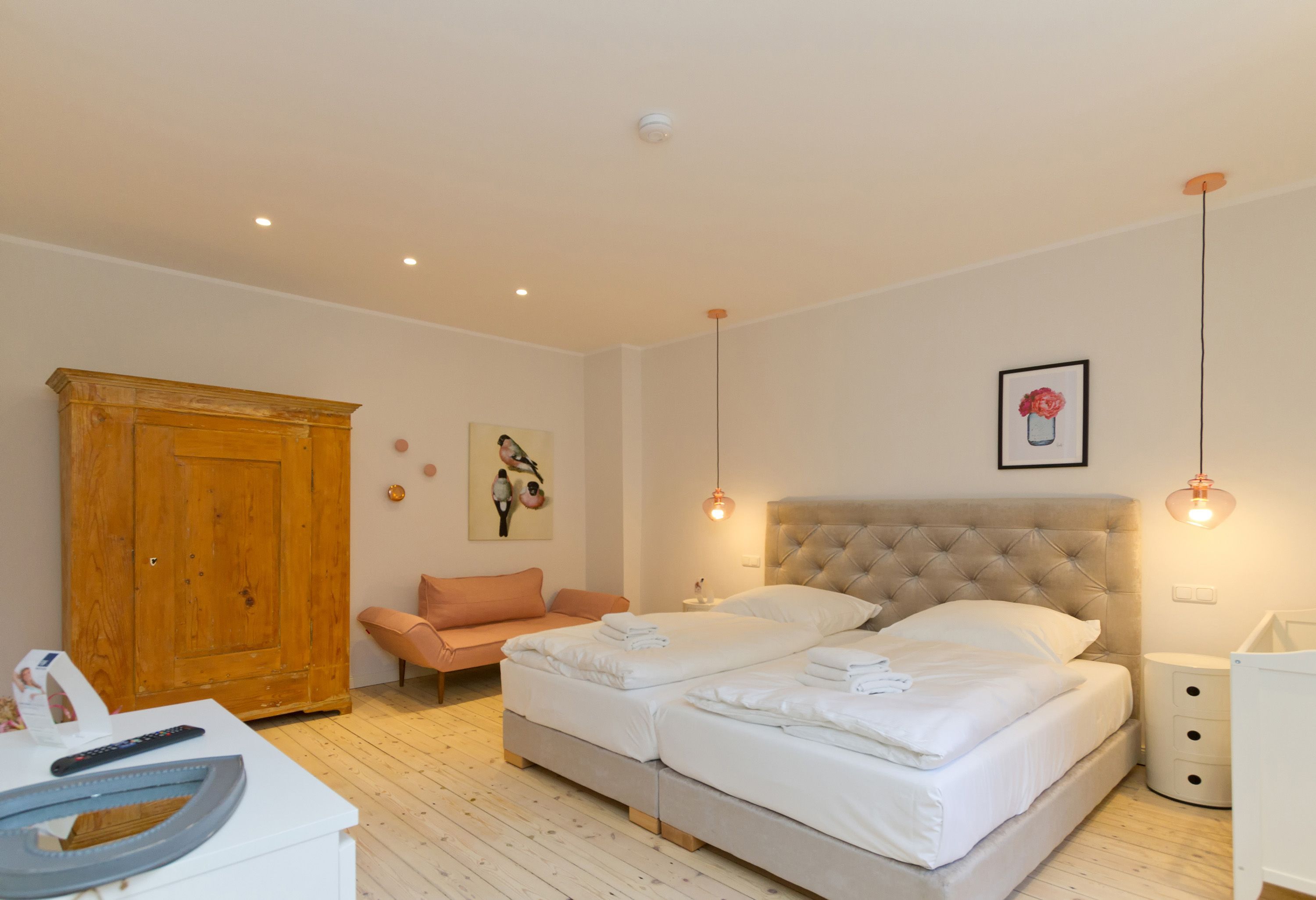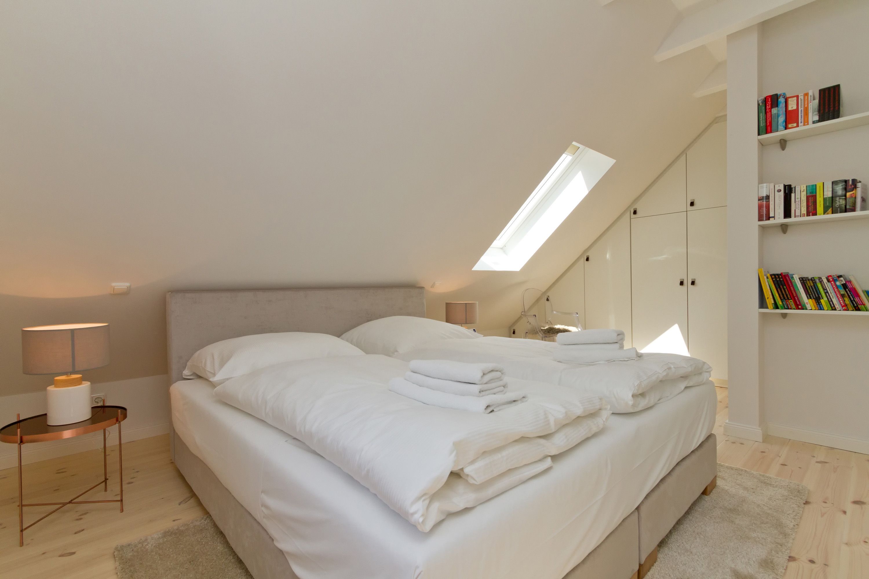Modern. Stylisch. Großzügig. Das Ferienhaus Adlerhorst hat's! Und zwar von allem ein wenig mehr. Es erwartet Sie viel Platz (240 qm), auch für eine große Familie (für 12 Personen und 3 Kleinkinder bis 3 Jahre im Kinderbett). Die Ausstattung ist modern, stylisch und sehr geschmackvoll. Helle Farben, ein nordischer Stil und hochwertige Materialien verleihen dem Haus Esprit und Charme. Über 3 Etagen verteilt sich hier das Leben. Im Erdgeschoss schließt sich an die offene komplett ausgestattete Küche (2x Backofen, großes Ceranfeld, Kühlschrank, Mikrowelle) der großzügige Essplatz im Esszimmer an. Der wunderschöne alte Holztisch lädt nicht nur zum Essen ein. Die vorgelagerte, helle Veranda dient als großer Wohnbereich. Hier lockt eine chillige Wohnlandschaft, ein riesiger Flat-TV, ein moderner Gaskamin (per Fernbedienung zu nutzen) und ein wunderschöner Blick in den Garten (Zugang zur Terrasse). Ein Schlafzimmer mit einem Duschbad en Suite und ein Gäste-WC (mit Waschmaschine und Trockner) ergänzen das Erdgeschoss. Über die schöne, alte Treppe gelangen Sie in die 2. Etage. Hier finden Sie 3 komplette Schlafzimmer mit komfortablen Doppelboxspringbetten (1,80 m x 2,00m), ein Bad mit Dusche und Badewanne und ein großes Wellnessbad mit Dusche und Sauna, die besonders in der kalten Jahreszeit ein schönes Highlight ist. Im ausgebauten Dachgeschoss bieten zwei weitere Schlafzimmer Platz zum Wohlfühlen. Auch hier sind die Doppelboxspringbetten (1,80 m x 2,00m) für den gesunden Schlaf selbstverständlich. In allen Schlafzimmern gibt es einen Flat-TV. Für Ihren Komfort sind die Betten bei der Anreise bezogen und Handtücher liegen bereit. Für kleine Gäste stellen wir Kinderreisebetten und Kinderhochstühle zur Verfügung.