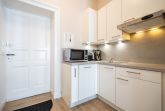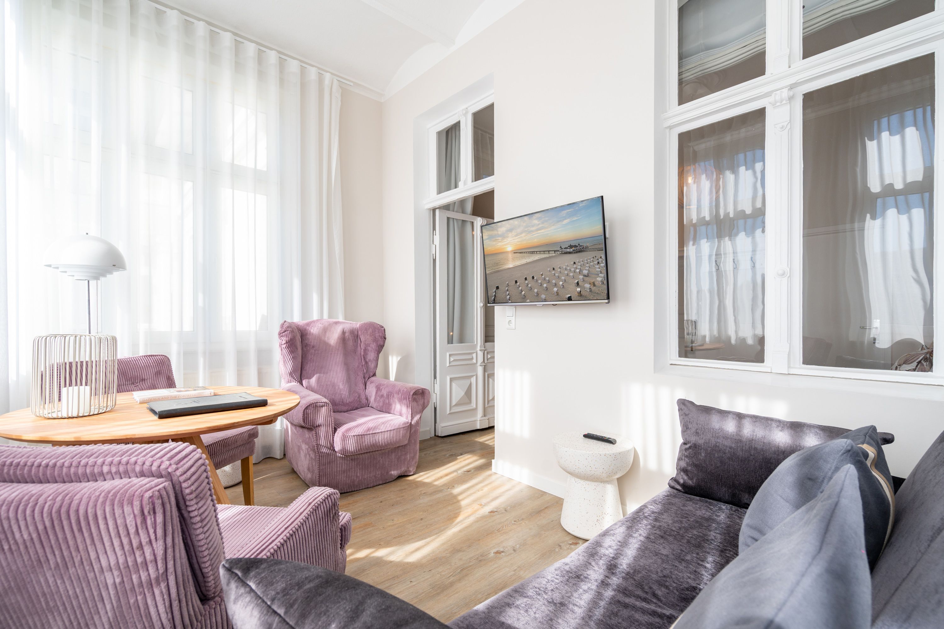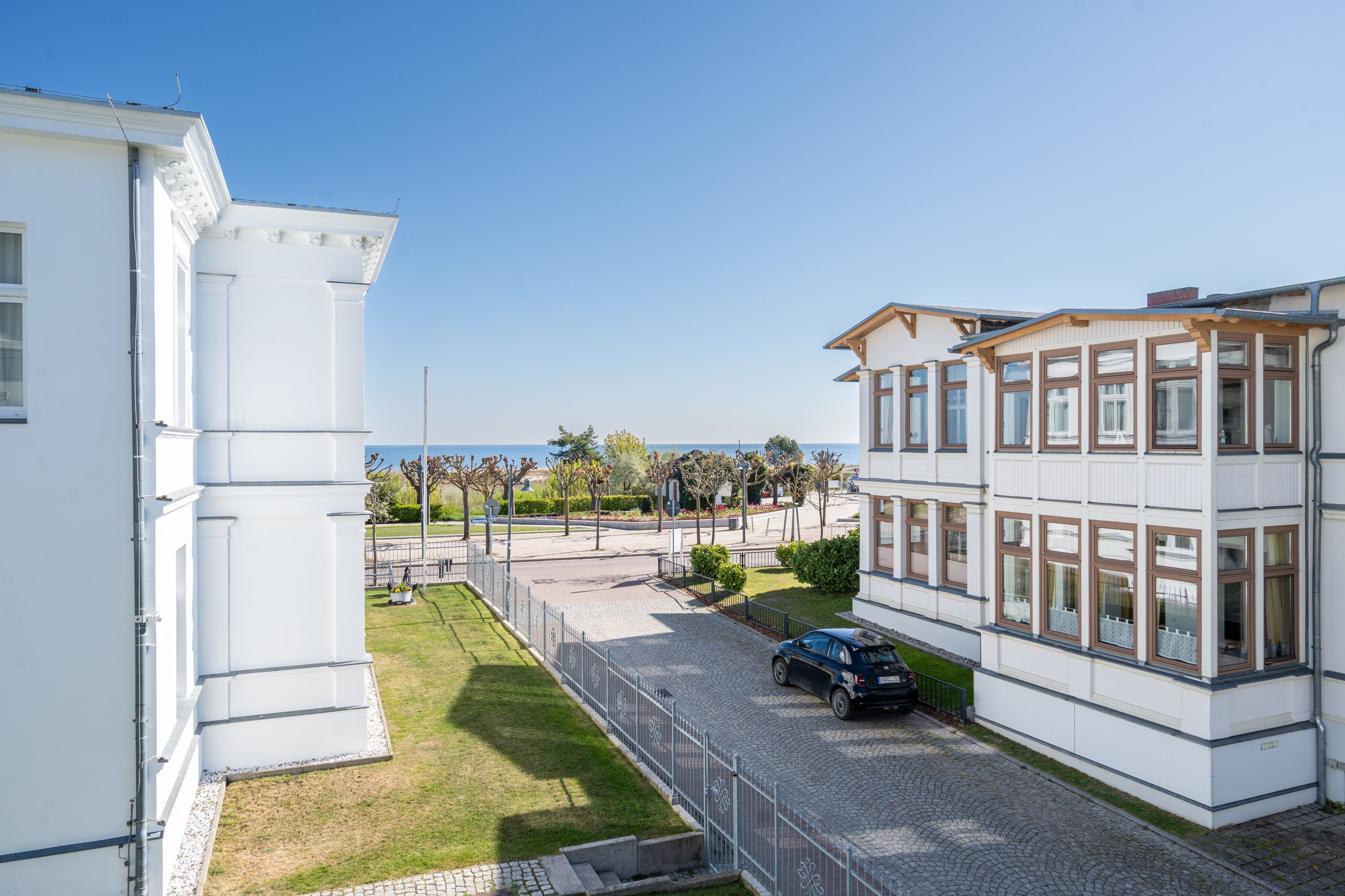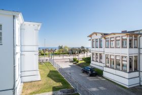 Im 1. Obergeschoss der Villa Albertine befindet sich diese schöne 2-Raum-Ferienwohnung (31 qm) für 2 Personen und ein Kind bis 16 Jahre. Die moderne, helle Einrichtung lässt keine Wünsche offen. Freuen Sie sich auf die schöne und lichtdurchflutete Veranda, in der sich der Wohnbereich mit Schlafsofa (hier kann ein Kind zusätzlich aufgebettet werden), modernem Flat-TV und ein kleiner Essplatz mit schönem, jahreszeitlich abhängigen Blick auf die Ostsee, befindet. Der Schlafbereich ist mit einem komfortablen Boxspringdoppelbett (1,60m x 2,00m) & Flat-TV ausgestattet. Im Eingangsbereich ist die kleine Küche integriert, die durch gekonnte Detaillösungen komplett ausgestattet ist (2-Platten-Induktionsfeld, Geschirrspüler, Mikrowelle). Ergänzt wird das Appartement durch ein Bad mit Dusche und WC. Ein PKW-Stellplatz Nr. 6 befindet sich auf dem Grundstück.