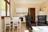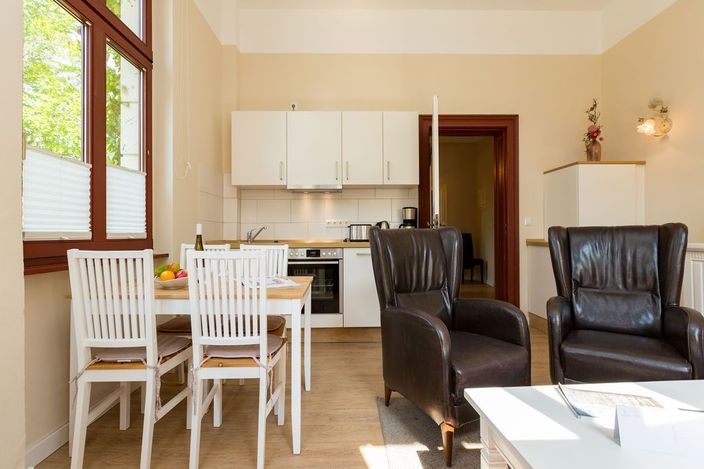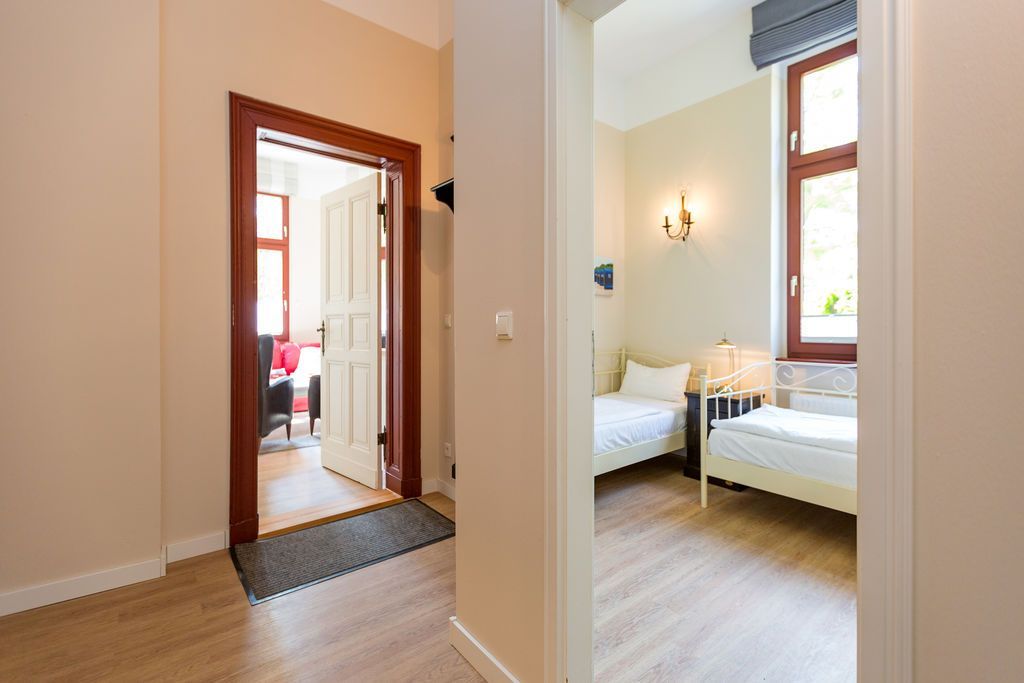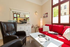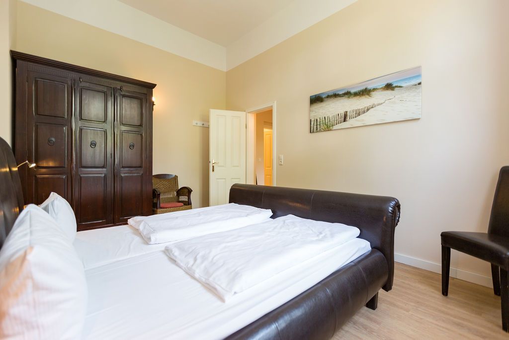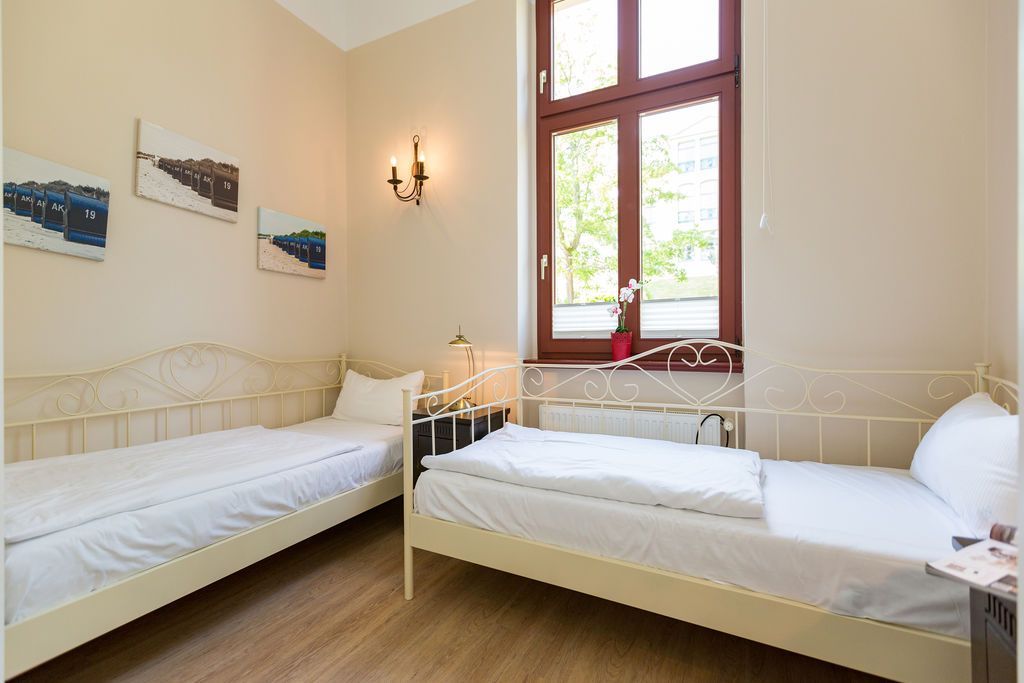 Diese traumhafte 3-Raum-Ferienwohnung begrüßt Sie Hochparterre im Kaiserbad Heringsdorf! Mit einer großzügigen Fläche von 60 qm bietet sie ausreichend Platz für bis zu 4 Personen und lädt zu einem unvergesslichen Urlaub ein. Das Wohnzimmer ist der perfekte Ort, um gemütliche Abende zu verbringen. Hier finden Sie eine bequeme Sitzgruppe und einen Fernseher, der zum Entspannen und Ausruhen einlädt. Die angrenzende Küchenzeile ist mit allem ausgestattet, was Sie zum Kochen und Zubereiten köstlicher Mahlzeiten benötigen. Ein Essplatz rundet das Wohnzimmer ab und schafft einen gemütlichen Raum für gemeinsame Mahlzeiten. Die Ferienwohnung verfügt über zwei Schlafzimmer, die Ihnen einen erholsamen Schlaf garantieren. Neben einem komfortablen Doppelbett im ersten Schlafzimmer, erwarten Sie im zweiten Schlafzimmer zwei Einzelbetten (0,90m x 2,00m). Egal ob Sie als Paar reisen oder mit Freunden, hier finden Sie den perfekten Rückzugsort. Das Badezimmer ist mit einer Dusche und einem WC ausgestattet. Darüber hinaus verfügt die Wohnung über eine kleine Terrasse, auf der Sie entspannte Momente im Freien verbringen können. Für Ihren Komfort sind die Betten bei Ihrer Anreise bereits bezogen und Handtücher liegen für Sie bereit (Erstausstattung). Darüber hinaus steht Ihnen unser kostenfreies WLAN-Netzwerk im gesamten Haus zur Verfügung. Ein weiteres Highlight ist der PKW-Stellplatz direkt am Haus.