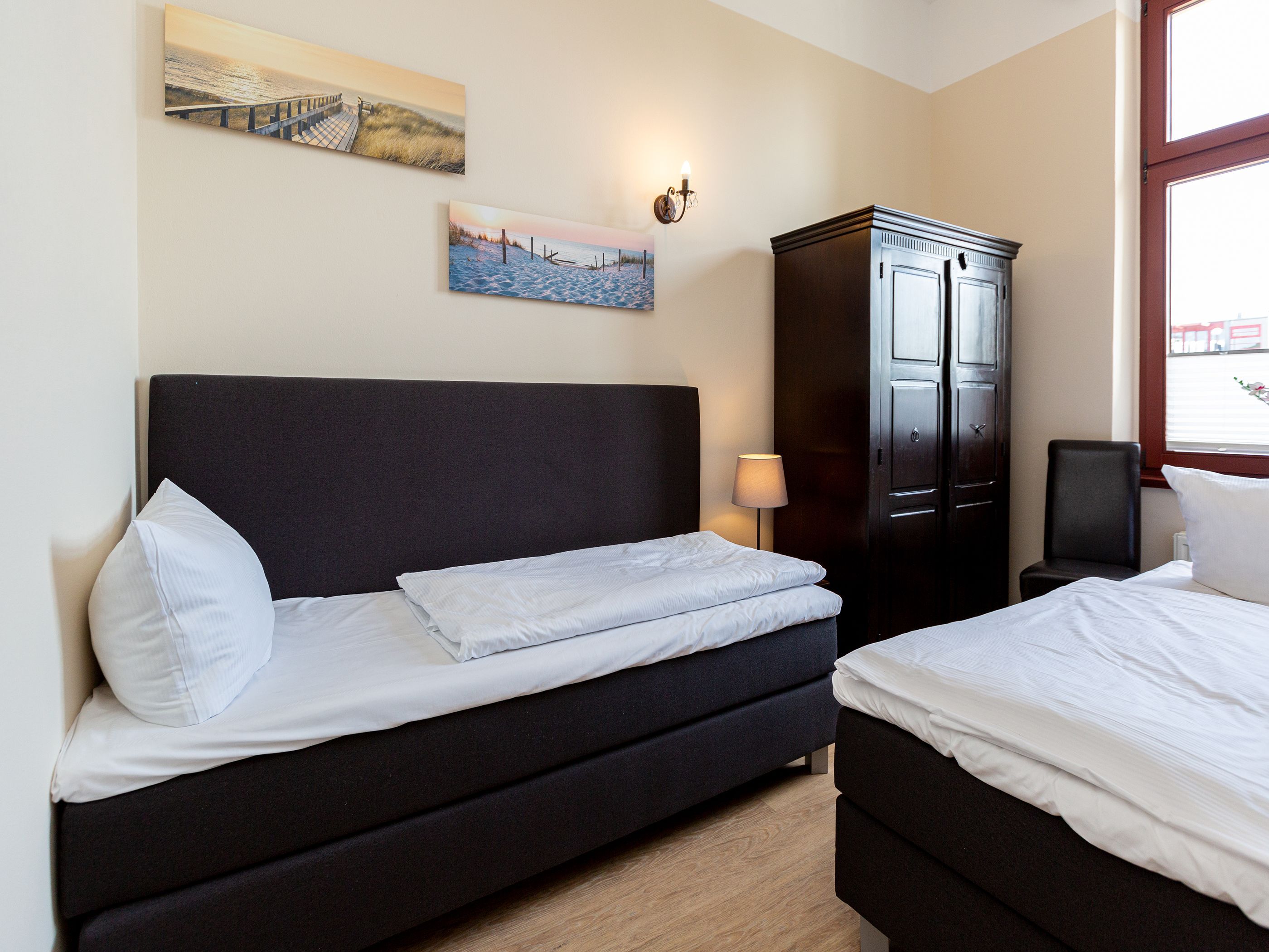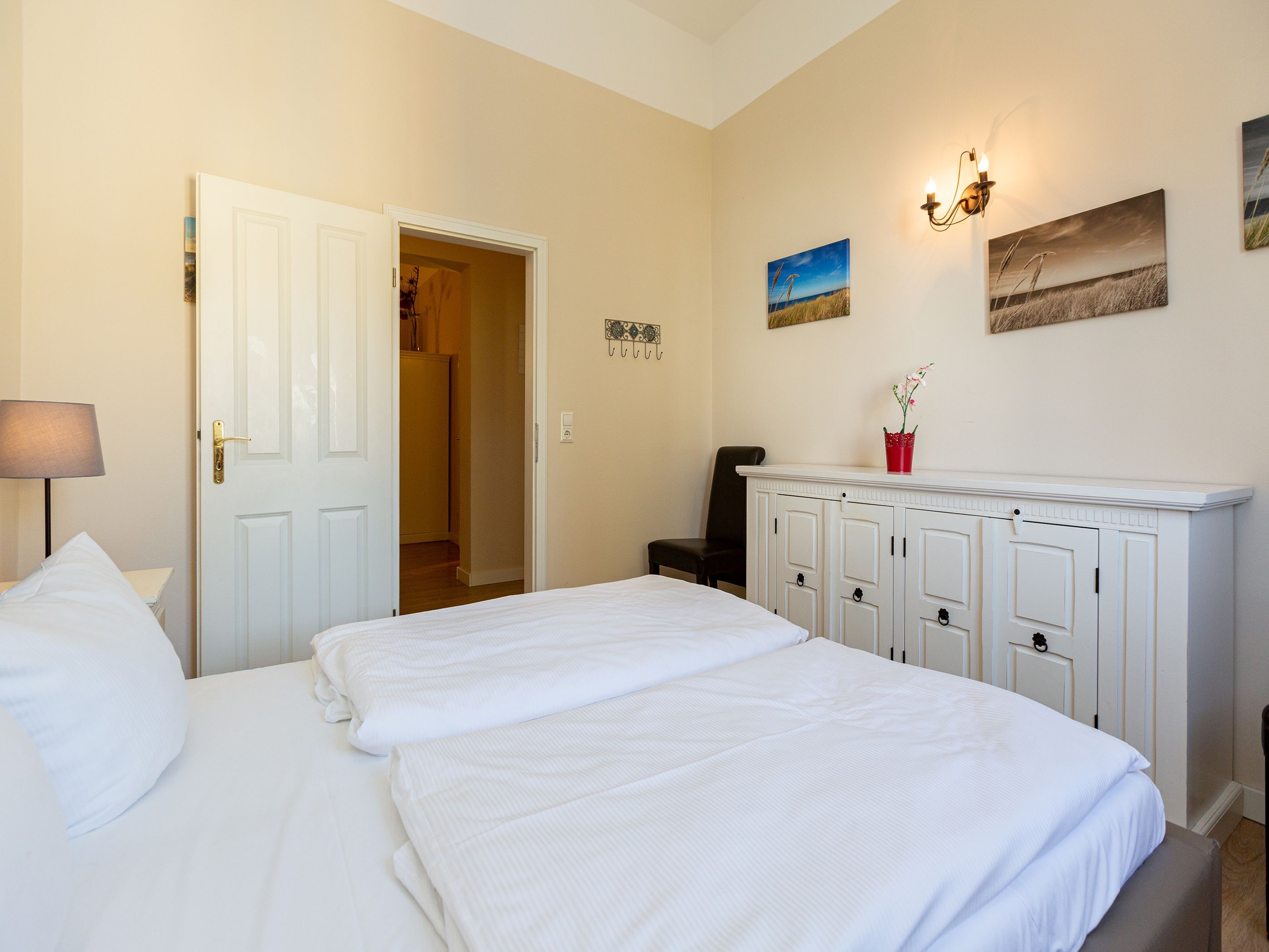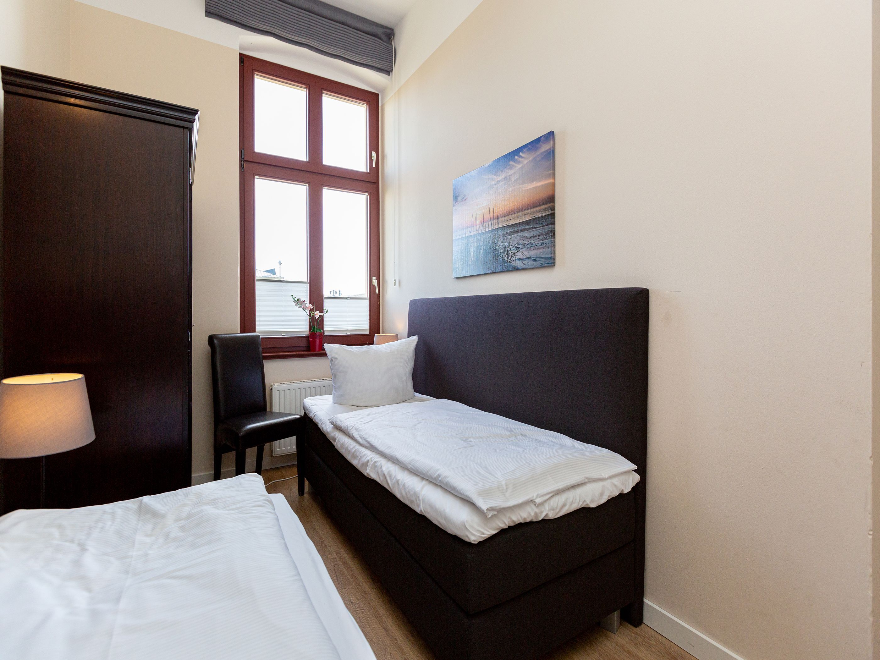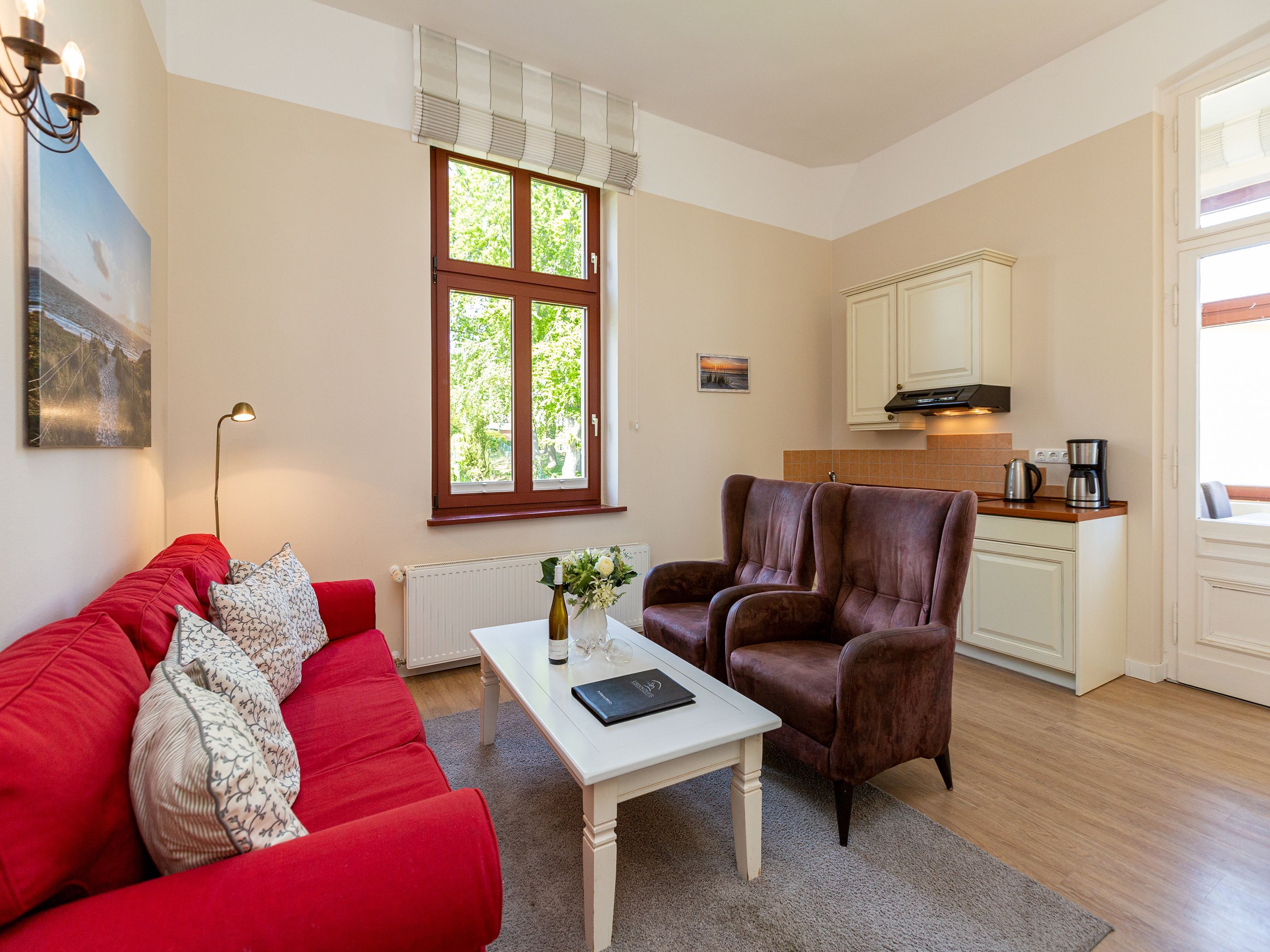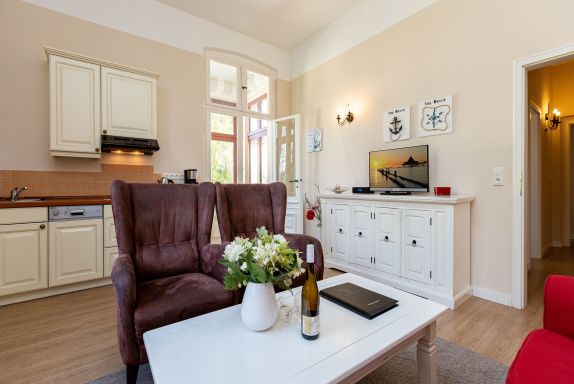 Herzlich willkommen in diesem geräumigen Appartement 05 in der Villa Arcadia. Diese Ferienwohnung befindet sich im 1. Obergeschoss und bietet Platz für bis zu 4 Personen. Sie eignet sich perfekt für Familien mit 2 Erwachsenen und 2 Kindern bis 16 Jahre. Die Wohnung verfügt über ein gemütliches Wohnzimmer mit einer bequemen Sitzgruppe und einem Fernseher. Die angrenzende Küchenzeile ermöglicht es Ihnen, auch im Urlaub Ihre Lieblingsgerichte zuzubereiten. Im Erker des Wohnzimmers befindet sich ein Essplatz, an dem Sie gemeinsam Mahlzeiten genießen können. Für erholsame Nächte stehen Ihnen zwei Schlafzimmer zur Verfügung. Das erste Schlafzimmer ist mit einem komfortablen Doppelbett (1,80m x 2,00m) ausgestattet, während das zweite Schlafzimmer zwei Einzelbetten (0,90m x 2,00m) bietet. Ein Duschbad und ein separates WC sorgen für zusätzlichen Komfort während Ihres Aufenthalts. Direkt am Haus befindet sich zudem Ihr PKW-Stellplatz. Bei Ihrer Ankunft sind die Betten bereits bezogen und Handtücher liegen als Erstausstattung für Sie bereit. Zudem können Sie das kostenfreie WLAN-Netz im gesamten Haus nutzen.