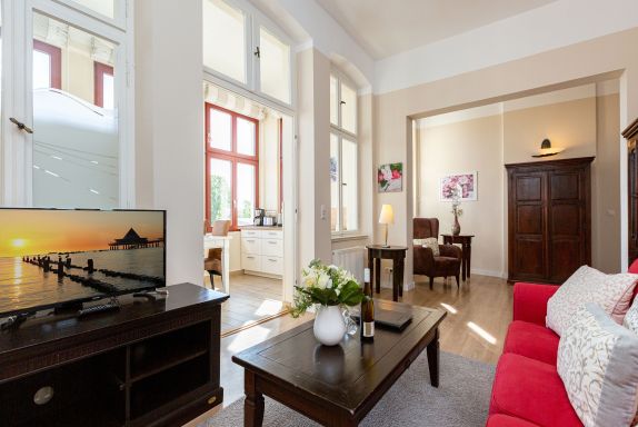 Die schöne Villa Arcadia liegt in der Delbrückstraße im Seebad Heringsdorf. Komfortabel ausgestattet, finden Sie alles für einen erholsamen Urlaub in Heringsdorf. Geschmackvolle 2- und 3-Raum-Appartements bieten Platz für bis zu 4 Personen. Das Haus ist nur wenige Schritte vom feinsandigen Strand und der reizvollen Promenade entfernt. Im Untergeschoss der Villa befindet sich eine kostenfreie Sauna und eine Waschmaschine, die gegen eine Gebühr von EUR 4,00 pro Waschgang von allen Gästen genutzt werden kann. Für Fahrräder gibt es einen Fahrradabstellraum. Für jede Wohnung steht ein Pkw-Stellplatz am Objekt zur Verfügung. Das WLAN-Netz im Haus ist kostenfrei nutzbar.