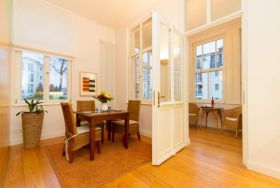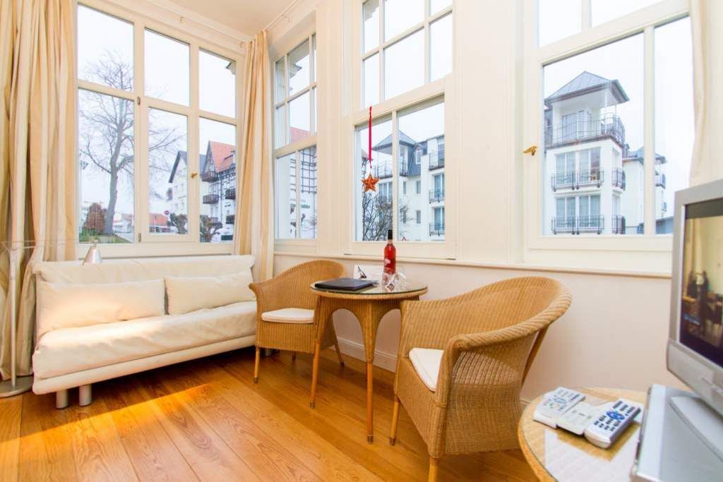 Die Ferienwohnung 2 in der Villa Artemis empfängt Sie im Hochparterre des Hauses und ist zur Seeseite gelegen. Auf 45 qm bietet Ihnen dieses 2-Raum Appartement eine separate Küche mit Essbereich, einen Wohnbereich in der Licht durchfluteten, verglasten Veranda und ein Schlafzimmer mit Doppelbett. Klare Linien, hochwertige Materialien, von der Bulthaup Küche über helle Pitch Pine Böden bis hin zum Flachbild Fernseher, Sie werden begeistert sein. Ein DVD-Player kann Ihnen auf Anfrage zur Verfügung gestellt werden.