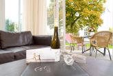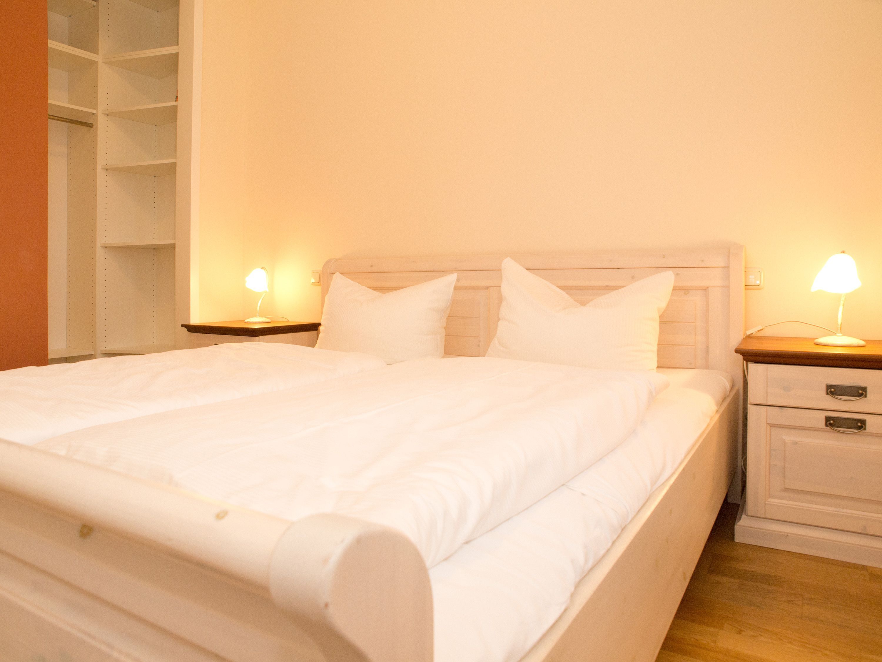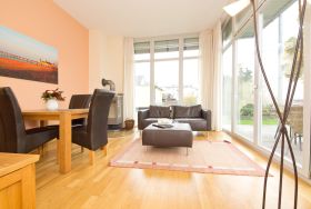 Die Ferienwohnung Theodor Storm, im Erdgeschoss des Autorenhauses, ist die richtige Adresse, sofern Sie Platz, Komfort und eine entspannte Atmosphäre suchen. Ein besonderes Wohnerlebnis bereiten hier die lichtdurchfluteten Räumlichkeiten, das aufwändig verlegte Parkett und die geschmackvolle, mediterran angehauchte Einrichtung. Im Wohnzimmer mit Essplatz relaxt man auf der bequemen Ledercouch. An kalten Tagen wird es durch den knisternden Kaminofen hier so richtig warm und kuschelig. Die kleine Küchenzeile wird durch einen Essplatz im Wohnbereich ergänzt. Das Schlafzimmer mit Doppelbett ( 1,80m x 2m) bietet Platz für 2 Erwachsene und 1 Kleinkind (bis 2 Jahre) im Reisebett und verfügt über einen großzügigen Einbauschrank. Und das Bad ist mit einer ebenerdigen Dusche und WC ausgestattet. Ein weiteres Highlight ist die umlaufende Terrasse, besonders in den Morgen- und Nachmittagsstunden ein Erholungsgarant. Auf Wunsch stellen wir für unsere kleinen Gäste ein Kinderreisebett (ohne zusätzliche Matratze & Bettzeug) und einen Kinderhochstuhl ( gegen einen Aufpreis) zur Verfügung. Für Ihren Komfort sind die Betten bei der Anreise bezogen und Handtücher liegen bereit. Das WLAN-Netz in der Wohnung kann kostenfrei genutzt werden.
