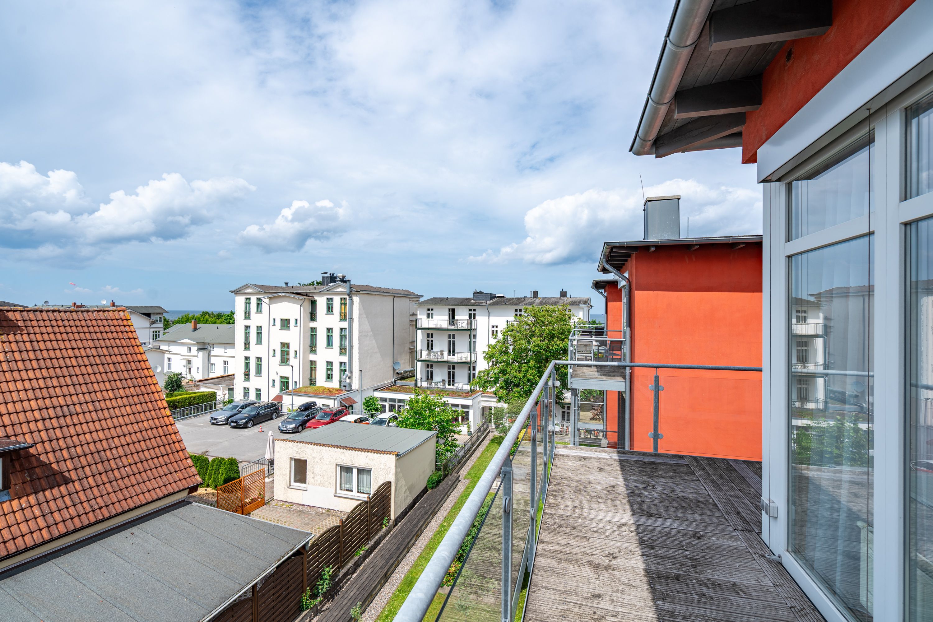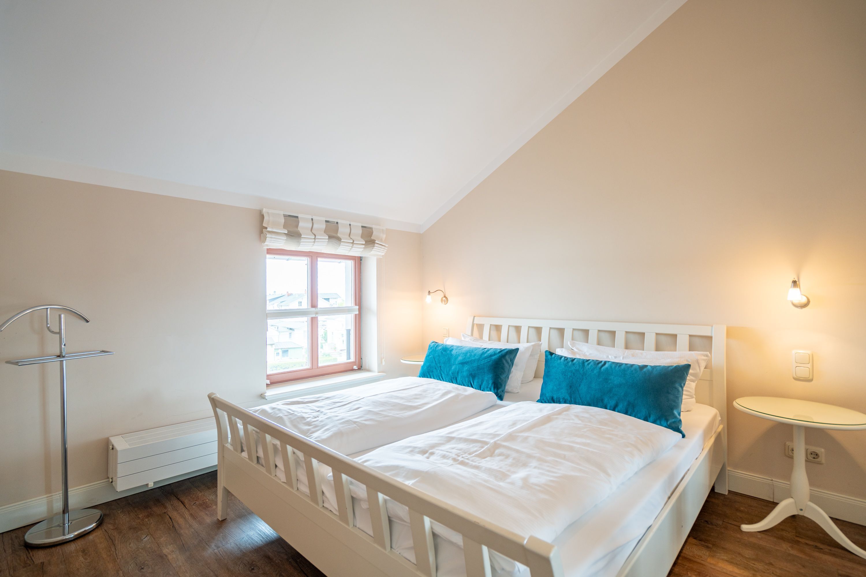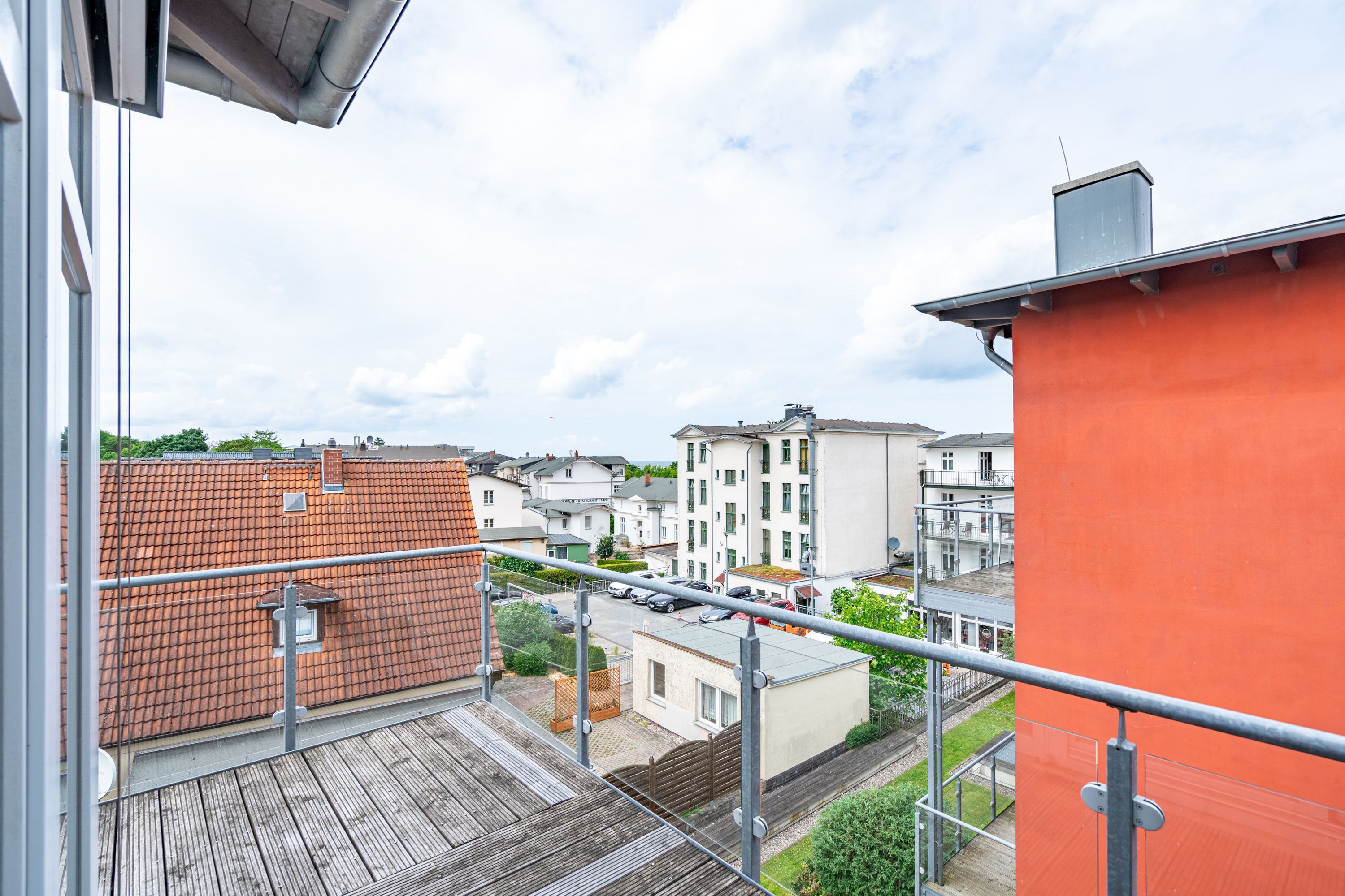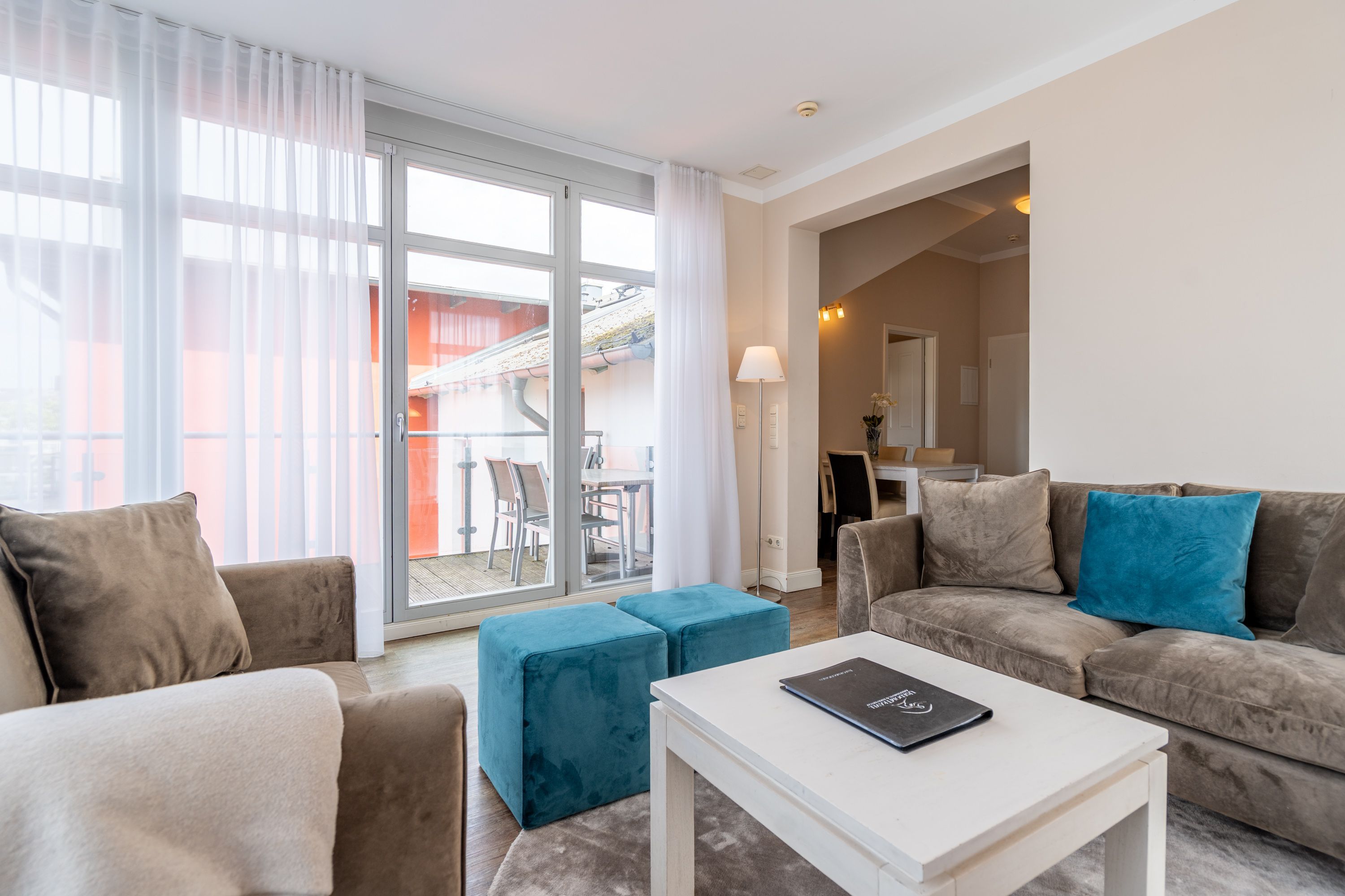 Moderner Landhausstil, stilvolle Dekorationen und ein lichtdurchfluteter Wohnbereich - herzlich Willkommen in der Ferienwohnung 13 des Autorenhauses. Hier werden Sie sich von Beginn an, wie zu Hause fühlen. Im Wohnbereich relaxt man vor dem Kamin, von hier hat man Zugang zum umlaufenden, großzügigen Balkon, der ab mittags Sonne verspricht. Das Schlafzimmer ist mit einem Doppelbett (1,80m x 2m) eingerichtet und bietet Platz für 2 Erwachsene und 1 Kleinkind (bis 3 Jahre) im Reisebett. Und die integrierte Küche ist komplett ausgestattet. Ergänzt wird die Wohnung durch ein modernes Bad mit Dusche. Auf Wunsch stellen wir für unsere kleinen Gäste ein Kinderreisebett (ohne zusätzliche Matratze & Bettzeug) und einen Kinderhochstuhl ( gegen einen Aufpreis) zur Verfügung. Für Ihren Komfort sind die Betten bei der Anreise bezogen und Handtücher liegen bereit. Im Keller des Hauses stehen eine Waschmaschine und ein Trockner gegen Gebühr zur Verfügung. Bei diesem Appartement besteht die Möglichkeit es mit dem Nachbarappartement 14 zu kombinieren. Durch einen gemeinsam nutzbaren Vorflur entsteht auf Wunsch aus beiden Wohnungen ein großes Urlaubsdomizil mit 2 Schlafzimmern.