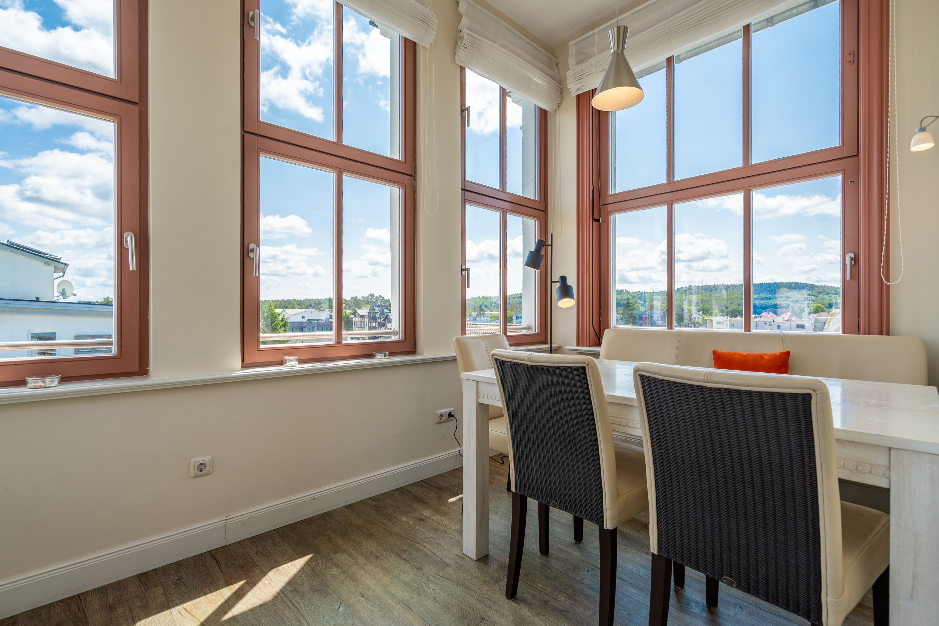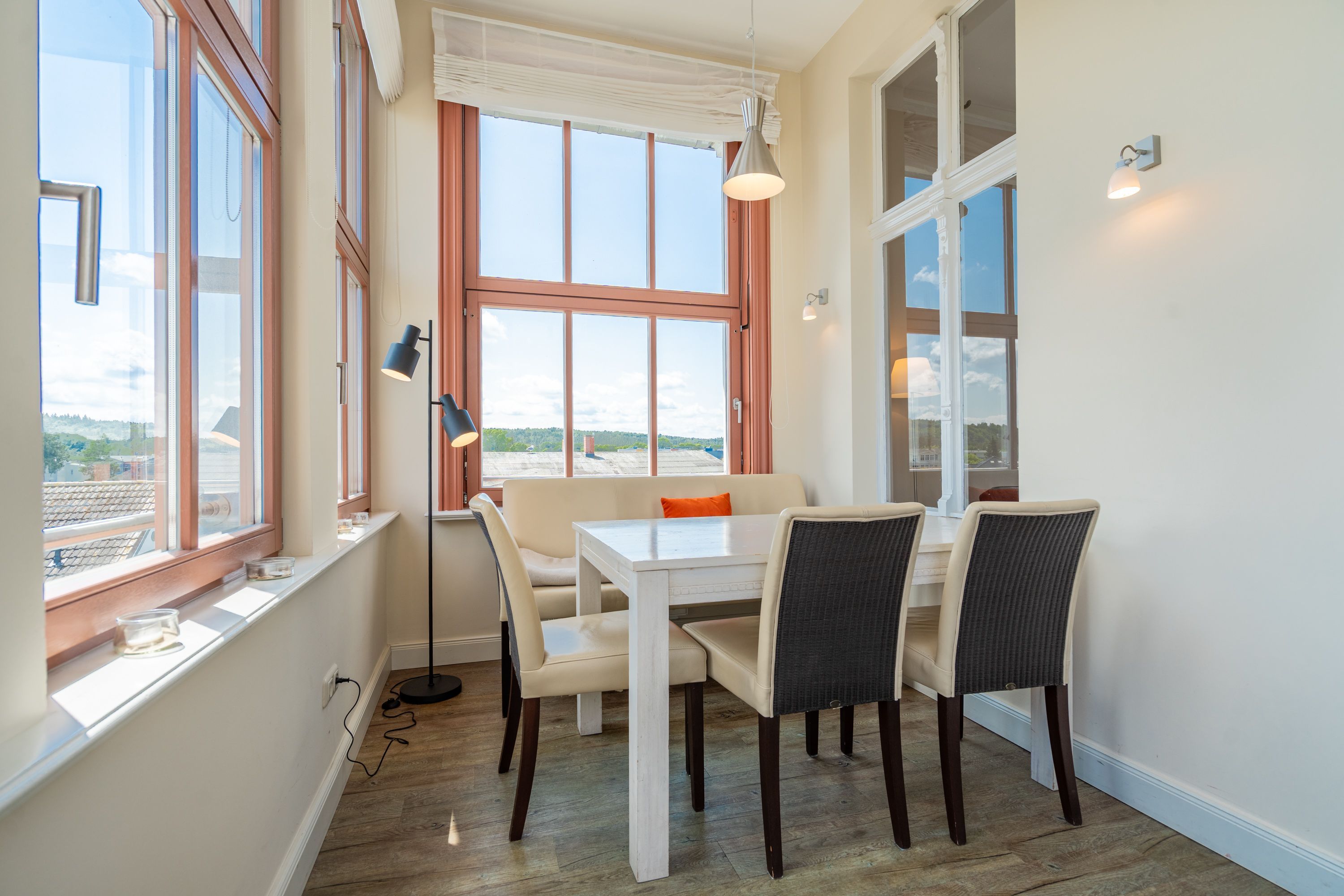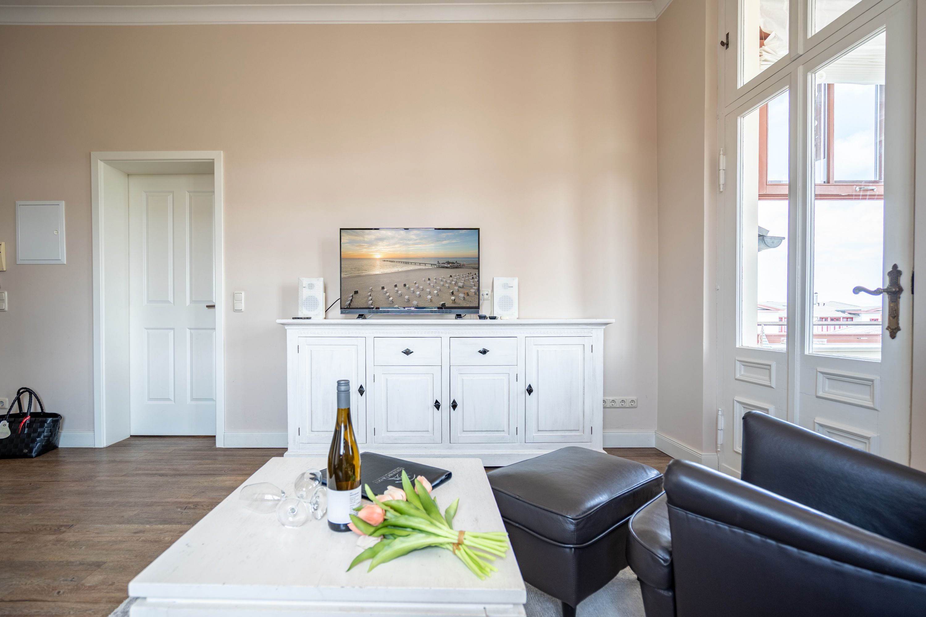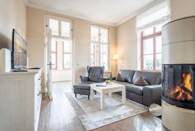 Geschmackvoll. Stilsicher. Mit äußerst viel Liebe zum Detail, Hochwertigkeit und stilsicherer Eleganz erwartet Sie ein außergewöhnliches Urlaubsdomizil im Obergeschoss des Autorenhauses. Der helle Wohnbereich mit Kamin, grenzt an die offene Küche, die auch hohen Ansprüchen gerecht wird. Vom gemütlichen Essplatz in der verglasten Loggia blickt man direkt aufs Meer, da schmeckt der Kaffee gleich noch besser und auch ein Buch liest sich hier besonders schön. Im Schlafzimmer mit komfortablem Doppelbett (1,80?m x 2?m) lässt es sich herrlich entspannen – ein zusätzlicher Flat-TV rundet das Wohlfühlambiente stilvoll ab. “Ergänzt wird die Wohnung durch ein modernes Bad mit Dusche. Das Appartement kann mit 2 Erwachsenen und 1 Kleinkind im Reisebett gebucht werden. Auf Wunsch stellen wir für unsere kleinen Gäste ein Kinderreisebett (ohne zusätzliche Matratze & Bettzeug) und einen Kinderhochstuhl ( gegen einen Aufpreis) zur Verfügung. Für Ihren Komfort sind die Betten bei der Anreise bezogen und Handtücher liegen bereit. Das WLAN-Netz im Haus ist kostenfrei nutzbar. Im Keller des Hauses stehen eine Waschmaschine und ein Trockner gegen Gebühr zur Verfügung. Bei diesem Appartement besteht die Möglichkeit es mit dem Nachbarappartement 13 zu kombinieren. Durch einen gemeinsam nutzbaren Vorflur entsteht auf Wunsch aus beiden Wohnungen ein großes Urlaubsdomizil mit 2 Schlafzimmern. Für Ihren Pkw steht Ihnen in der hauseigenen Tiefgarage ein fester Stellplatz Nr. 14 zur Verfügung. Besonders praktisch: Für Gäste mit E-Auto steht eine gemeinschaftliche Lademöglichkeit in der Tiefgarage zur Verfügung (wird von vier Wohneinheiten genutzt). Die Abrechnung erfolgt bequem über eine Ladekarte eines bekannten Anbieters oder per Kreditkarte.