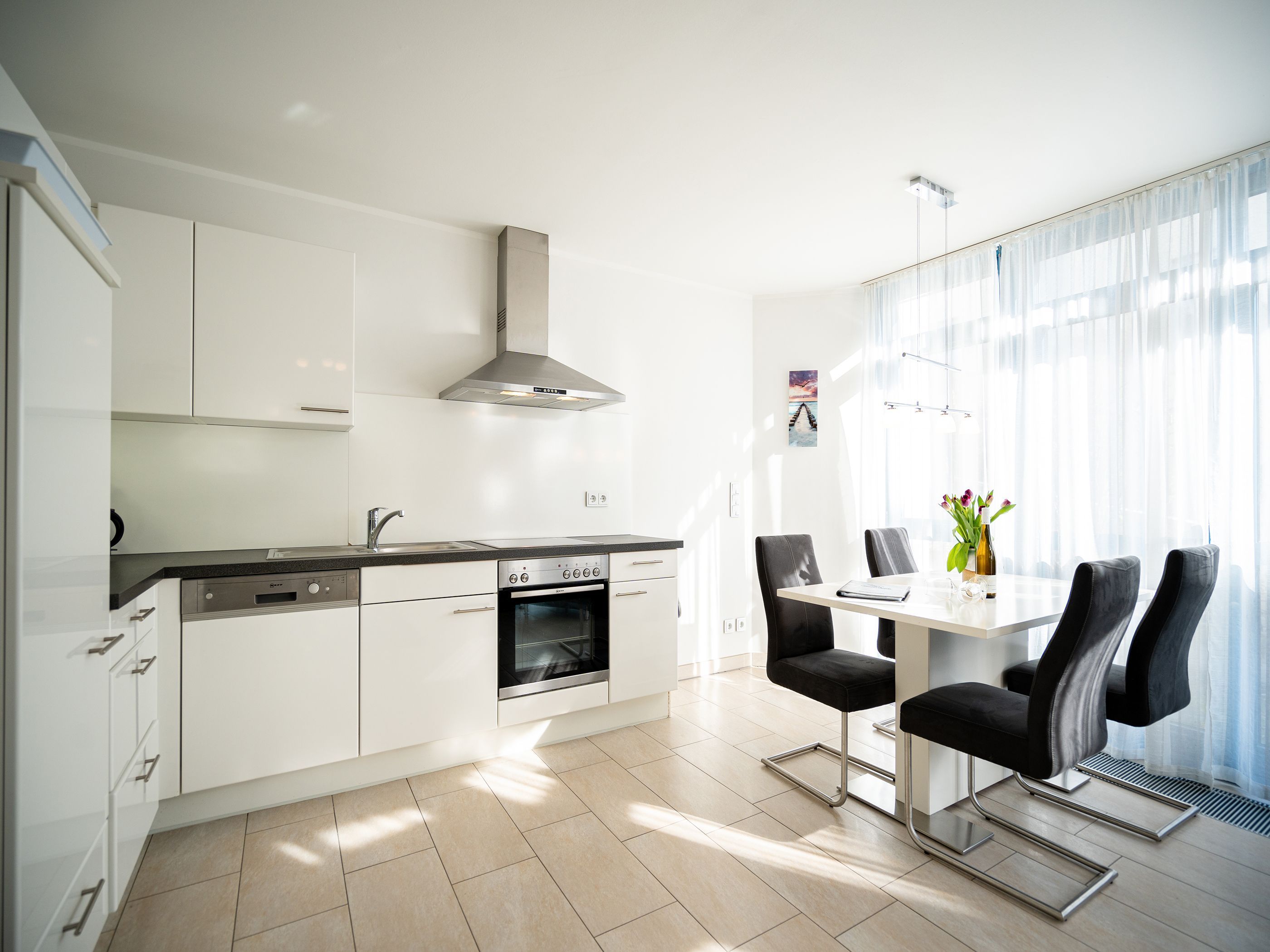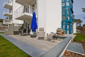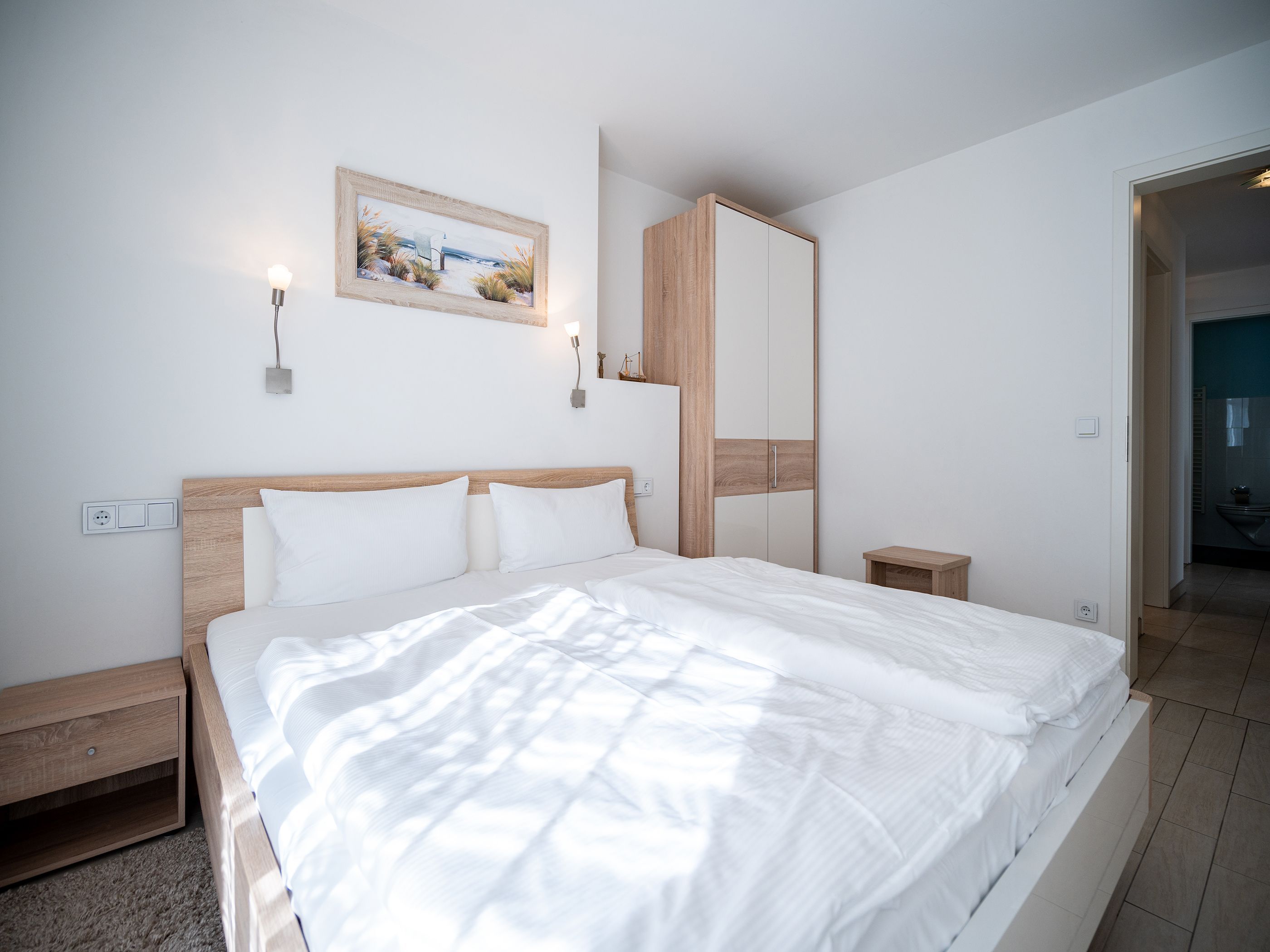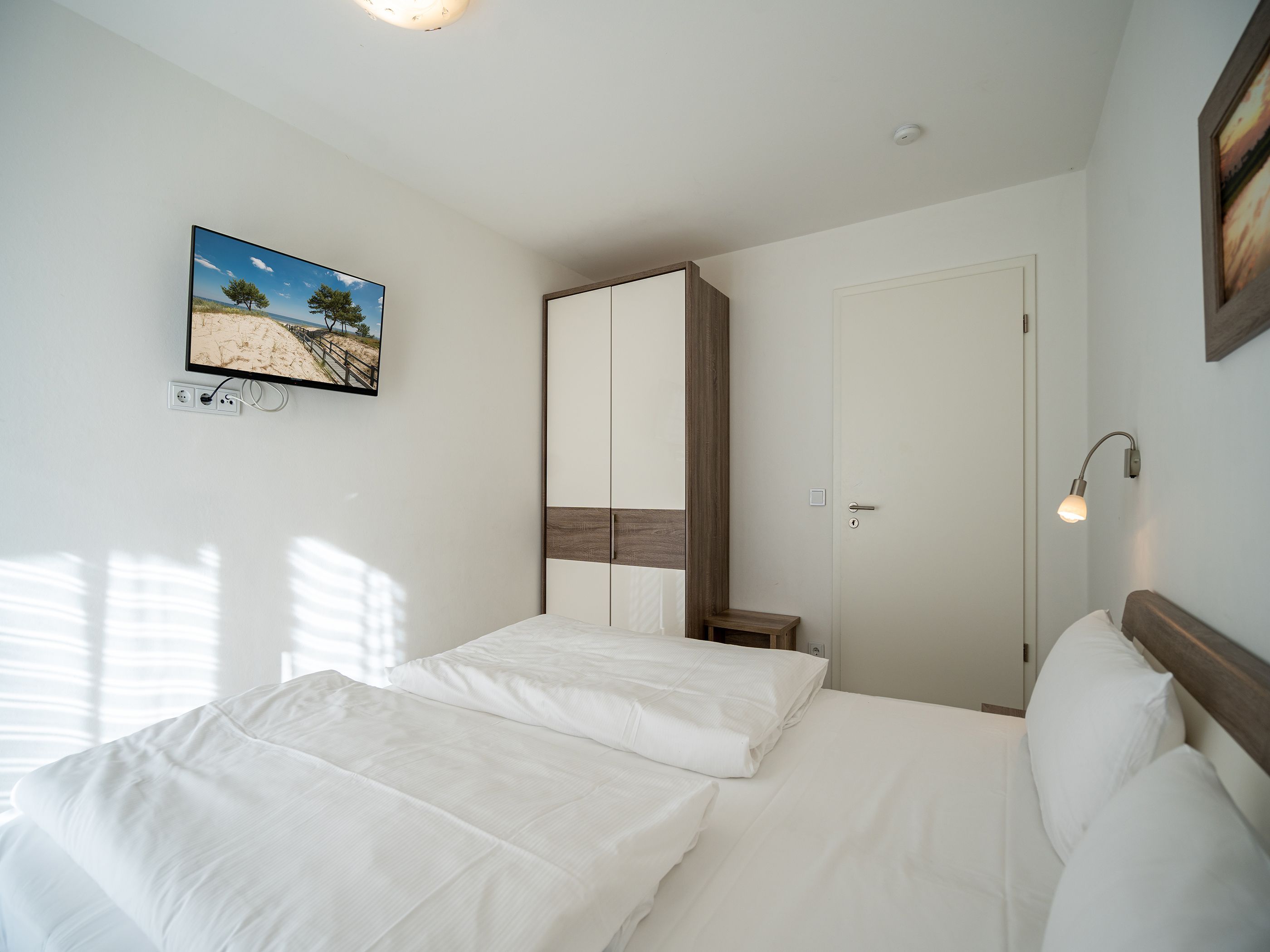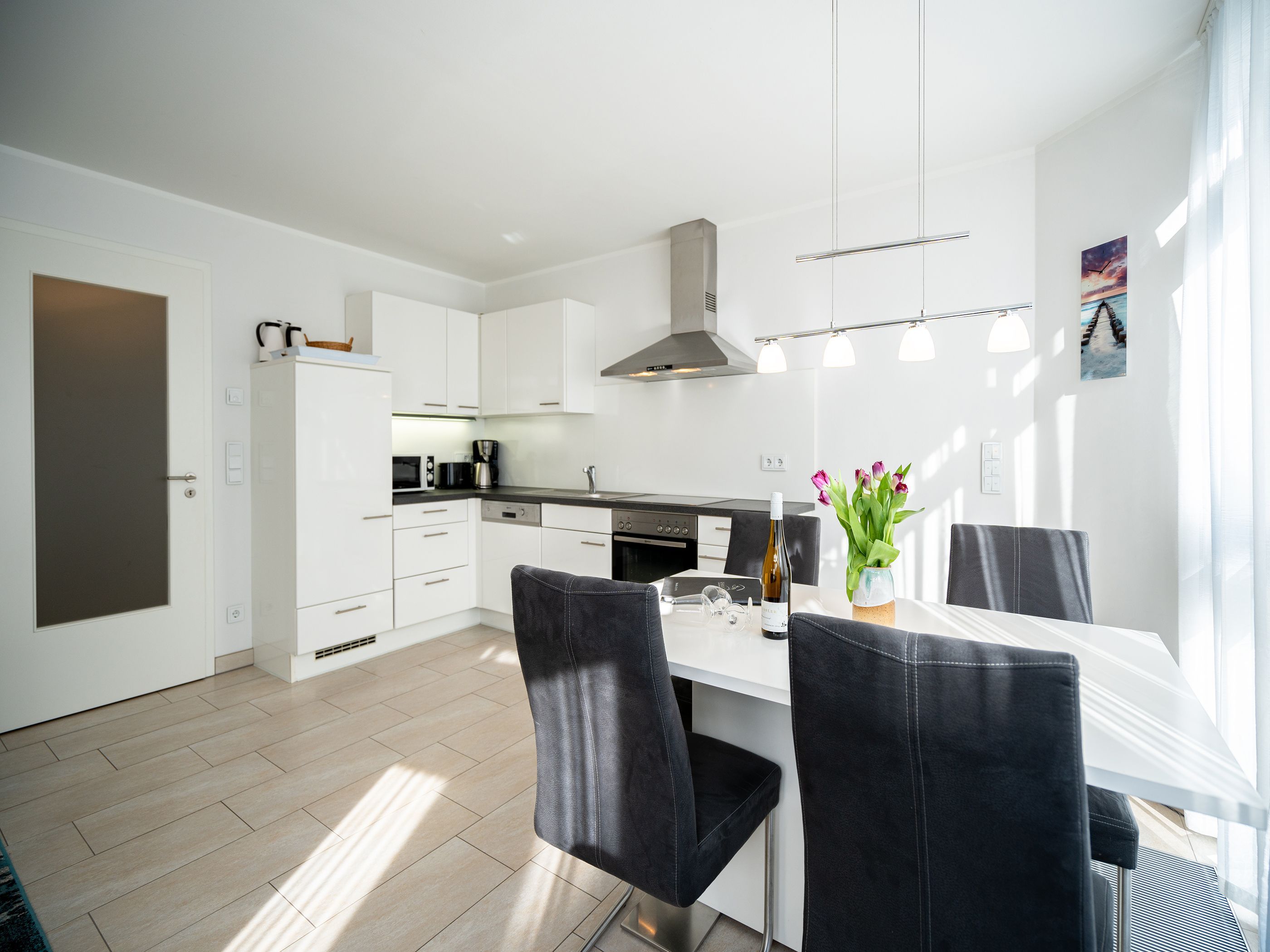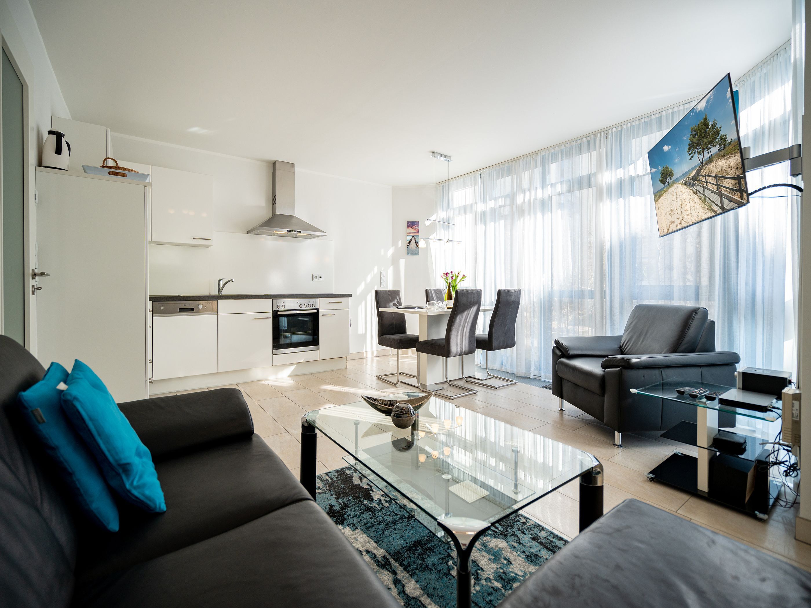 Willkommen in dieser geschmackvoll eingerichteten 3-Raum-Ferienwohnung im Erdgeschoss des Hauses Baltic. Die moderne Möblierung, die harmonisch aufeinander abgestimmten Farben und die liebevoll ausgewählten Dekorationen schaffen ein einladendes Ambiente auf 68 Quadratmetern. Mit zwei Schlafzimmern, die jeweils mit komfortablen Doppelbetten ausgestattet sind und eines davon zusätzlich über einen Smart-TV verfügt, ist diese Wohnung ideal für bis zu vier Personen. Der gemütliche Wohnbereich mit einer bequemen Ledersitzgruppe lädt zum Entspannen ein und grenzt an die offene, komplett ausgestattete Küche mit Essplatz. Ein weiterer Smart-TV sowie ein Blu-Ray-Player mit iPod-Dockingstation bieten Unterhaltungsmöglichkeiten für gemütliche Abende. Das moderne Bad mit Echtglasdusche sorgt für ein angenehmes Frischegefühl, und ein zusätzliches Gäste-WC bietet zusätzlichen Komfort. Wenn Sie keine Lust auf den Strand haben, können Sie die Sonne auf einer der beiden großzügigen Terrassen genießen – eine nach Süden und eine nach Osten ausgerichtet. Bequeme Gartenmöbel laden hier zum Verweilen ein. Für Ihren Komfort sind die Betten bei Ihrer Anreise bereits bezogen. Alle Räume mit Fenstern, also die beiden Schlafzimmer und das Wohnzimmer, sind mit elektronischen Außenrollläden ausgestattet. Ein eigener PKW-Stellplatz (Nr. 11) befindet sich direkt am Haus und das kostenfreie WLAN im gesamten Haus sorgt dafür, dass Sie immer online bleiben können. Zudem steht Ihnen eine Waschmaschine im Abstellraum zur Verfügung. Freuen Sie sich auf einen unbeschwerten und komfortablen Aufenthalt in unserer Ferienwohnung im Haus Baltic.