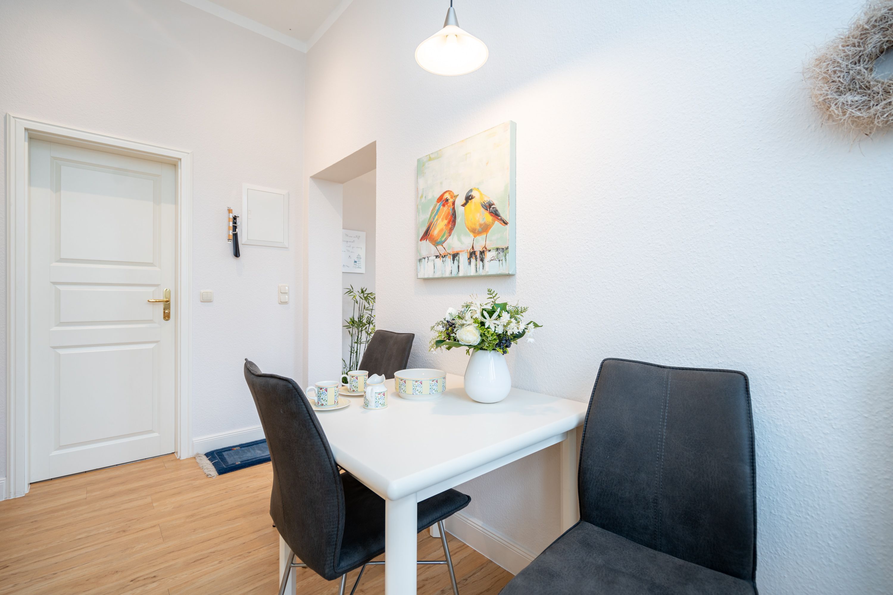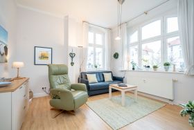 Die stilvoll eingerichtete Ferienwohnung im Hochparterre der Villa Belvedere gestaltet Ihren Urlaub vom Moment Ihrer Ankunft komfortabel und erholsam zugleich. Es verfügt über einen Wohnbereich, eine komplett ausgestattete separate Küche, ein Schlafzimmer mit Doppelbett und ein Bad mit Dusche ( für max. 2 Personen sowie 1 Kleinkind bis 3 Jahre im Kinderreisebett & 1 Kind bis 15 Jahre). Ein kostenloser Stellplatz befindet sich direkt an der Villa. Auf Wunsch stellen wir für unsere kleinen Gäste ein Kinderreisebett (ohne zusätzliche Matratze & Bettzeug) und einen Kinderhochstuhl ( gegen einen Aufpreis) zur Verfügung. Für Ihren Komfort sind die Betten bei der Anreise bezogen und Handtücher liegen bereit (Erstausstattung).