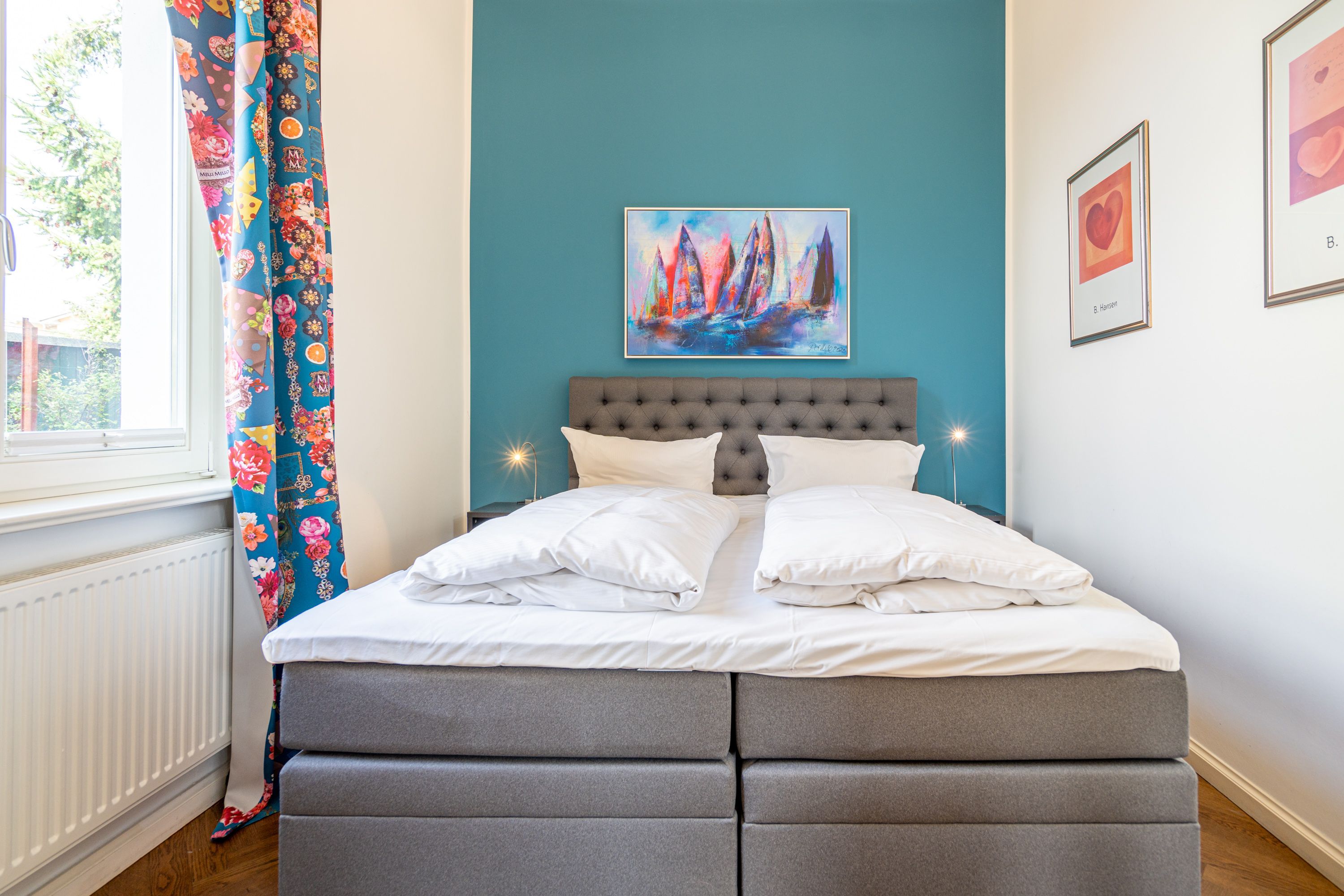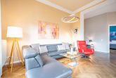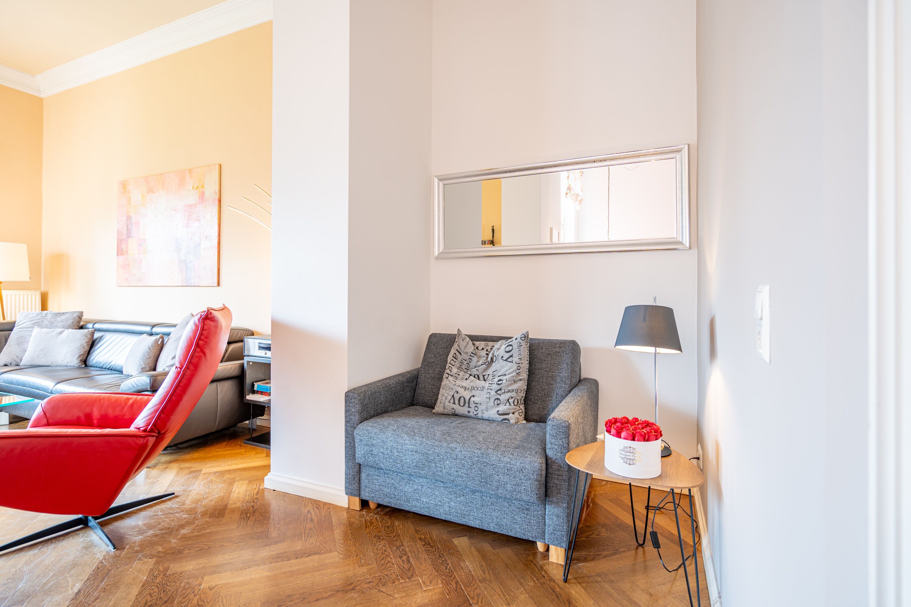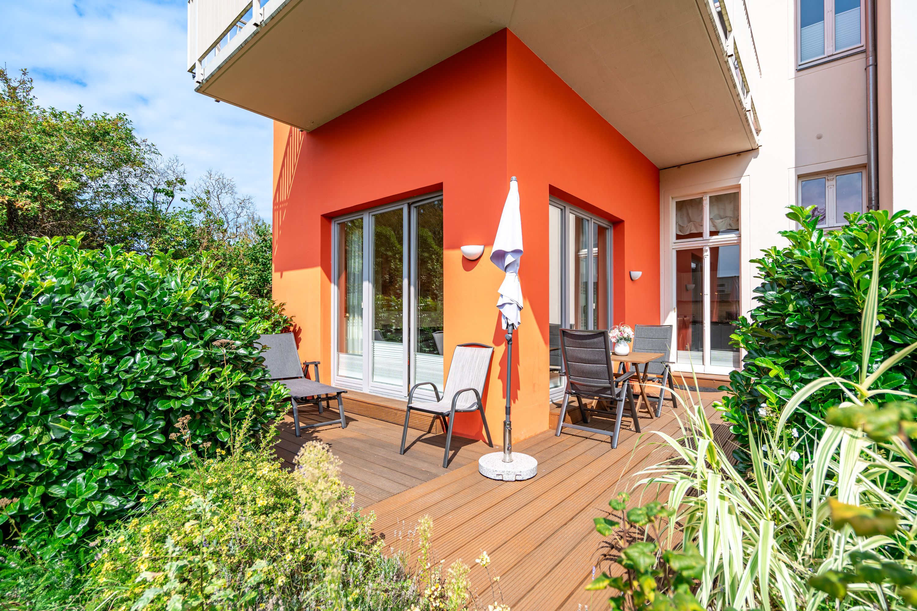 Ihre Ferienwohnung 3 (57qm), im Parterre der Villa, verwöhnt Sie mit moderner Möblierung und farblich gekonnt kombinierten Farben und Stoffen. Helle Räume, ein aufwendig sanierter Parkettboden und die geschmackvollen Dekorationen lassen keine Wünsche offen. Die offene Wohnküche, das Wohnzimmer mit großzügiger Couch, Schlafsessel und das Schlafzimmer mit Doppelbett (1,80m x 2,00m) bieten Platz für 2 bis 3 Personen & Kleinkind (bis 2 Jahre). Auf der Terrasse, die zur Südseite ausgerichtet ist, genießen Sie die Nachmittagssonne. Für kleine Gäste stellen wir gern ein Kinderreisebett und einen Hochstuhl zur Verfügung. Für Ihren Komfort sind bei Ihrer Anreise die Betten liebevoll bezogen, auch der erste Satz Handtücher liegt für Sie bereit. Ein Pkw-Stellplatz steht am Haus, unter dem Carport, zur Verfügung.