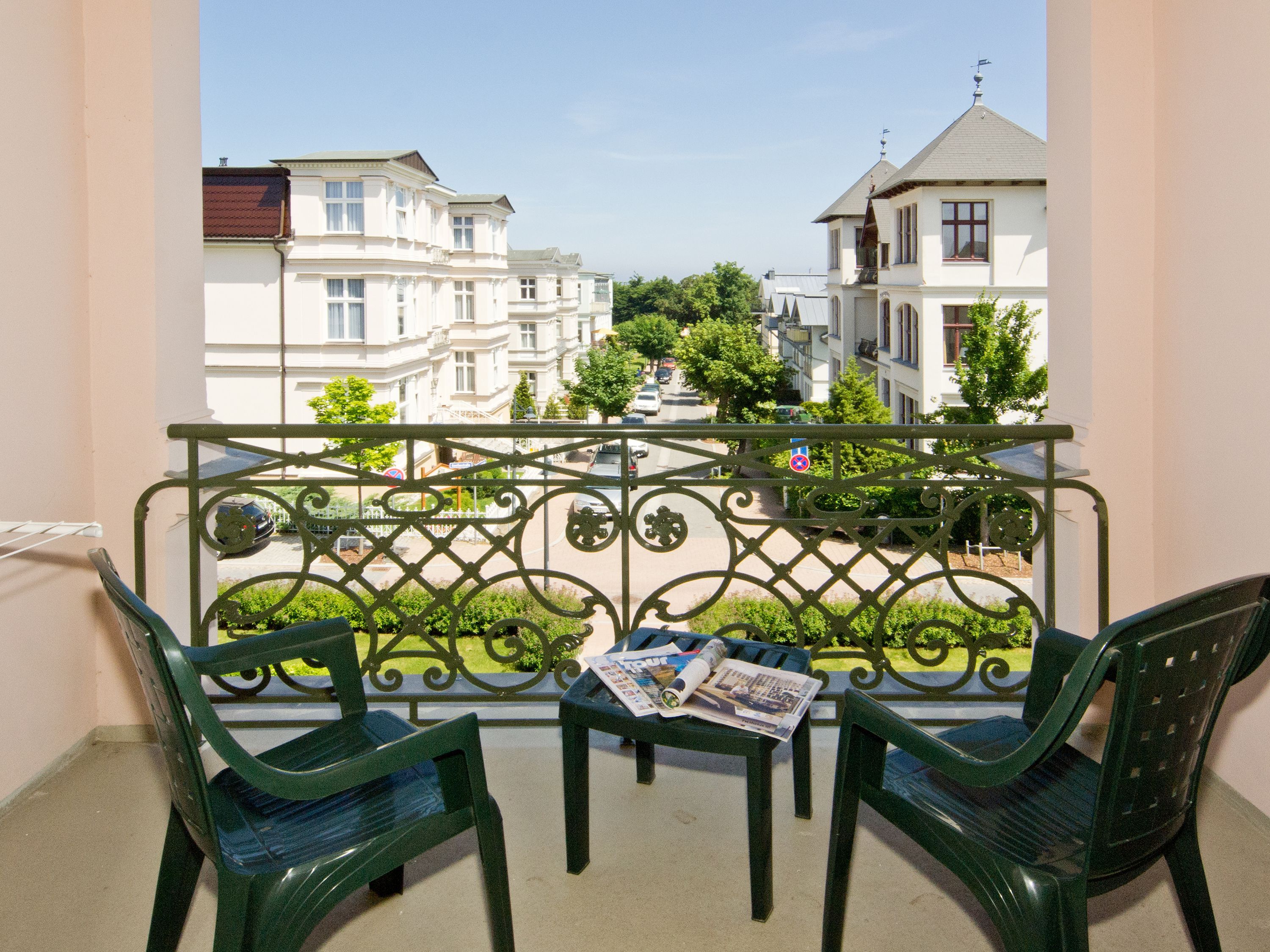Mit diesem Domizil entscheiden Sie sich für eine exklusive Möglichkeit, Ihren Urlaub in den Kaiserbädern zu verbringen. Die 1898, im wilhelminischen Baustil errichtete Villa, präsentiert Ihnen seit Januar 2005 hochherrschaftliches Wohnen in ruhiger Lage. Großzügige Räumlichkeiten, historische Veranden und Balkone sorgen für rundherum gelungene Urlaubstage. Der große Saunabereich (kostenfrei) im Untergeschoss der Villa bietet Ihnen an kälteren Tagen eine angenehme Abwechslung. Für jede Wohnung steht ein PKW-Stellplatz am Haus zur Verfügung (größtenteils überdacht), für Fahrräder gibt es teilweise separate Abstellräume (abschließbar). Waschmaschine und Trockner (im Untergeschoss) im Haus sind gegen eine Gebühr nutzbar. Das WLAN-Netz steht kostenfrei zur Verfügung.