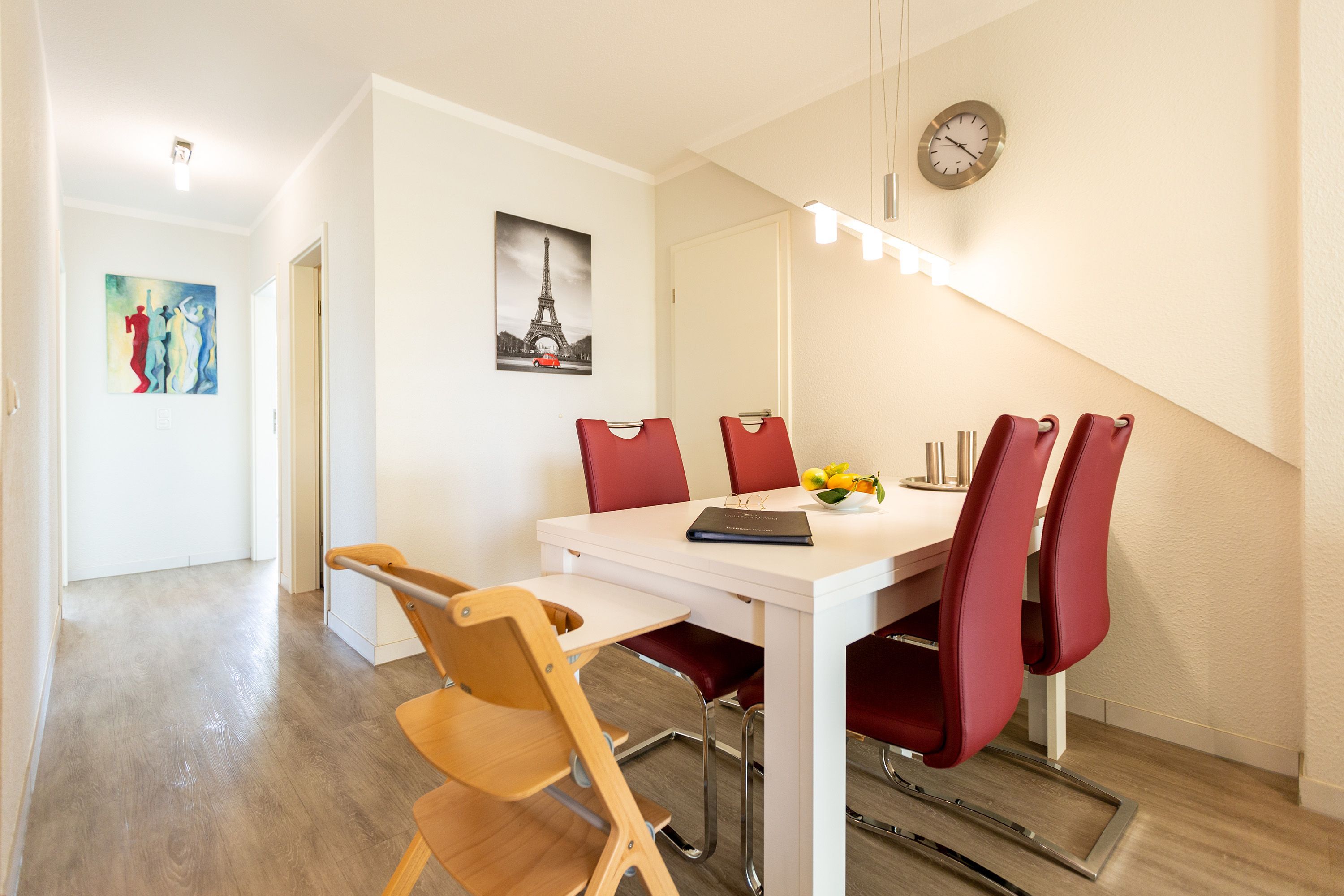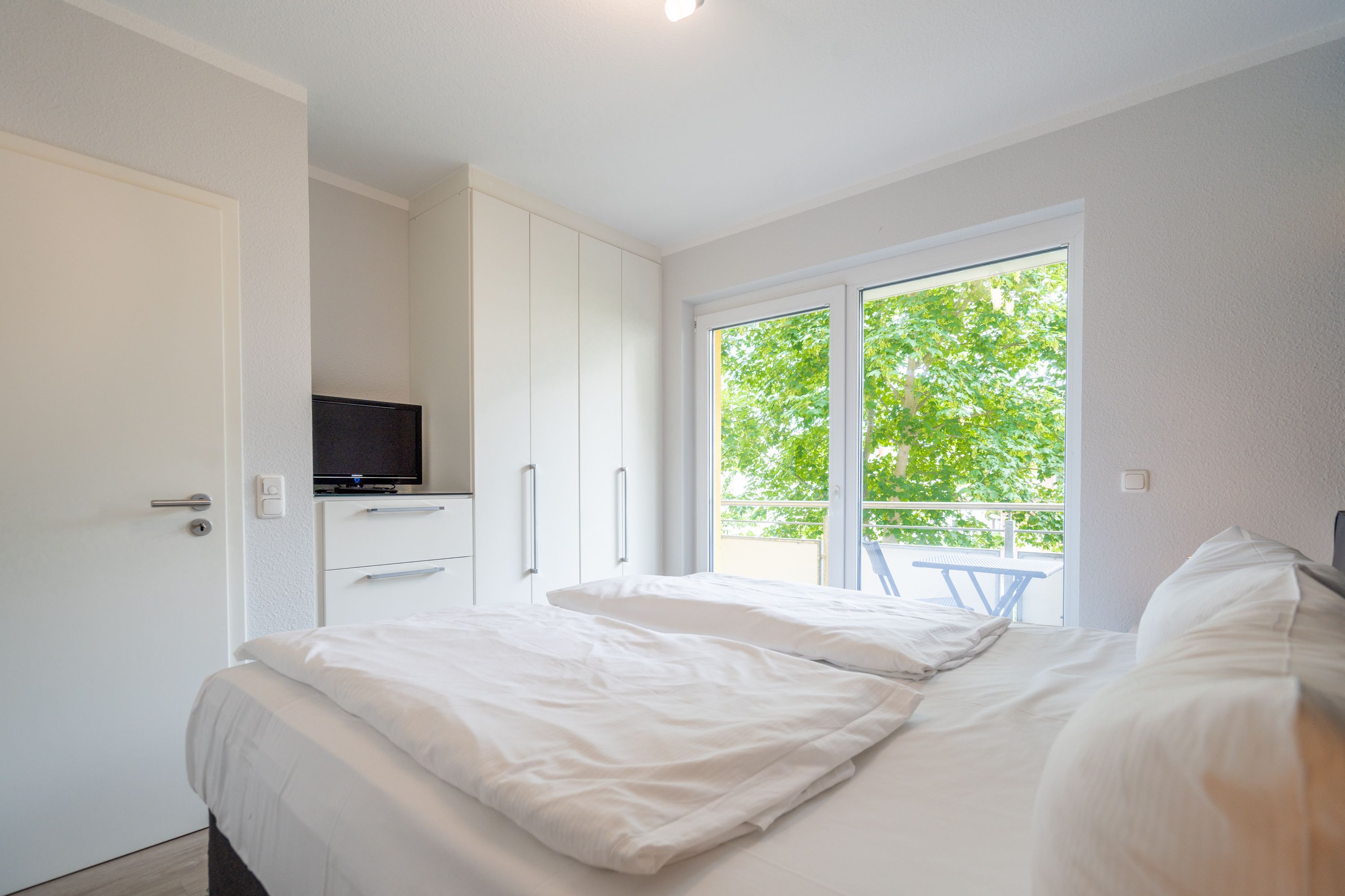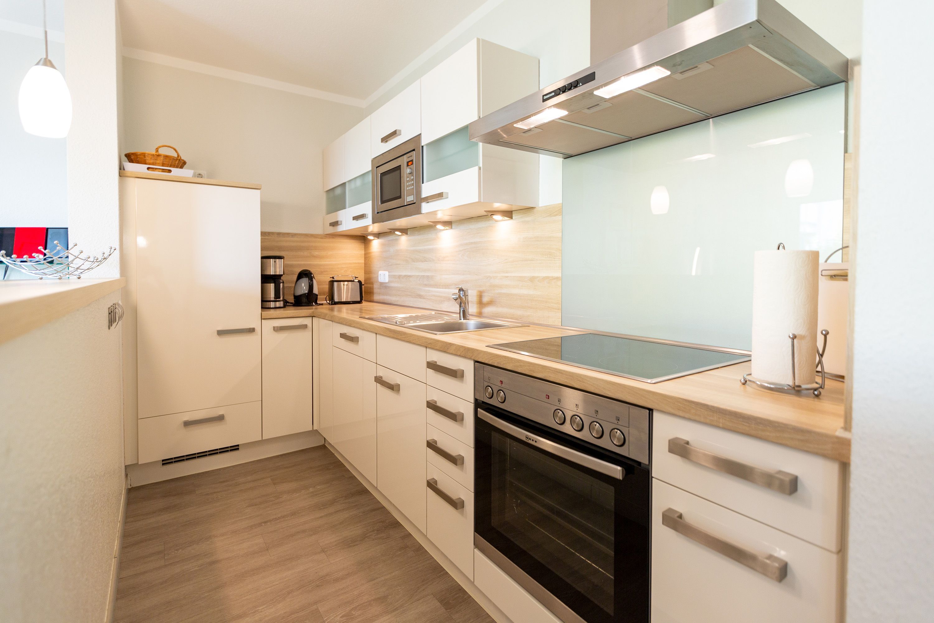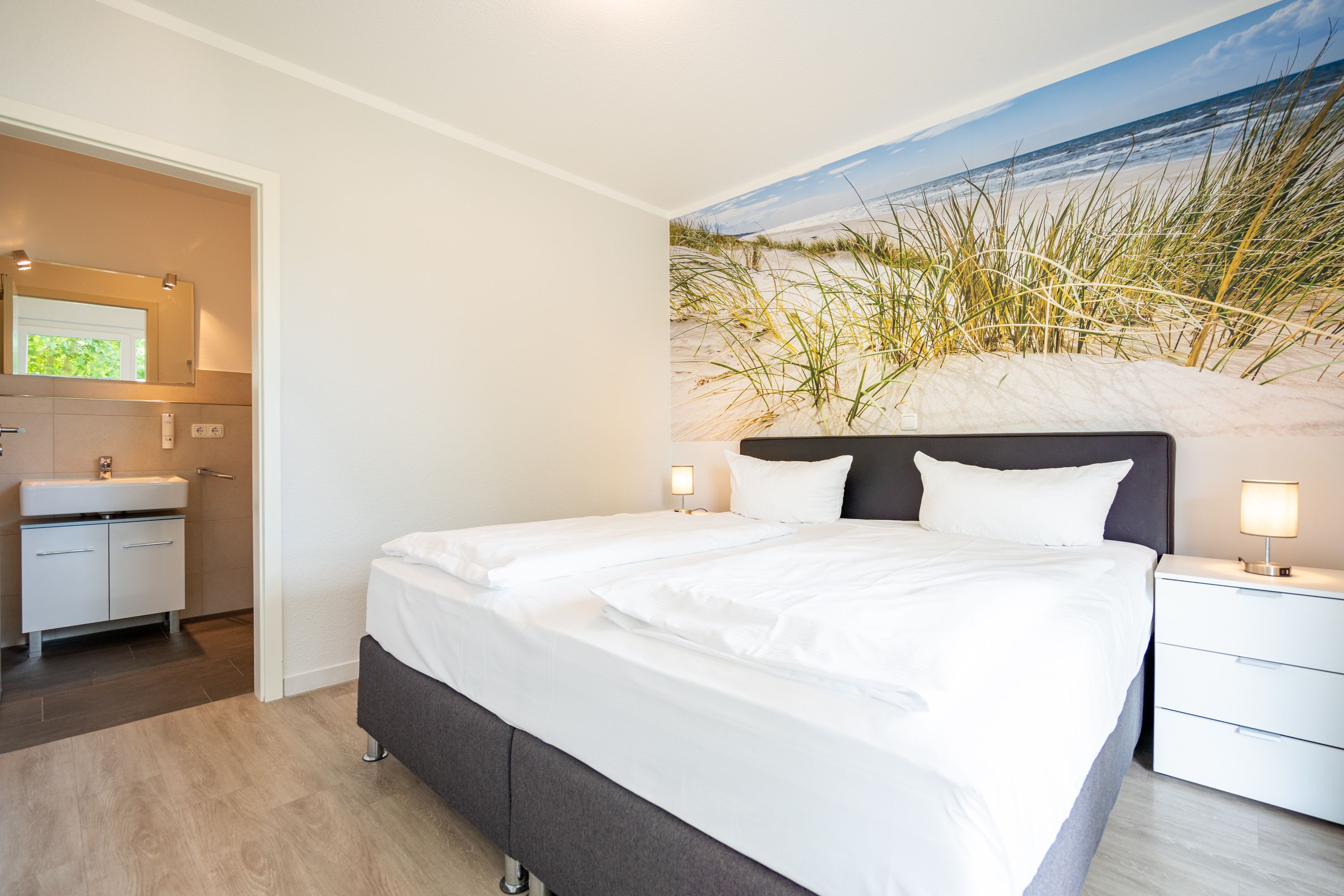 Ein moderner Wohn-Ess-Bereich empfängt den Urlaubsfreudigen in diesem schönen Domizil. Die elegante und stilvolle Einrichtung sorgt für eine gemütliche Atmosphäre. Eine schöne Ledersitzgruppe aus Sofa und Sessel ist ein echter Farbtupfer und lädt zum ausgiebigen Relaxen ein. Die Wohnung im Erdgeschoss des Domizils am Hang bietet auf 67 Quadratmetern viel Platz zum Urlauben. Bis zu vier Personen und ein Kleinkind (im Kinderreisebett) werden dieses kleine Fleckchen Usedom gar nicht wieder verlassen wollen. Die großzügige Südterrasse, die vom Wohnzimmer aus zugängig ist, mit Sonnenliegen und Esstisch ausgestattet, ist das Highlight dieses Appartements. Hier können Sie Sonne satt tanken. Die mit hochwertigen Markengeräten voll ausgestattete Küche ist zum Wohnraum hin offen, aber mit einem stylischen Tresen mit hohen Hockern von diesem abgegrenzt. Am schönen und großen Esstisch können Sie sämtliche Mahlzeiten mit viel Genuss zu sich nehmen. Zwei Schlafzimmer hat die Wohnung Nummer 2. In beiden wartet ein komfortables Boxspringdoppelbett (1,80 m x 2,00 m) nur darauf, Ihnen erholsame Träume zu schenken. Beide Zimmer haben einen Flat-TV mit DVD-Player und Zugang zu einem eigenen, kleinen Balkon, auf dem Sie schon morgens die Sonne genießen können. Die Schränke bieten viel Ablagefläche für die Urlaubsgarderobe. Das Appartement verfügt außerdem über zwei Badezimmer mit ebenerdiger und geräumiger Dusche, Waschtisch und WC. Das Masterbad ist von einem der beiden Schlafzimmer aus zugängig. In beiden Bädern liegen Handtücher für Sie bereit. Zudem sind die Betten bei Anreise für Sie bezogen. Zu der Wohnung gehört ein Tiefgaragenstellplatz. Es gibt auch einen Fahrradabstellraum. Das WLAN-Netz ist kostenfrei nutzbar.