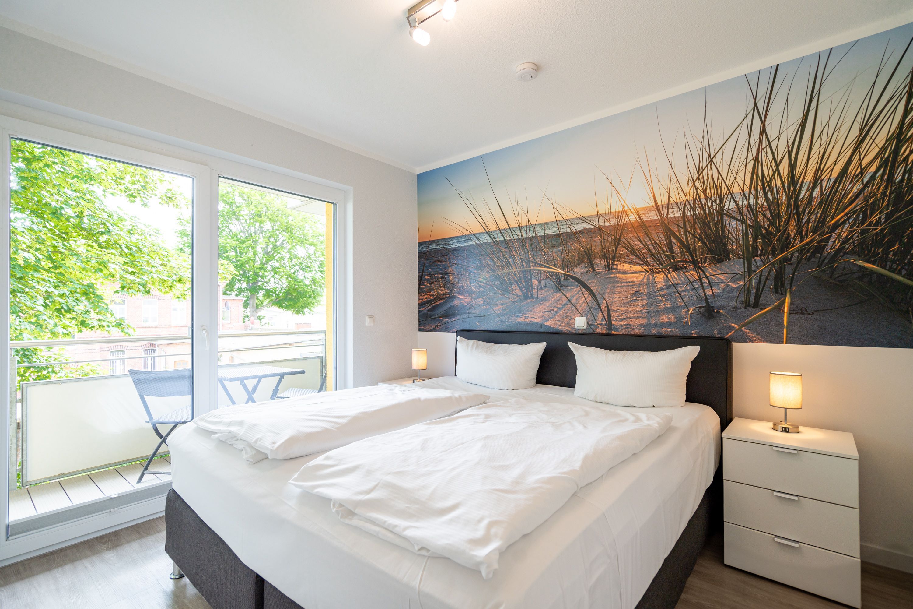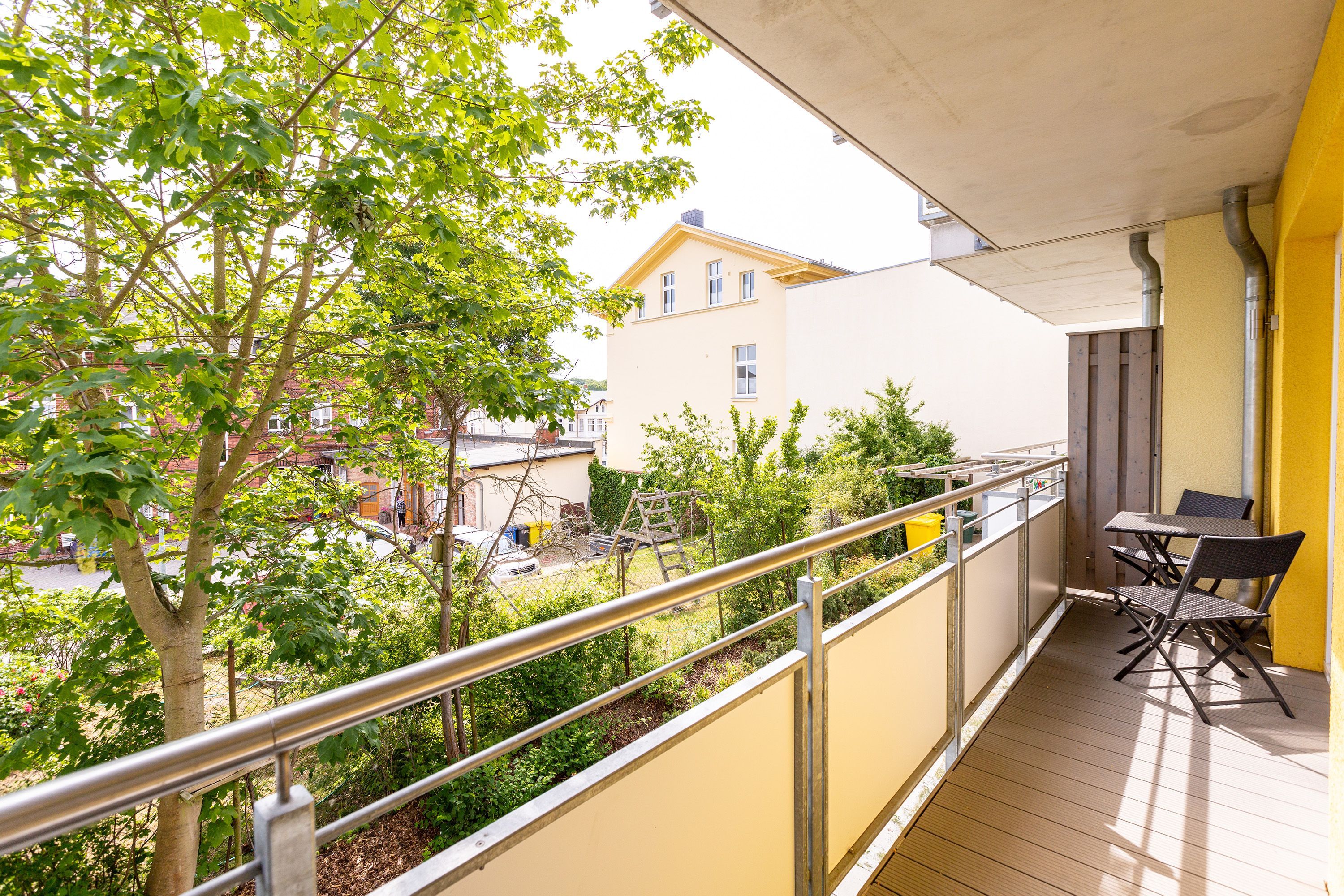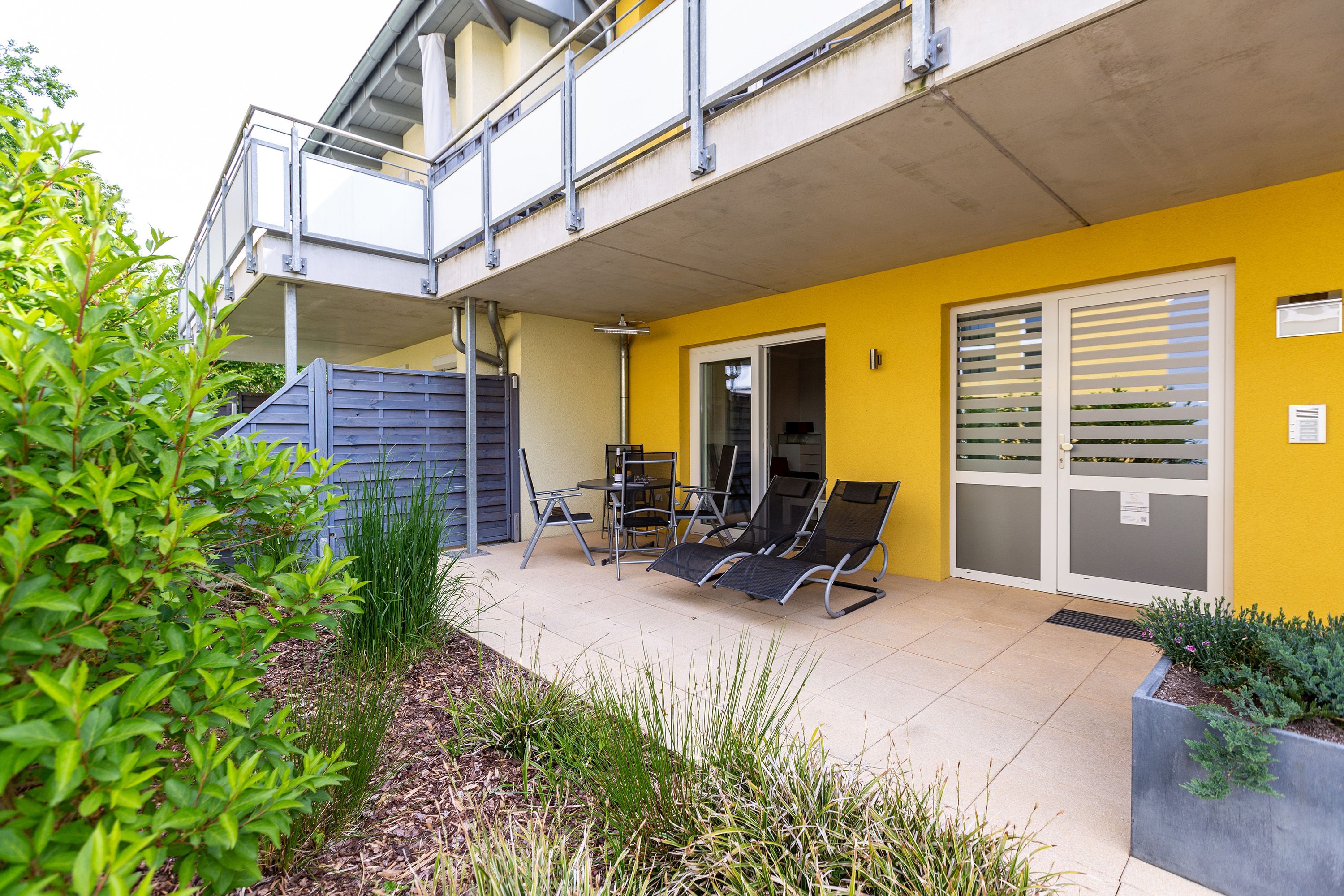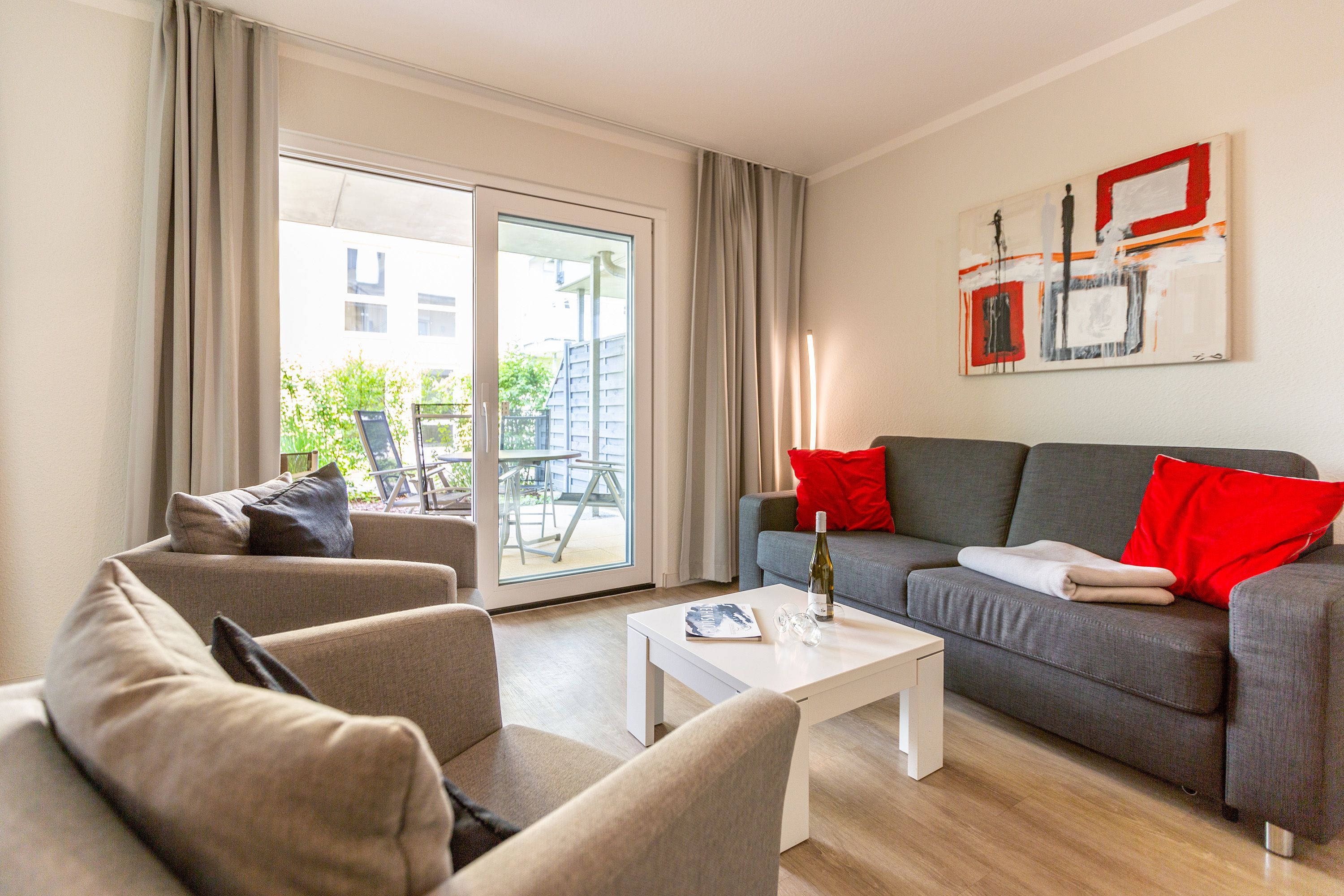 Etwas versteckt, aber dennoch zentral gelegen, empfängt Sie das Domizil am Hang, bestehend aus Haus A & Haus B. Es erwarten Sie individuell gestaltete 2- und 3-Raum-Appartements mit Balkonen, Terrassen und hochwertiger Ausstattung. Fu?r beide Ha?user steht eine Tiefgarage zur Verfu?gung, in der fu?r jede Wohnung ein PKW- Stellplatz vorhanden ist. Aus dieser Tiefgarage ist ein Zugang zum Aufzug und zu den Wohnungen des Hauses B möglich (unabha?ngig davon ob man mit oder ohne PKW anreist). Von dort haben Sie Zugang zum Haus A, welches über keinen Aufzug verfügt. Die oberen Appartements sind ausschließlich über Treppen zu erreichen. Bis zum Strand und zur Promenade sind es ca. 400m Fußweg. Im Haus sind die Waschmaschine und Trockner gegen Gebühr nutzbar. Außerdem steht für jede Wohnung ein Briefkasten am Haus zur Verfügung.