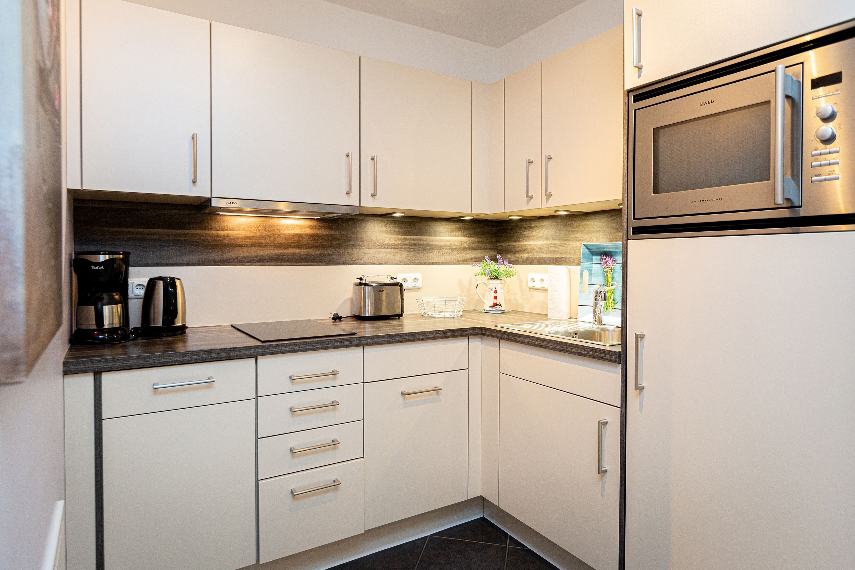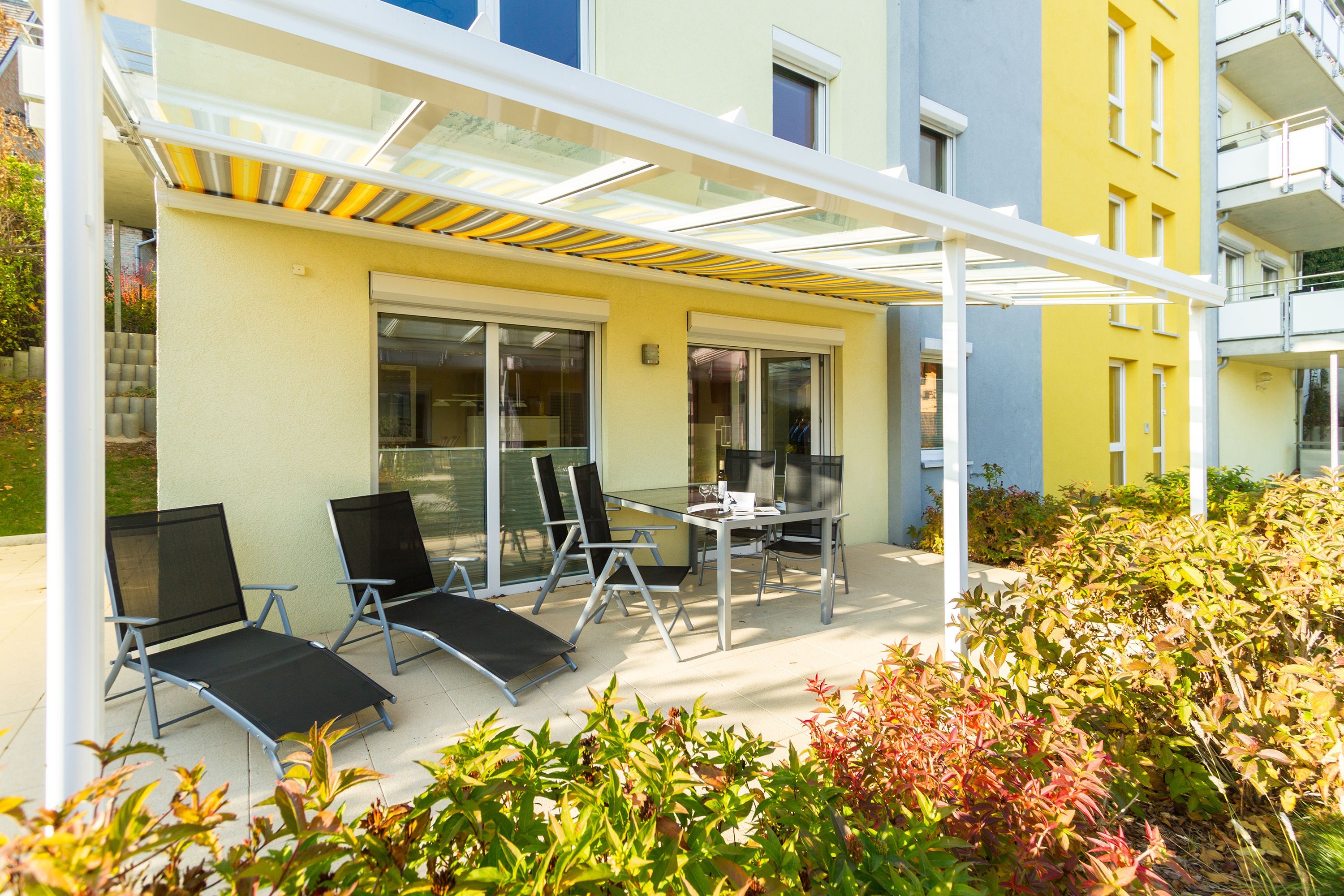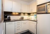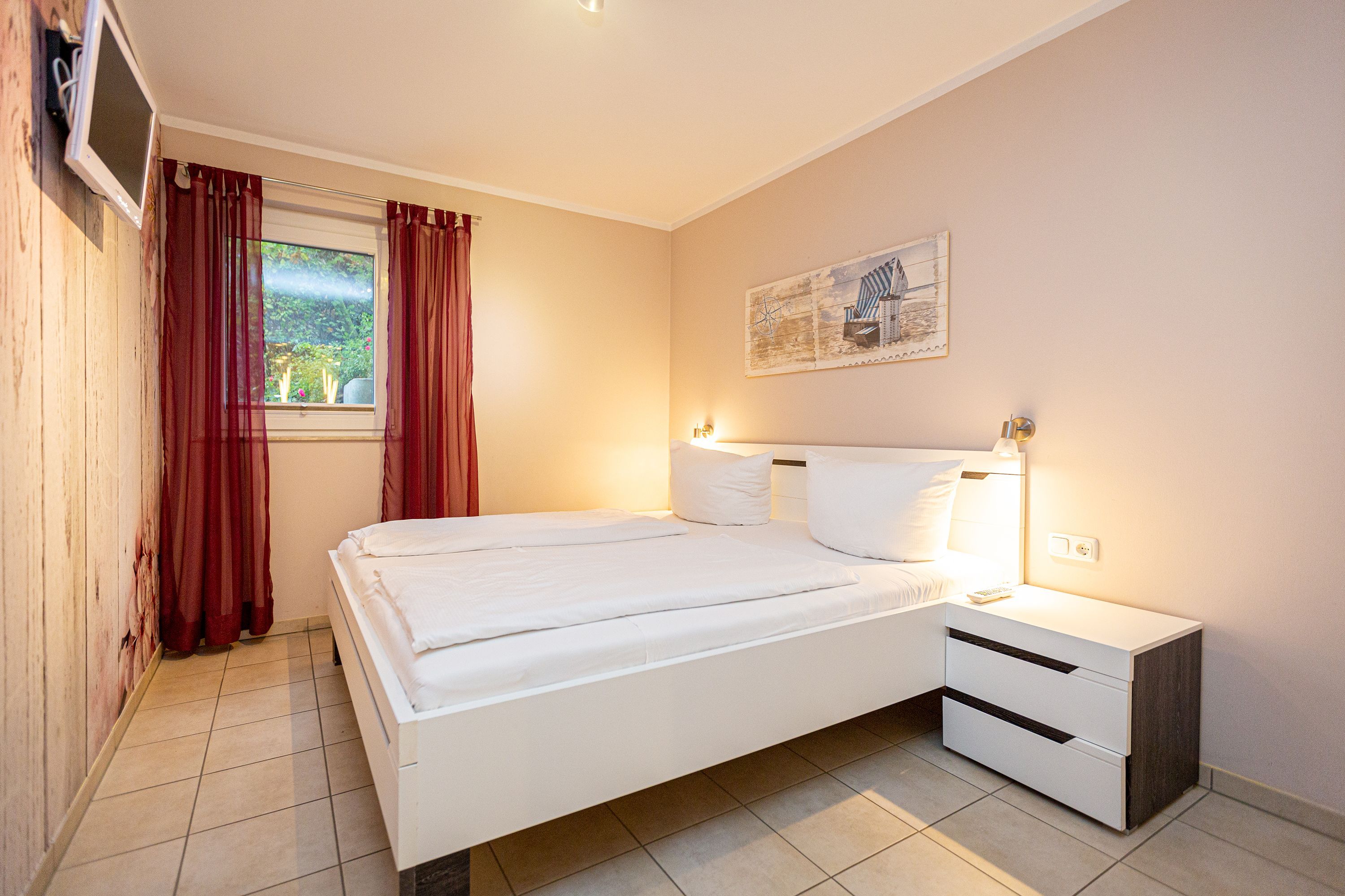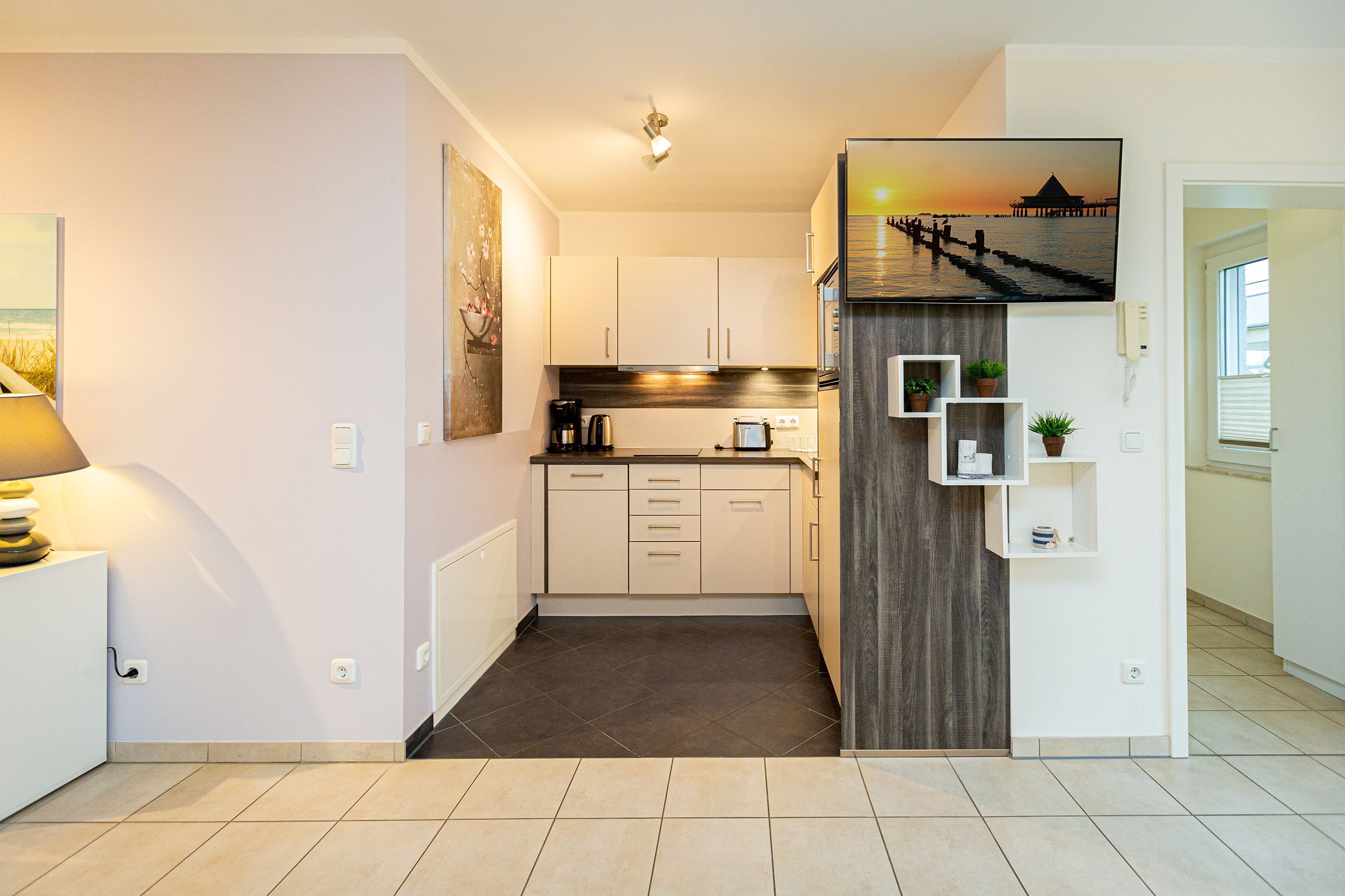 Modern und mit allem erdenklichen Komfort ausgestattet, empfängt das Appartement 7 Auszeitler, die sich im Herzen von Heringsdorf einen erholsamen Urlaub gönnen wollen. Auf 70 Quadratmetern haben Sie viel Platz zum Aus- und Entspannen. Bis zu vier Personen und ein Kleinkind kann das Drei-Zimmer-Appartement im Erdgeschoss beherbergen. Machen Sie es sich gemütlich im großen Wohn-Esszimmer. Ob am Esstisch oder auf den Gartenmöbeln auf der Terrasse mit Blick ins Grüne das Essen schmeckt im Urlaub ohnehin immer viel besser als daheim. Brennt die Sonne zu arg, schafft eine große Markise kühlend Abhilfe. Die Sonnenliegen laden zum Mittagsschläfchen ein. Oder schalten Sie auf dem Sofa im Wohnzimmer bei Highend-Unterhaltung via Flat-TV entspannt ab. Die offene Küchenzeile ist mit einer Einbau-Mikrowelle mit Grillfunktion und einem 2-Platten-Ceranfeld ausgestattet. Gemeinsame Kochaktionen werden Dank der hochwertigen Geräte zum Kinderspiel. Kleine Erholungsoasen sind die beiden Schlafzimmer. Die Doppelbetten sind bei Anreise bereits bezogen. Jedes der Zimmer verfügt ebenfalls über einen eigenen Flat-TV und einen geräumigen Schrank. Das moderne Badezimmer hat Dusche, Waschtisch und WC. Außerdem gibt es ein separates Gäste-WC. Handtücher liegen für Sie bereit. Auf Wunsch kann für die kleinen Gäste ein Kinderreisebett (ohne zusätzliche Matratze & Bettzeug) und ein Kinderhochstuhl (gegen einen Aufpreis) zur Verfügung gestellt werden.