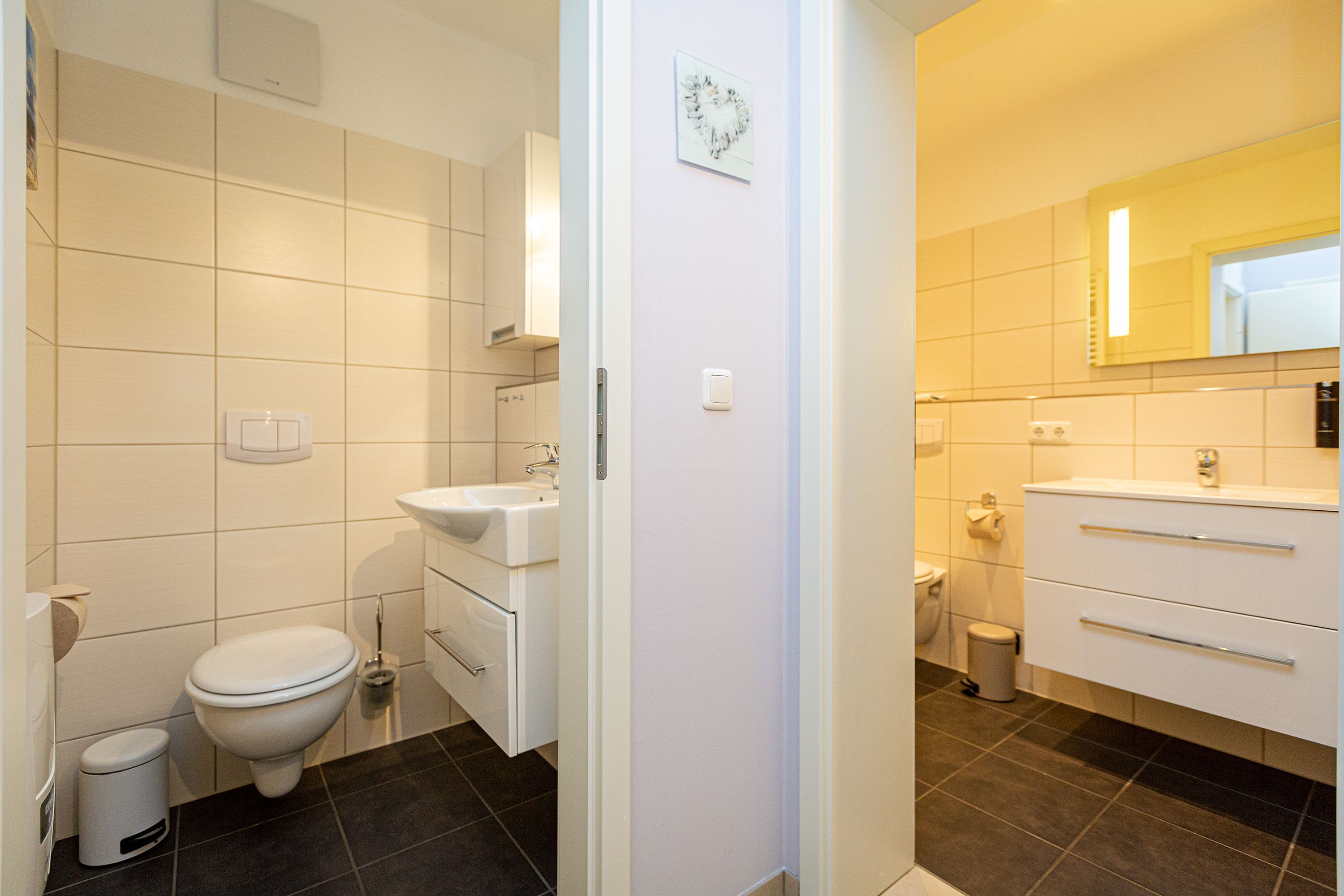 Etwas versteckt, aber dennoch zentral gelegen, empfängt Sie das Domizil am Hang, bestehend aus Haus A & Haus B. Es erwarten Sie individuell gestaltete 2- und 3-Raum-Appartements mit Balkonen, Terrassen und hochwertiger Ausstattung. Fu?r beide Ha?user steht eine Tiefgarage zur Verfu?gung, in der fu?r jede Wohnung ein PKW- Stellplatz vorhanden ist. Aus dieser Tiefgarage ist ein Zugang zum Aufzug und zu den Wohnungen des Hauses B möglich (unabha?ngig davon ob man mit oder ohne PKW anreist). Von dort haben Sie Zugang zum Haus A, welches über keinen Aufzug verfügt. Die oberen Appartements sind ausschließlich über Treppen zu erreichen. Bis zum Strand und zur Promenade sind es ca. 400m Fußweg. Im Haus sind die Waschmaschine und Trockner gegen Gebühr nutzbar. Außerdem steht für jede Wohnung ein Briefkasten am Haus zur Verfügung.