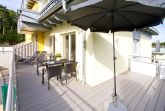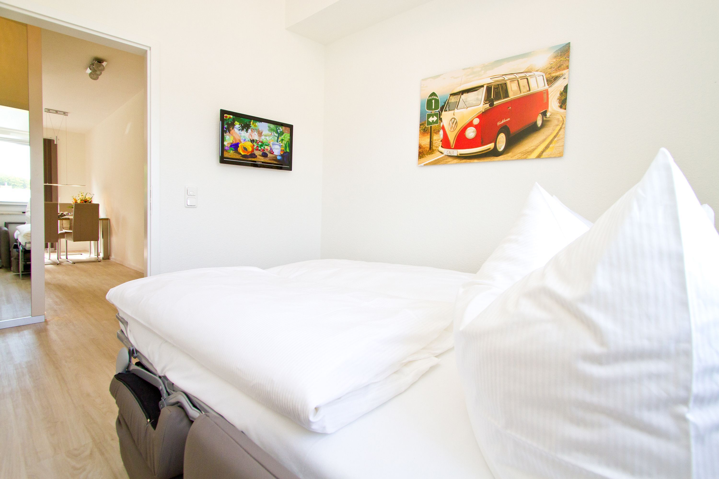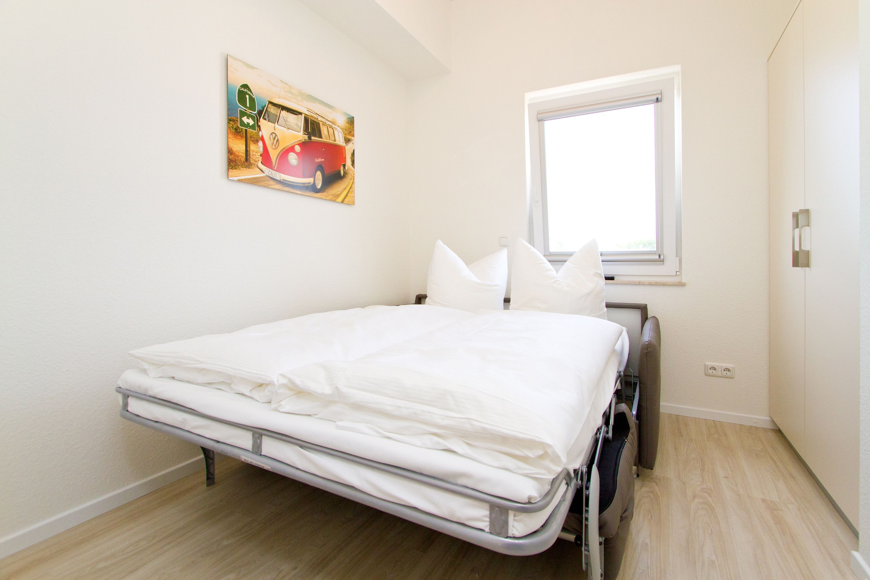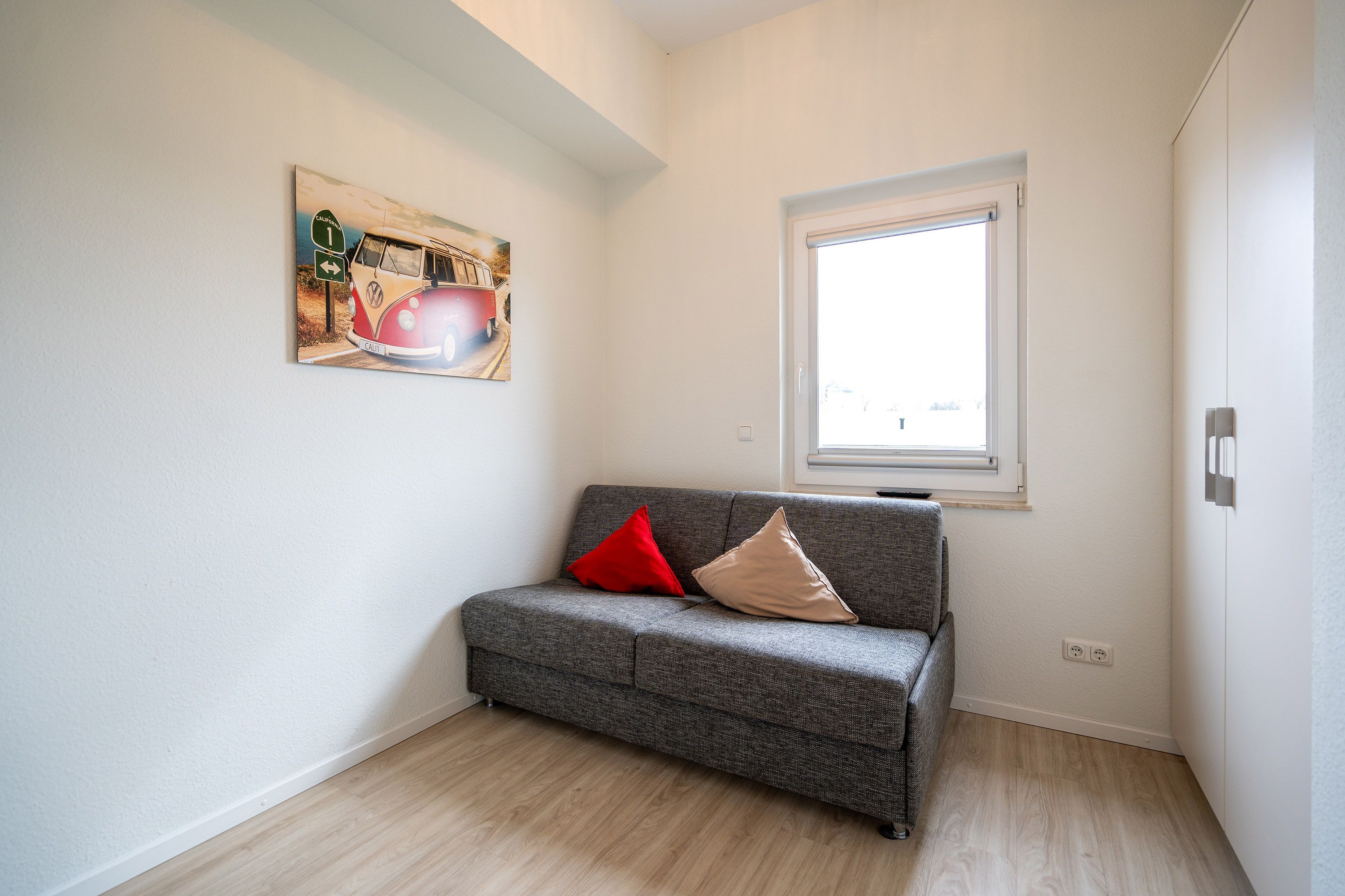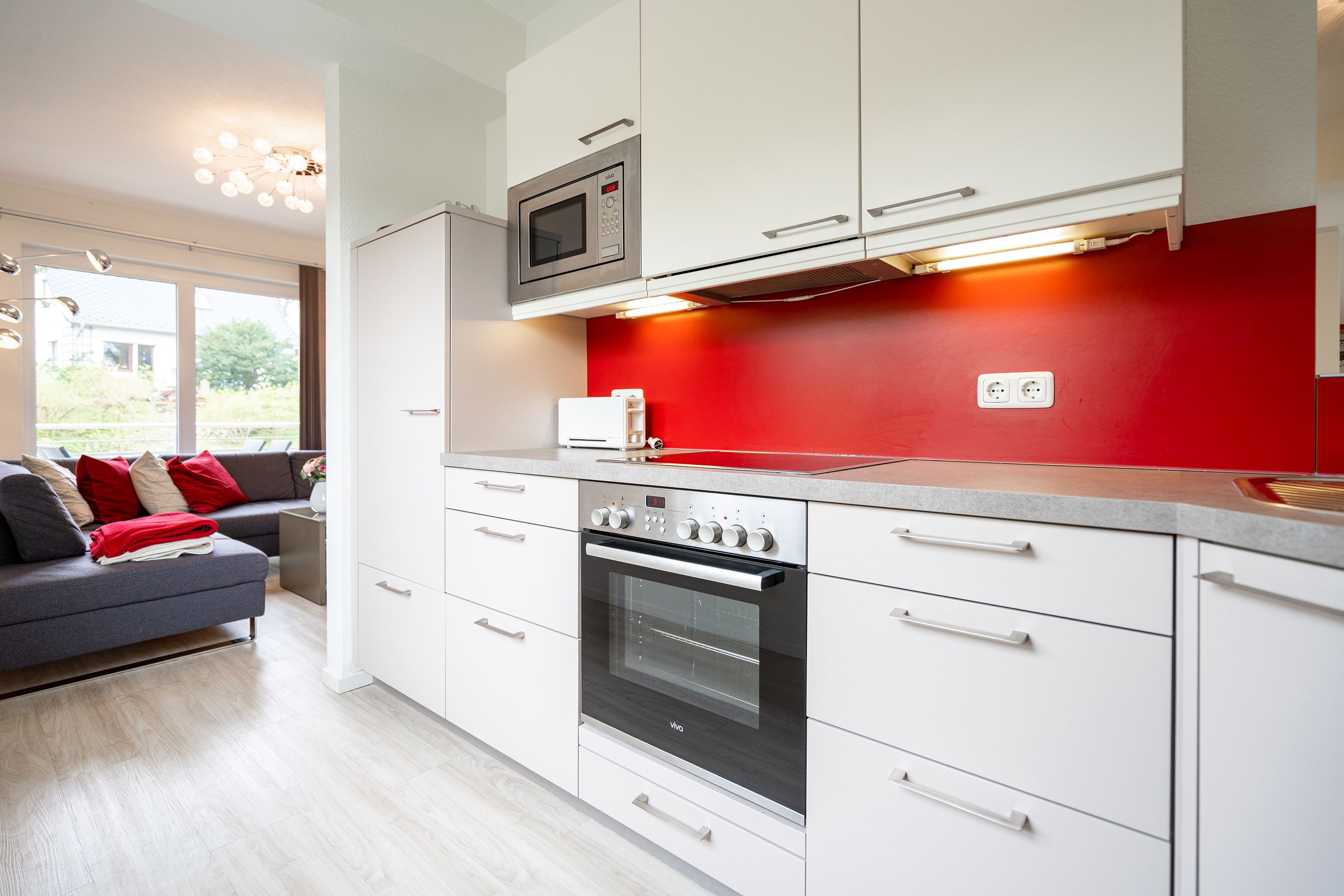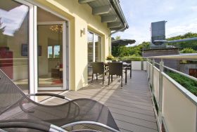 Sonne über Sonne lassen Sie in diesem Appartement auf alle möglichen Arten entspannen und neue Energie tanken. Das 61 Quadratmeter große Ferien-Appartement, zu dem Sie ganz bequem per Fahrstuhl gelangen können, ist für einen Urlaub an der Ostsee die ideale Ruhe-Oase. Dazu passt der Spruch Ihres Domizils ideal: Gönne dir einen Augenblick der Ruhe und achte auf das, was dir Freude macht. Bis zu drei Personen und ein Kleinkind (im kostenpflichtig dazu buchbaren Kinderreisebett) können es sich hier gut gehen lassen. Auf Wunsch stellen wir auch einen Kinderhochstuhl in die Wohnung. Das Urlaubsdomizil ist hell und modern eingerichtet. Frische Farben, Bilder und Accessoires sorgen für Akzente. Das Wohnzimmer ist großzügig geschnitten, bietet viel Platz zum Kuscheln auf dem Sofa vor dem flackernden Flammenspiel des Gas-Kamins oder dem großen Flat-TV. Genießen Sie darüber hinaus den großen Südbalkon oder essen Sie entspannt am schönen Esstisch. Die Küche ist offen und mit Geräten wie Herd, Kühlschrank, Spülmaschine, Mikrowelle, Toaster etc. voll ausgestattet. Und da man für ein gemeinsames Essen auch Geschirr braucht, ist dieses dort ebenfalls zu finden. Den großen Südbalkon (17 Quadratmeter groß) mit Strandkorb können Sie vom Wohnzimmer aus betreten. Ob beim Sonnenbaden auf den Liegen oder beim Frühstück im Freien die frische Ostseeluft erfrischt so oder so Körper und Seele. Das Appartement hat zwei Schlafzimmer. Eines verfügt über ein bequemes Boxspringdoppelbett, einen stummen Diener zum Aufhängen Ihrer Sachen, einen geräumigen Schrank und einen Flat TV. Im zweiten Schlafzimmer steht eine ausziehbare Schlafcouch (1,40 m x 2,00 m). Auch hier gibt es einen Fernseher und einen großen Schrank. Das Badezimmer verfügt über Dusche, Waschtisch und WC. Handtücher liegen für Sie bereit und die Betten sind bei Anreise bezogen. Das WLAN ist kostenfrei. Ein Pkw-Stellplatz ist in der Tiefgarage vorhanden.
