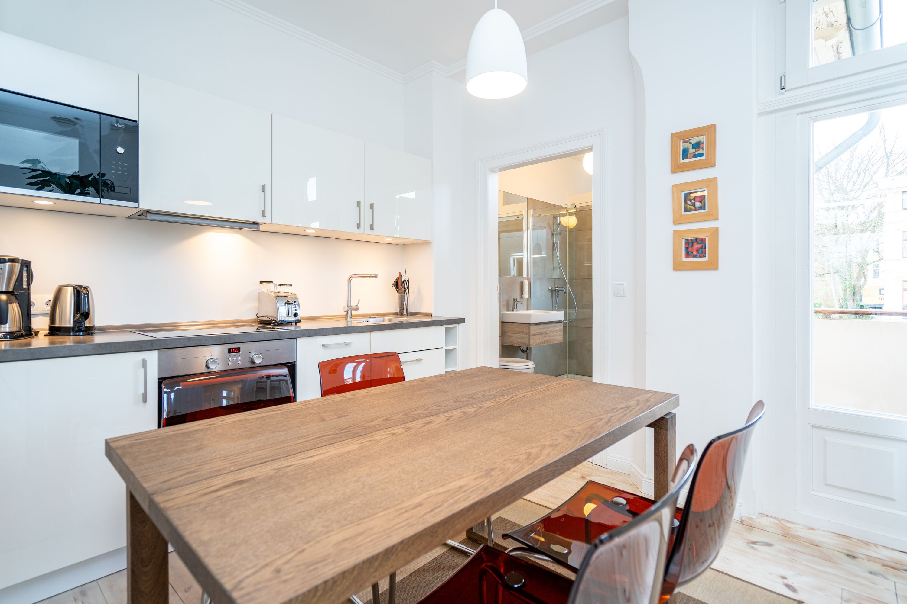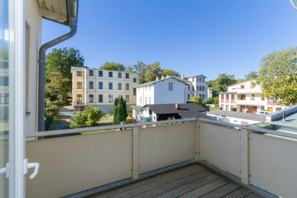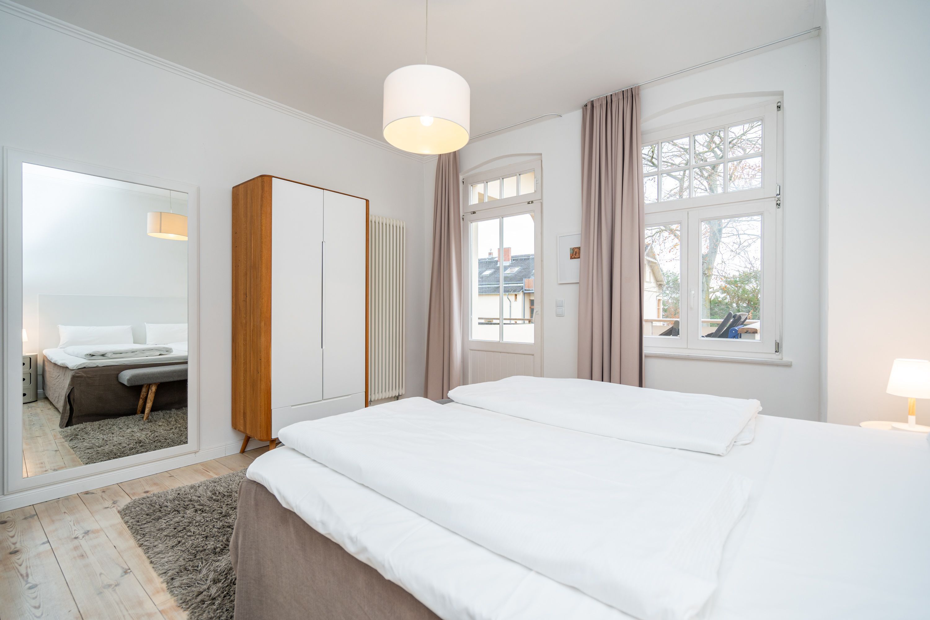 Moderner Lifestyle vom Feinsten: Erfrischend, pur, clean und entspannt macht das Interieur-Design dieses Ferienparadieses Freude und gibt ihm das gewisse Etwas. Hell und licht und mit viel Weiß lädt das Appartement 2 im Obergeschoss der Villa Diehl zum Ausspannen und Wohlfühlen ein. Bis zu 4 Personen haben in den großzügig geschnittenen 102 Quadratmetern dieser Wohnung jede Menge Platz. Ein wunderschöner Wohnbereich mit weiß gekälktem Echtholzdielenboden, flauschigem Hochflorteppich, einer stylischen Design-Sitzgruppe aus Sofa und Sesseln, dem gemütlichen Gas-Kamin und großem Flat-TV mit Blue-Ray-Player machen die Auszeit zu etwas Besonderem. Von hier aus geht es auf die sonnenüberflutete, offene Loggia mit Blick auf die begrünte Anlage hinaus. Lässt es sich schöner frühstücken als hier, wo die Ostsee sanft ins Ohr rauscht? Auch die beiden Schlafzimmer mit bequemen Doppelboxspringbetten und großen Schränken haben jeweils eigene Balkone. Die Küche ist mit hochwertigen Geräten voll ausgestattet. Nehmen Sie Platz am großen Esstisch und lassen Sie es sich schmecken. Highlight des geräumigen Badezimmers ist neben Waschtisch, WC und Echtglas-Dusche die kleine Infrarot-Sauna für zwei Personen. Hier wird es an kühlen Tagen und Abenden so richtig muschelig warm. Zur Wohnung gehört ein separates Gäste-WC. Damit Sie sich in Ihrem Urlaub wirklich um nichts kümmern müssen, liegen Handtücher für Sie bereit und die Betten sind bezogen. Sie haben im Appartement einen kostenfreien WLAN-Zugang. Auf dem Hof ist ein Pkw-Stellplatz für Sie reserviert.