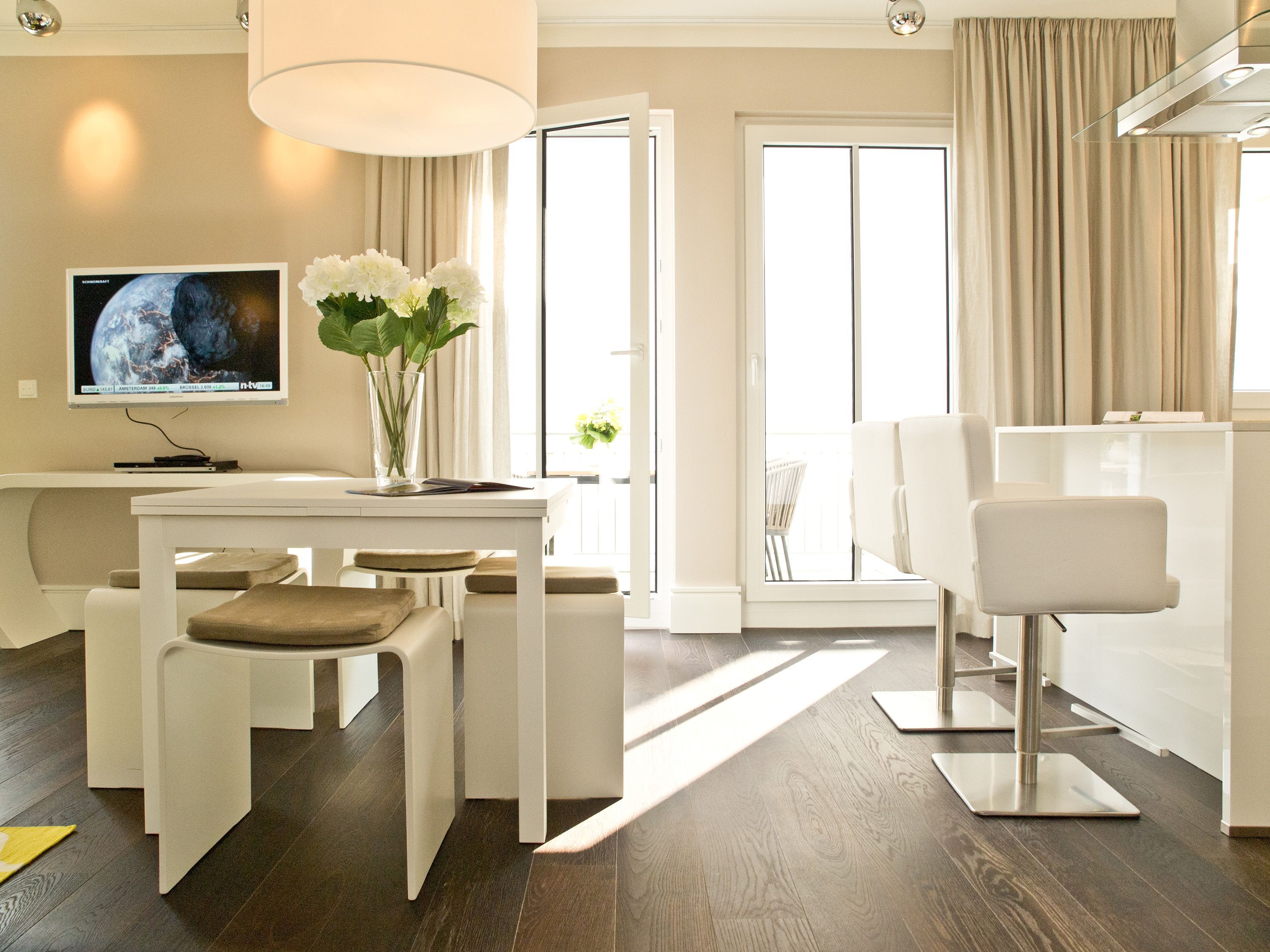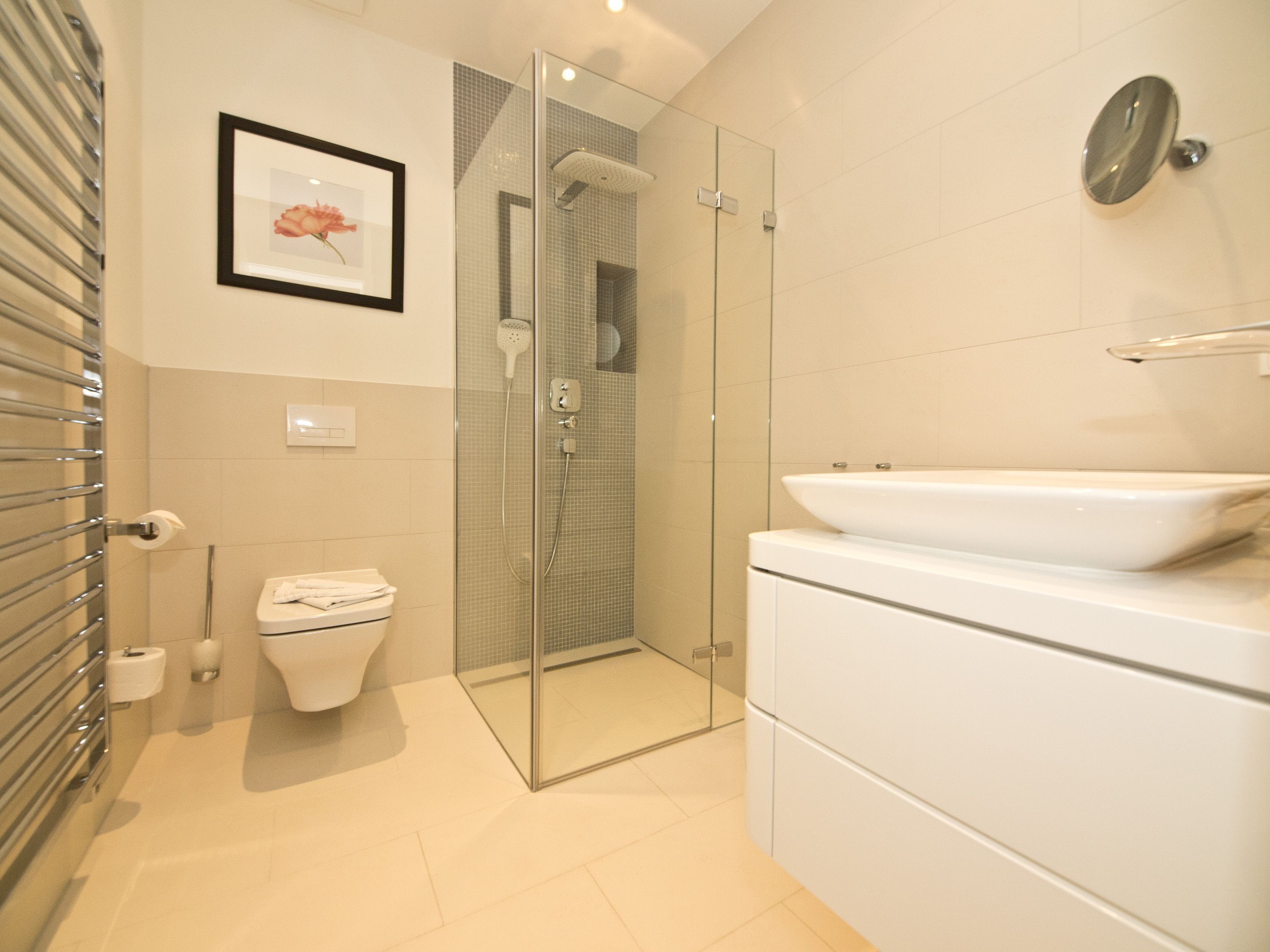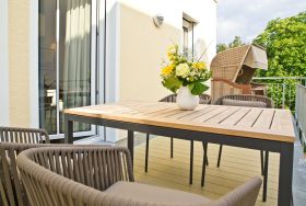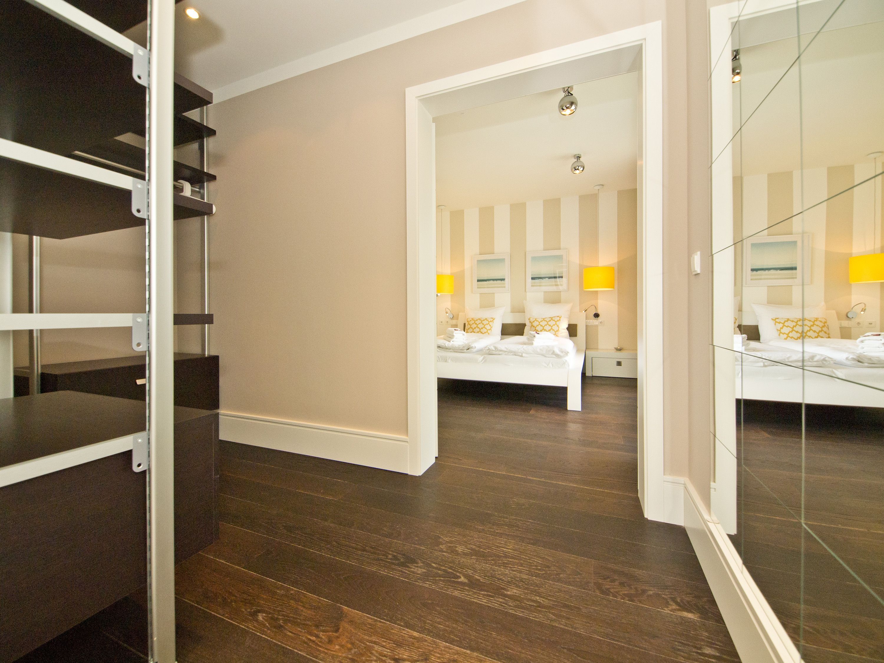 Im 2. Obergeschoss des Dünenpalais trifft modernes Design exklusive Ausstattung! Auf 100 qm wurden hochwertige Einbauten, ein edler dunkler Dielenboden und geschmackvolle Dekorationen von versierter Innenarchitektenhand zusammengestellt und schaffen so eine stylische Wohlfühlatmosphäre für bis zu 4 Personen und 1 Kleinkind (bis 3 Jahre im Kinderreisebett). Der großzügige Wohnbereich mit bequemer Sitzgruppe und Flat-TV schließt sich an die offene Küche mit Essplatz an. Ein besonderes Highlight ist der Gaskamin, der per Fernbedienung ein tolles Ambiente zaubert. Der Masterbedroom (mit Doppelbett 1,80m und Flat-TV) mit Balkon (Nordseite) verfügt über ein eigenes Ankleidezimmer, an das sich das große Bad mit Echtglasdusche & WC anschließt. Hier wurde ebenfalls die wohnungseigene Sauna (gegen Gebühr 1,00 € pro Stunde) integriert, nicht nur in der kalten Jahreszeit ein Ort zum Relaxen. Das zweite Schlafzimmer ist ebenfalls mit Doppelbett und eigenem Flat-TV ausgestattet, ihm gegenüber liegt das zweite Duschbad. Im Abstellraum kann eine Waschmaschine ( gegen Gebühr) genutzt werden. Ein sonniger Südbalkon mit Strandkorb und Gartenmöbeln rundet das Appartement ab. Für Ihren Komfort steht die Erstausstattung Wäsche für Sie bereit. Auf Wunsch stellen wir ein Kinderreisebett (ohne Matratze & Bettzeug) und einen Kinderhochstuhl gegen einen Aufpreis zur Verfügung. Ein PKW-Stellplatz steht Ihnen in der Tiefgarage zur Verfügung.